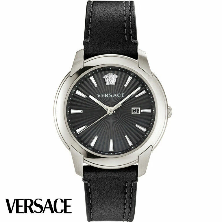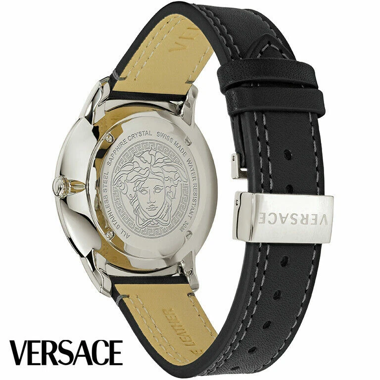 Versace VELQ00119 V-urban Silver Black Leather Men's Watch