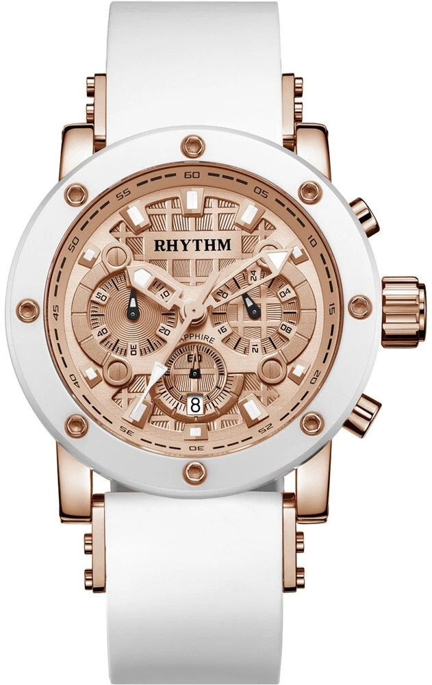 Rhythm Super Model 203R Rose Gold & White Chronograph Watch - I1203R03