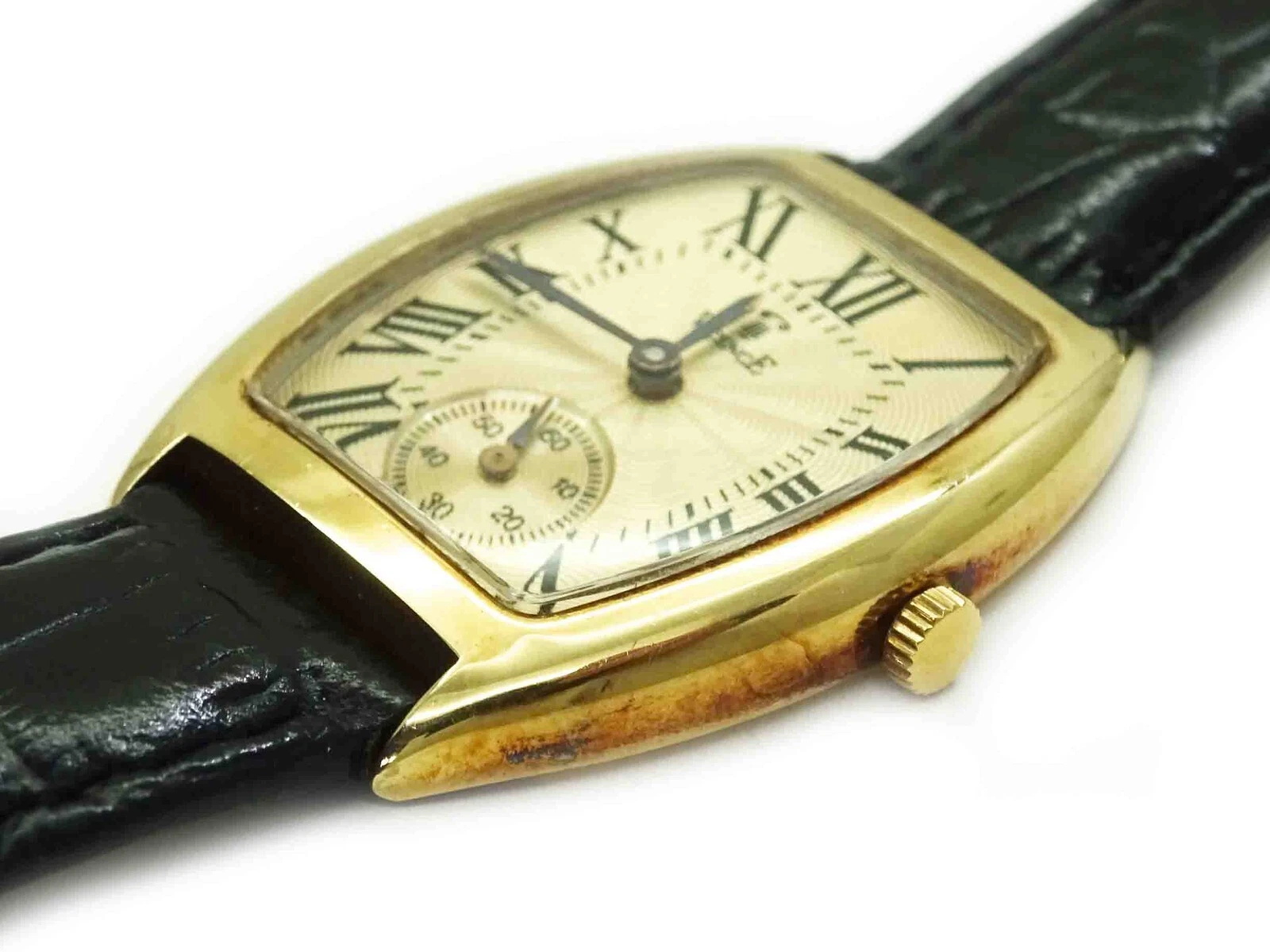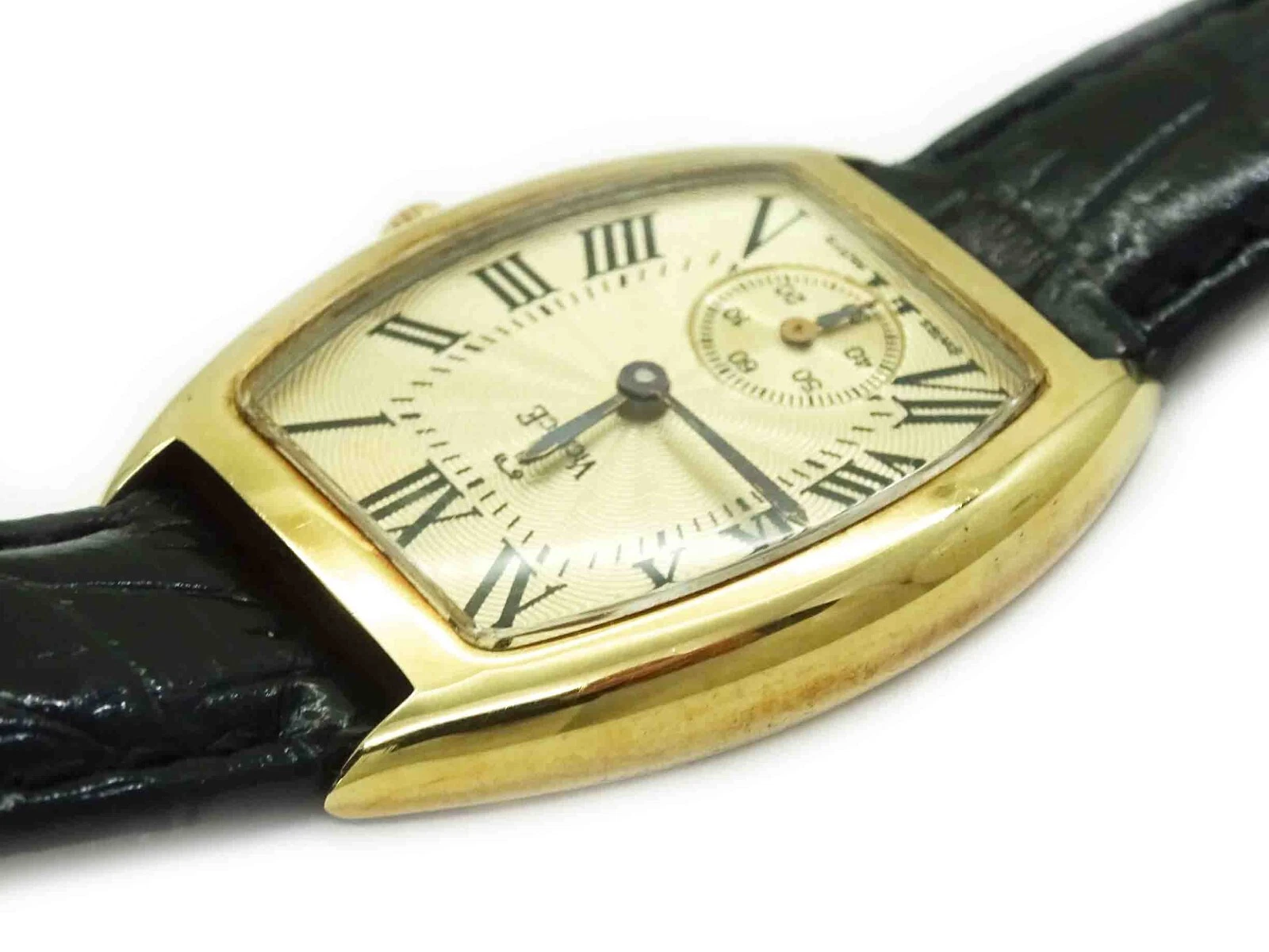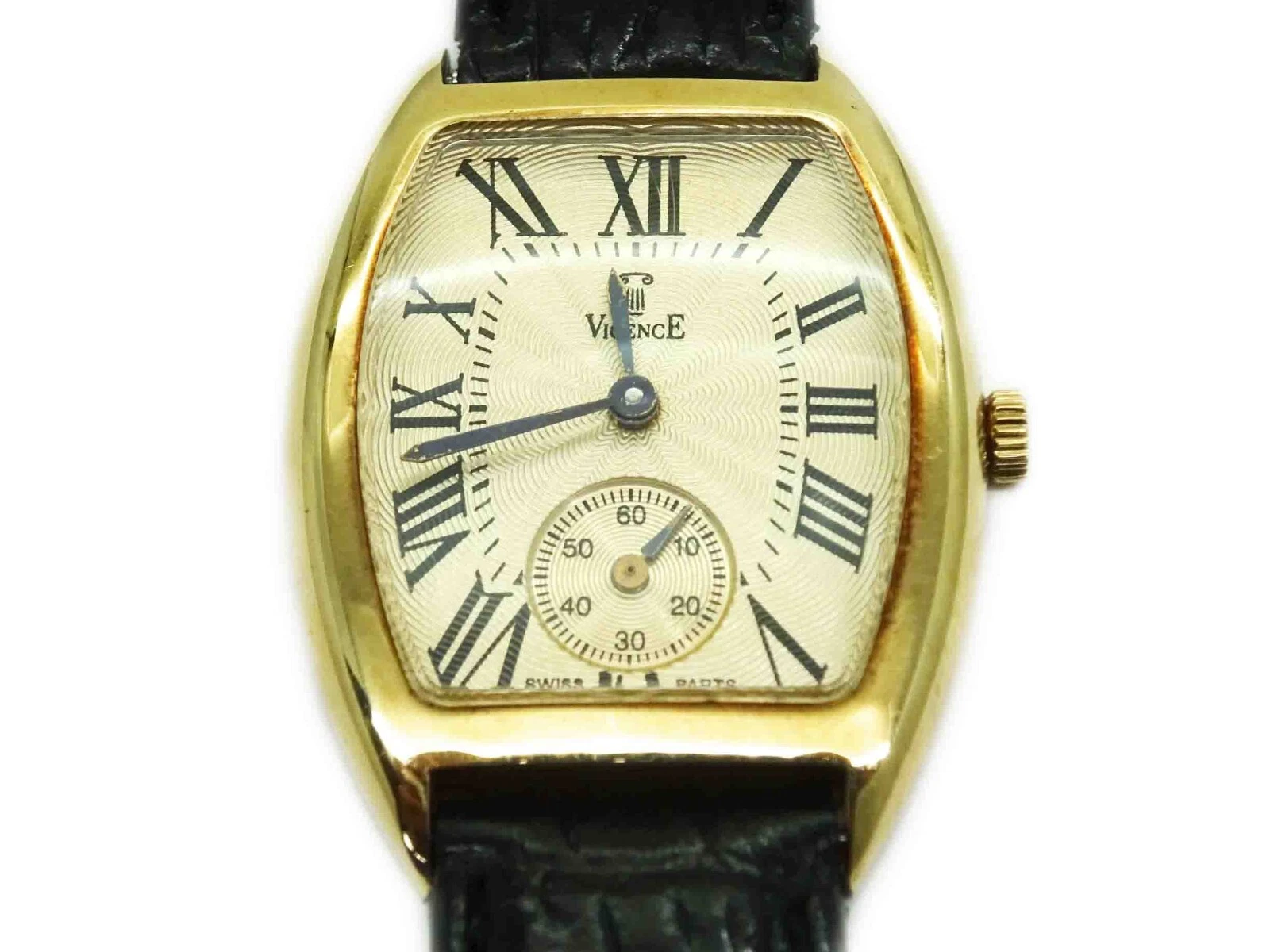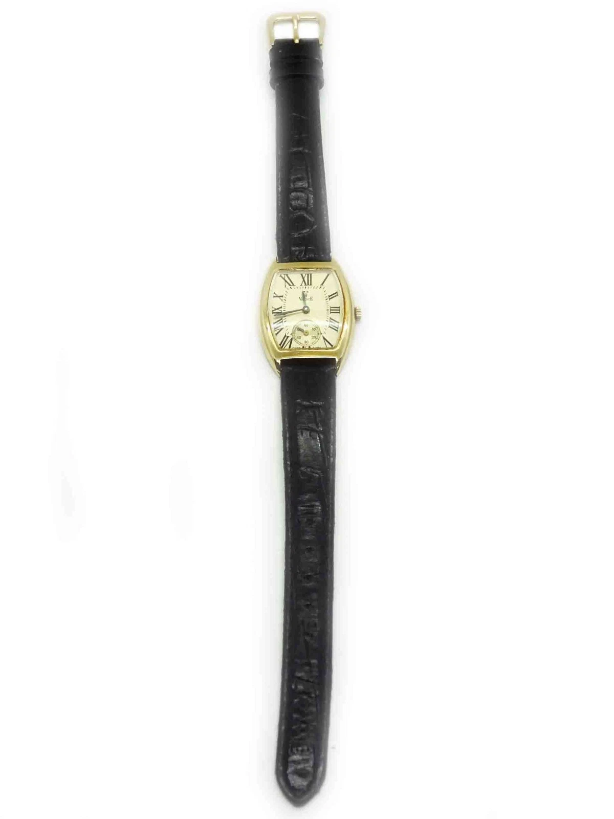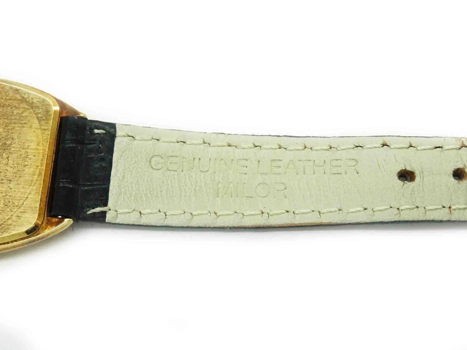 Vicence Milor Italy Ladies Watch Tonneau Barrel Case 14k Gold Black Leather
