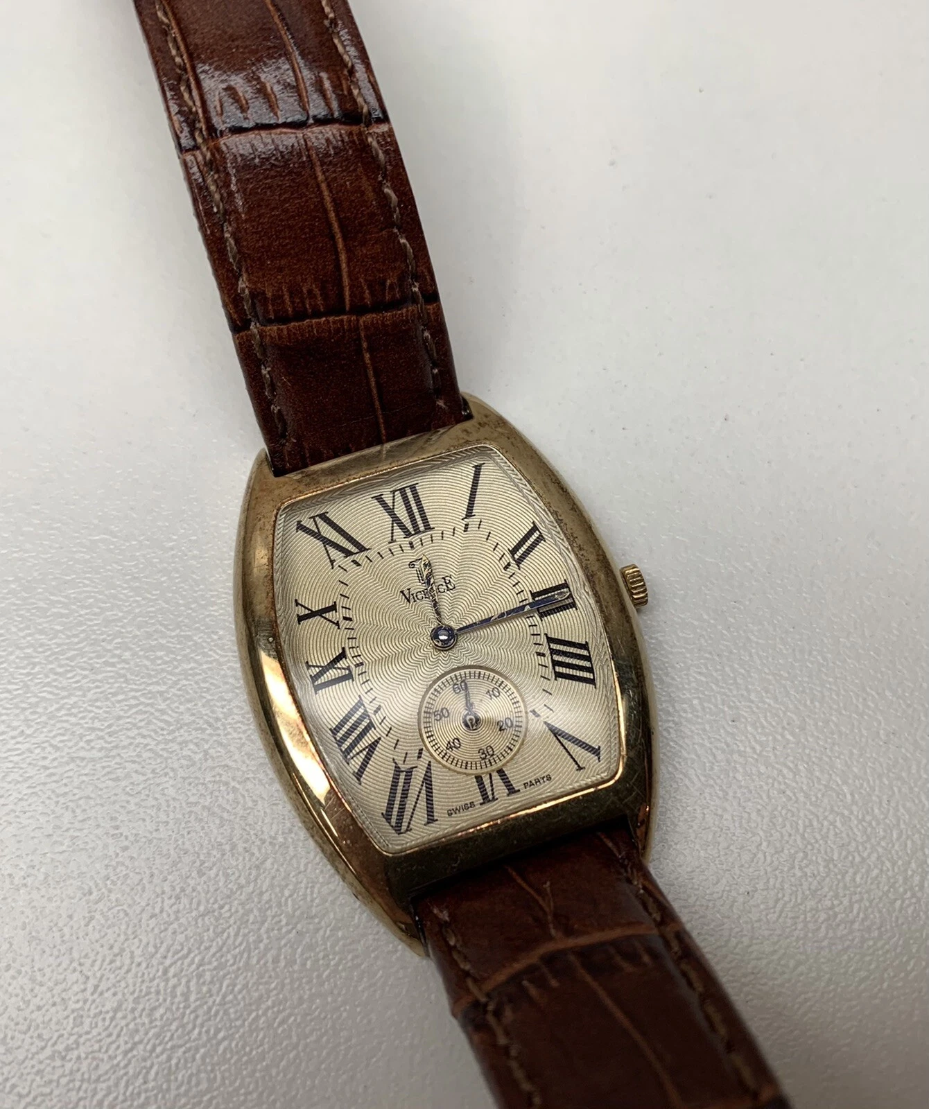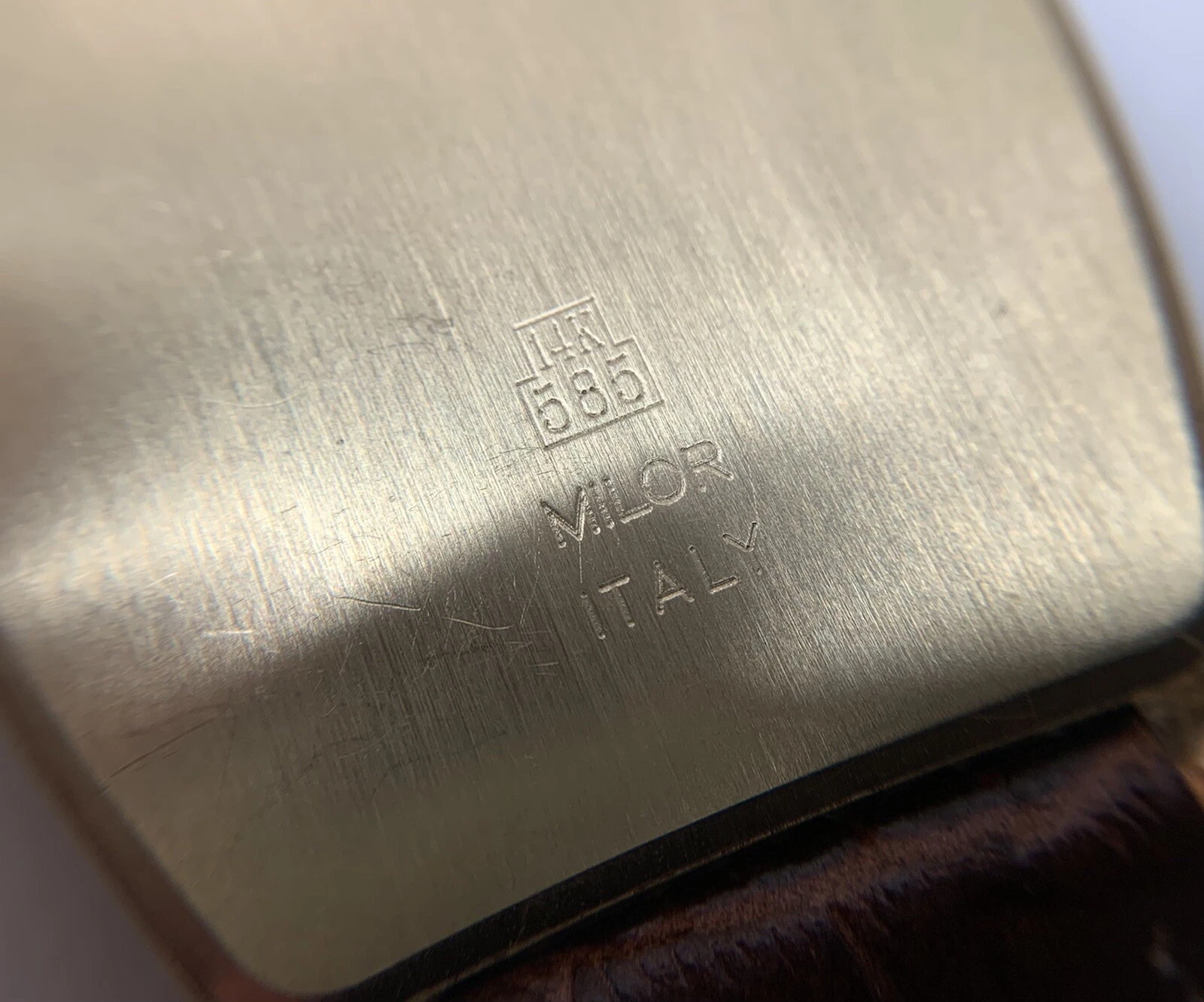 14K Solid Gold Vicence Ladies Wristwatch Milor Italy Genuine Leather