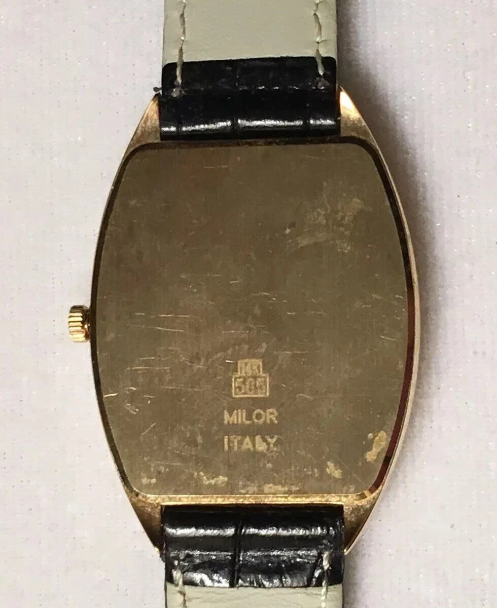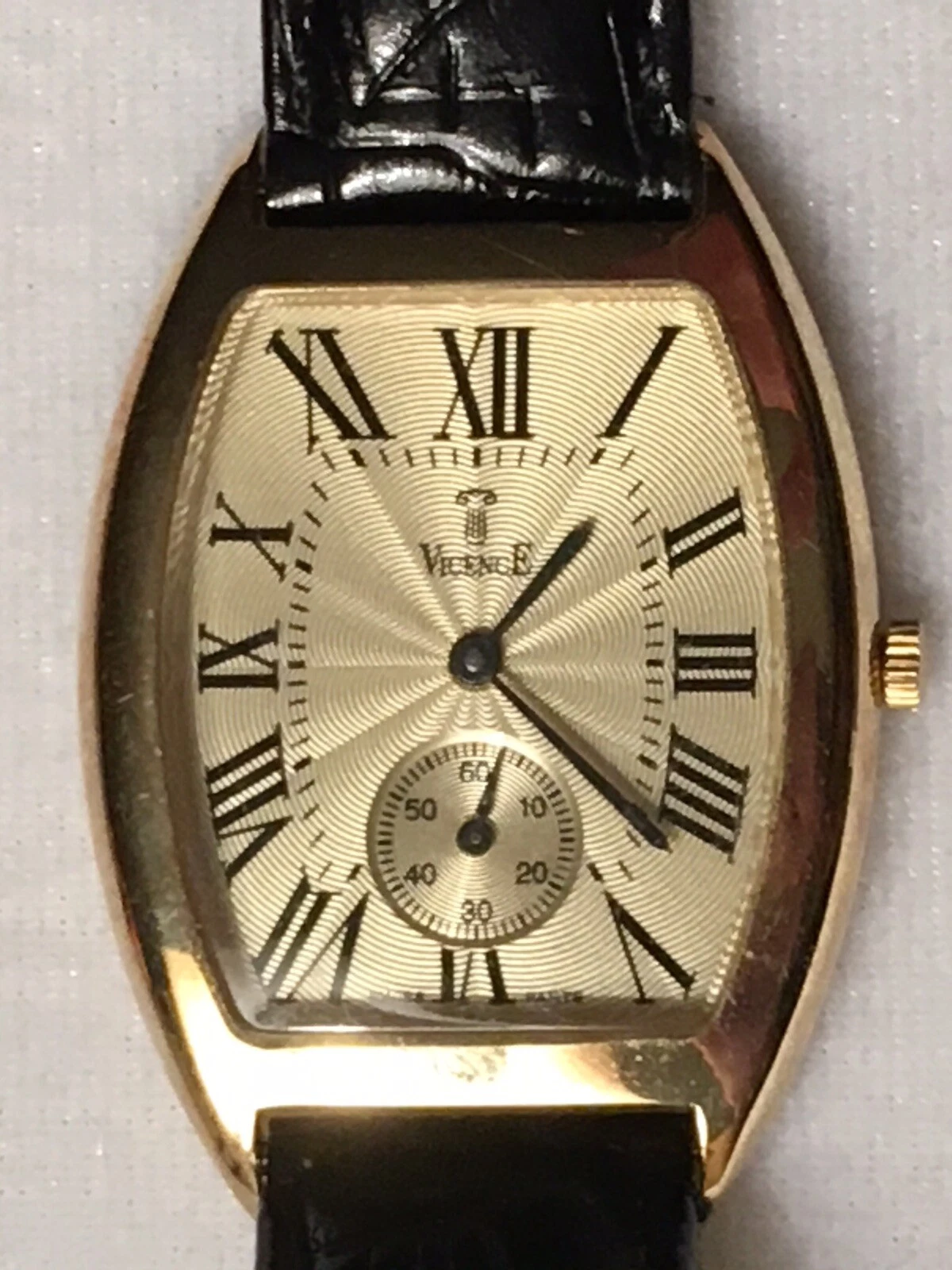 14k Gold Vicence Ladies Tonneau Barrel Case Watch Working Fresh Battery