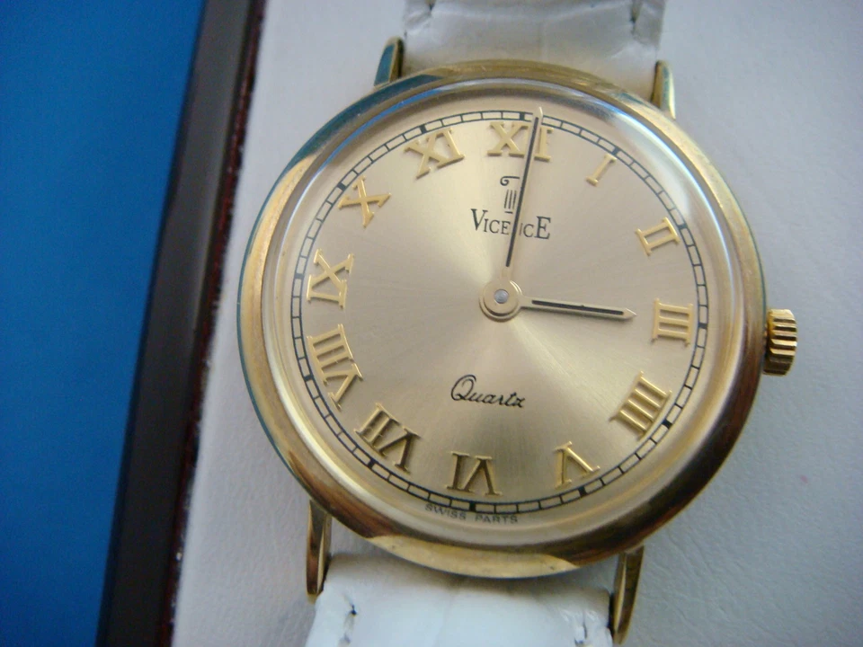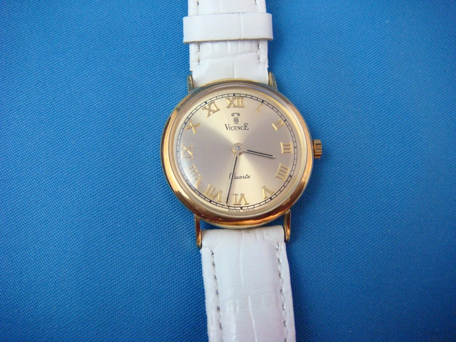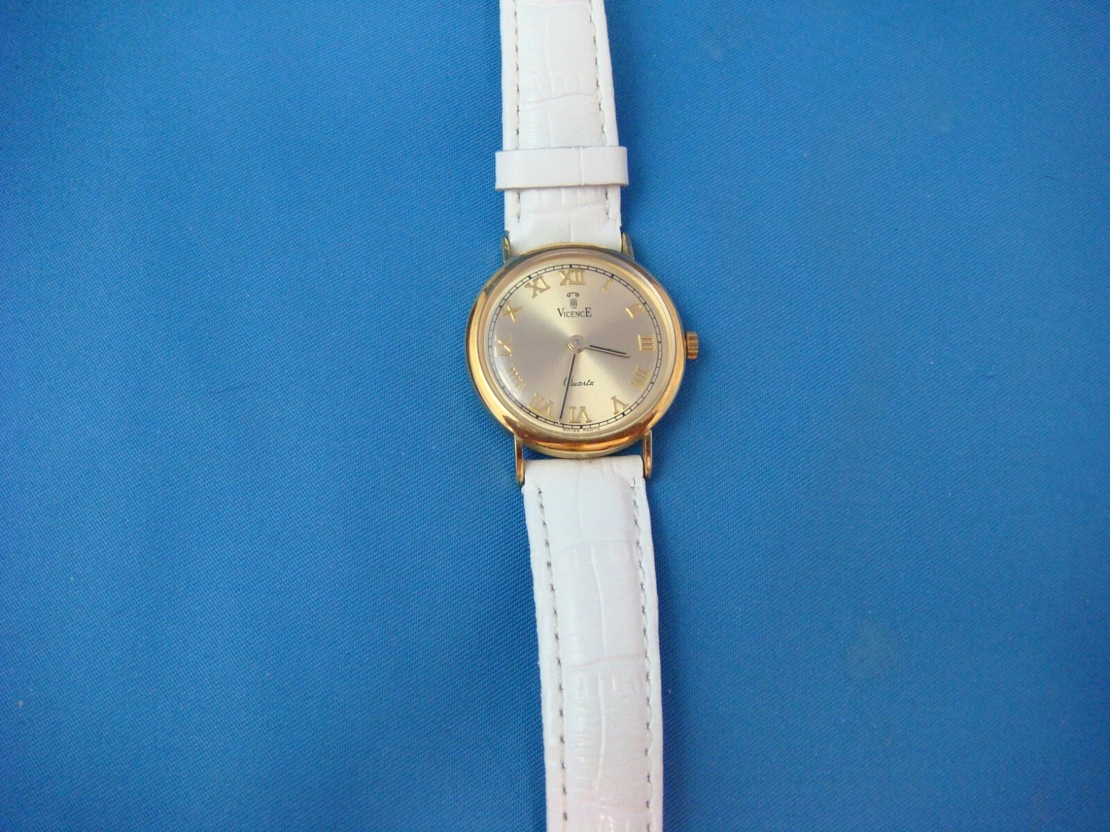 SPECIAL! VICENCE 14K YELLOW GOLD LADIES SUMMER WATCH WHITE BAND MADE IN ITALY