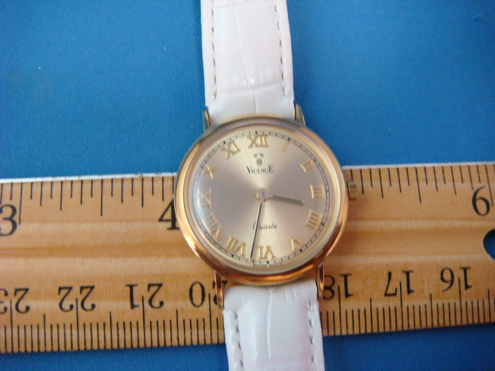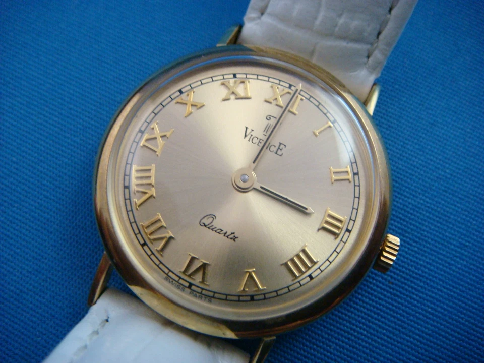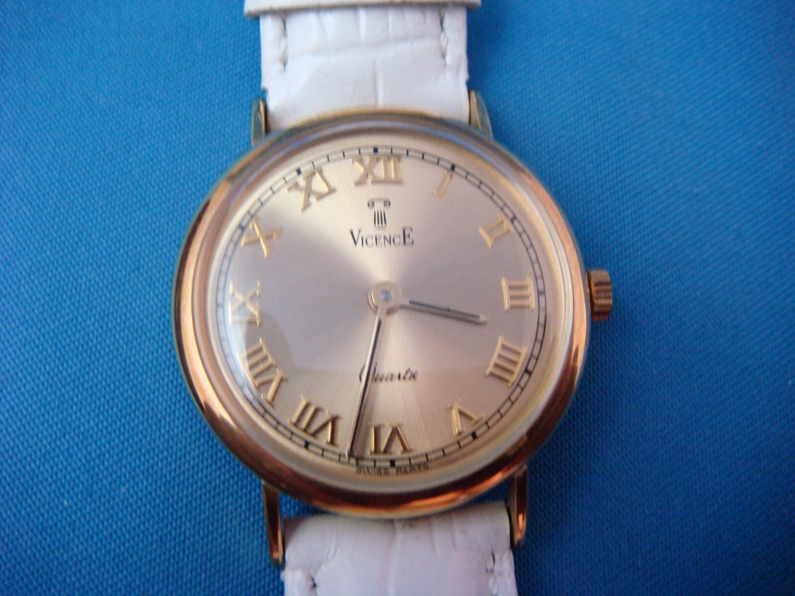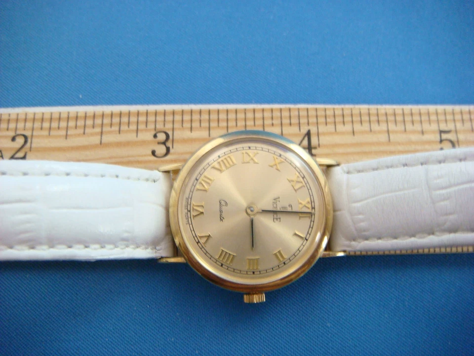 SPECIAL! VICENCE 14K YELLOW GOLD LADIES SUMMER WATCH WHITE BAND MADE IN ITALY