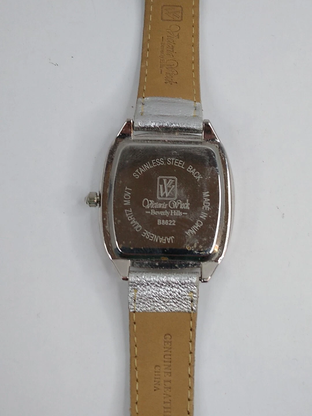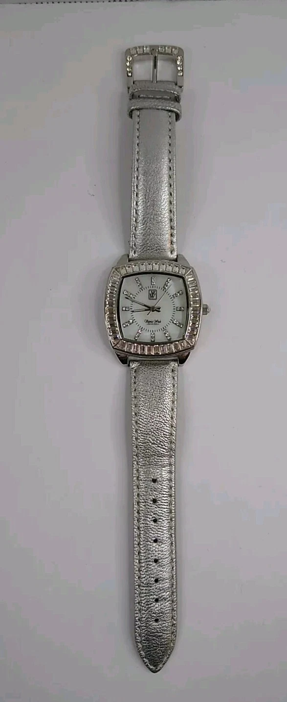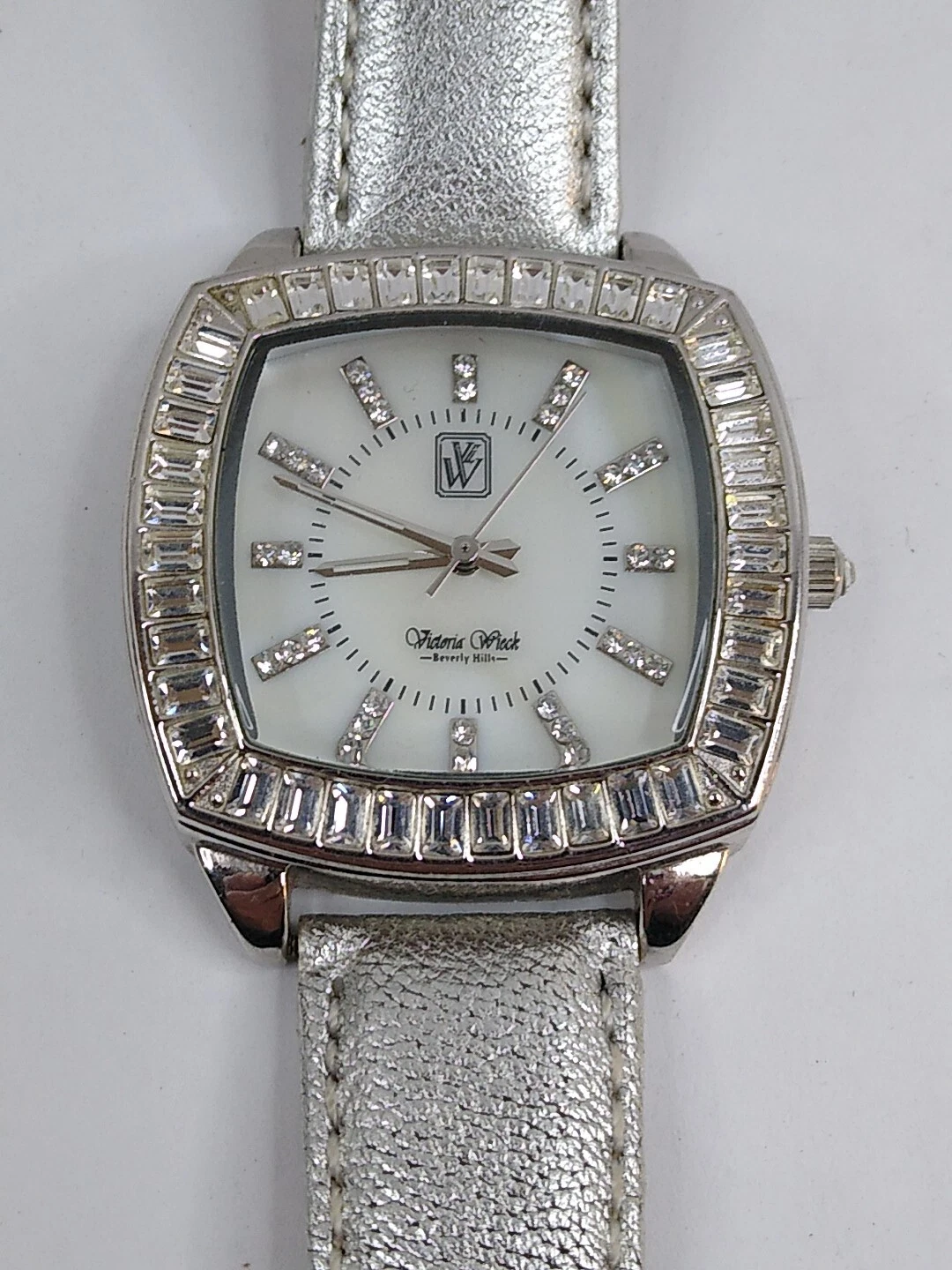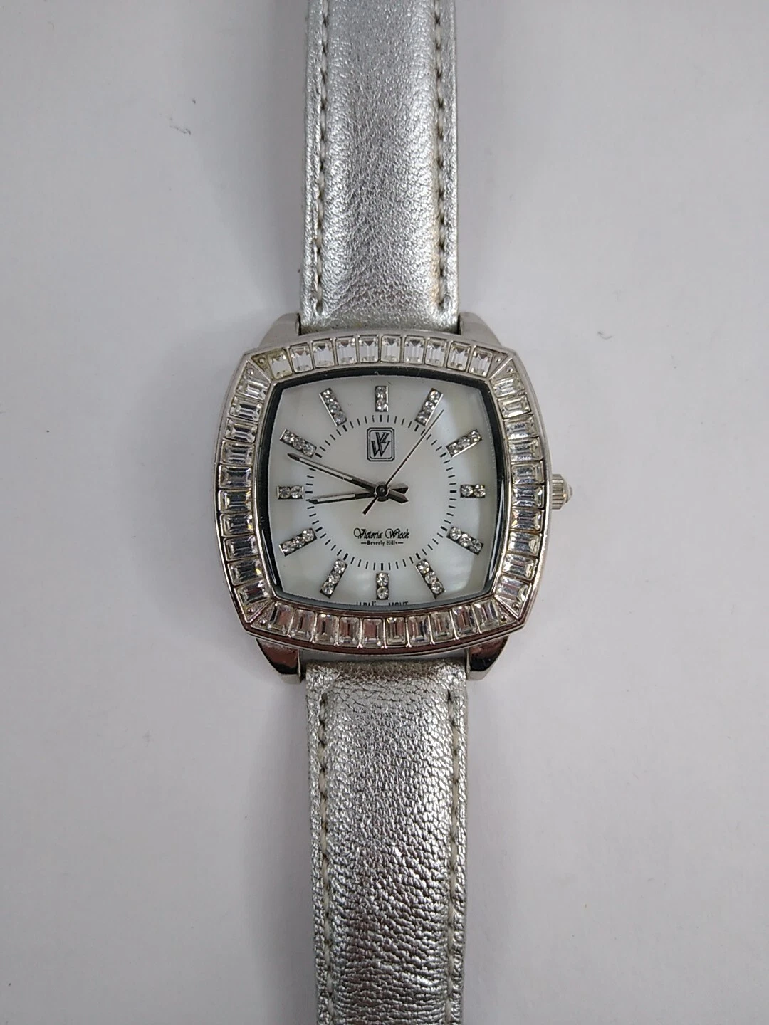Victoria Wieck Watch Women 36mm Crystal Dial Silver Tone Bling New Battery 8.5"