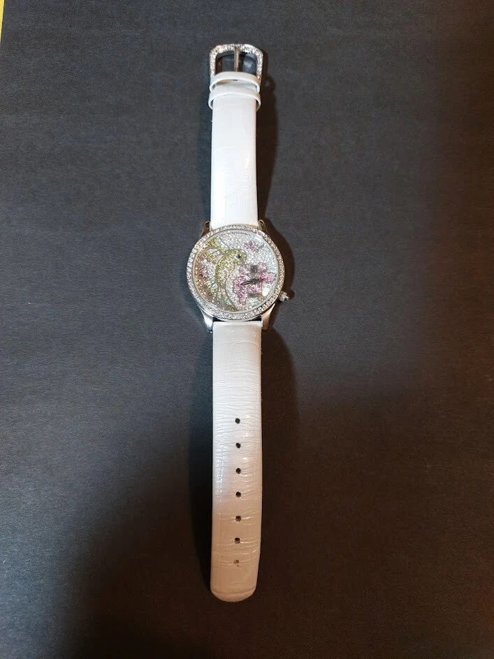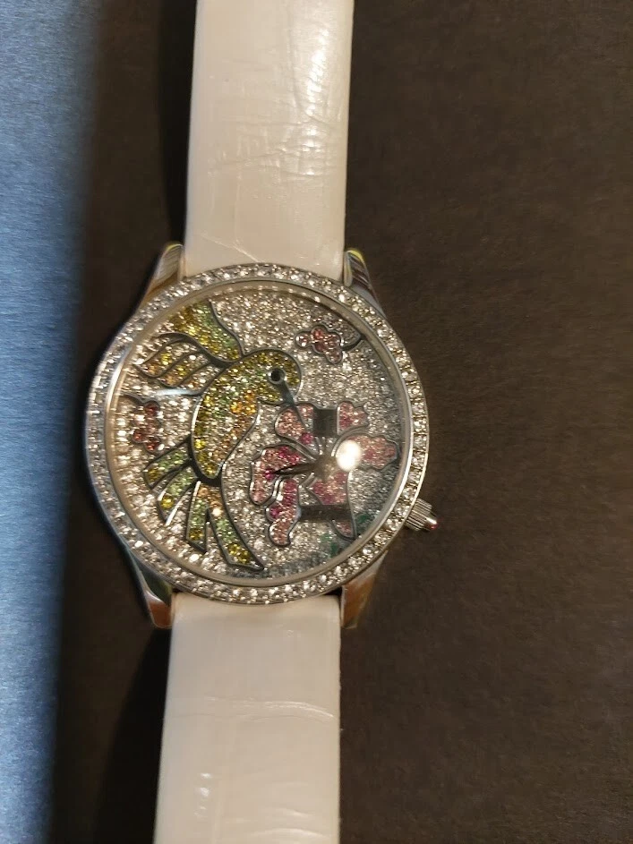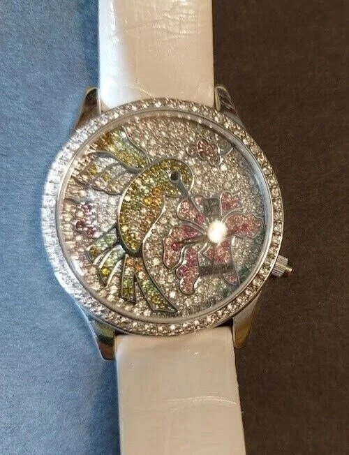 Victoria Wieck White Hummingbird & Flower Crystal Watch! Silvertone