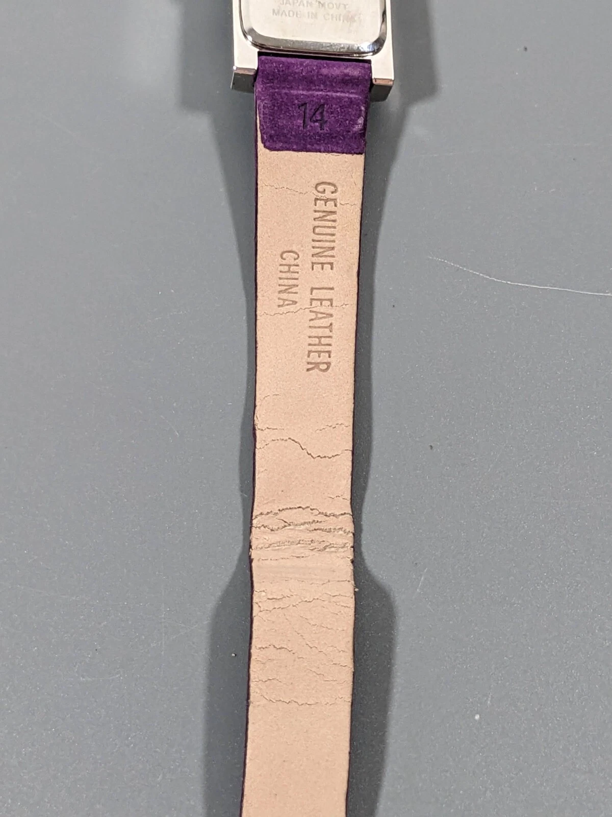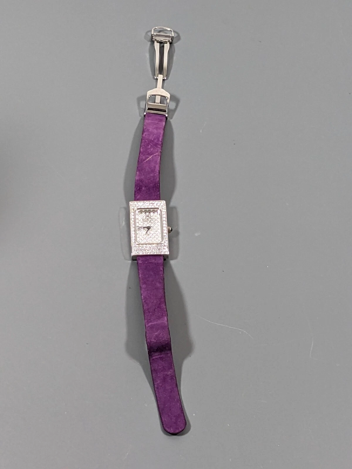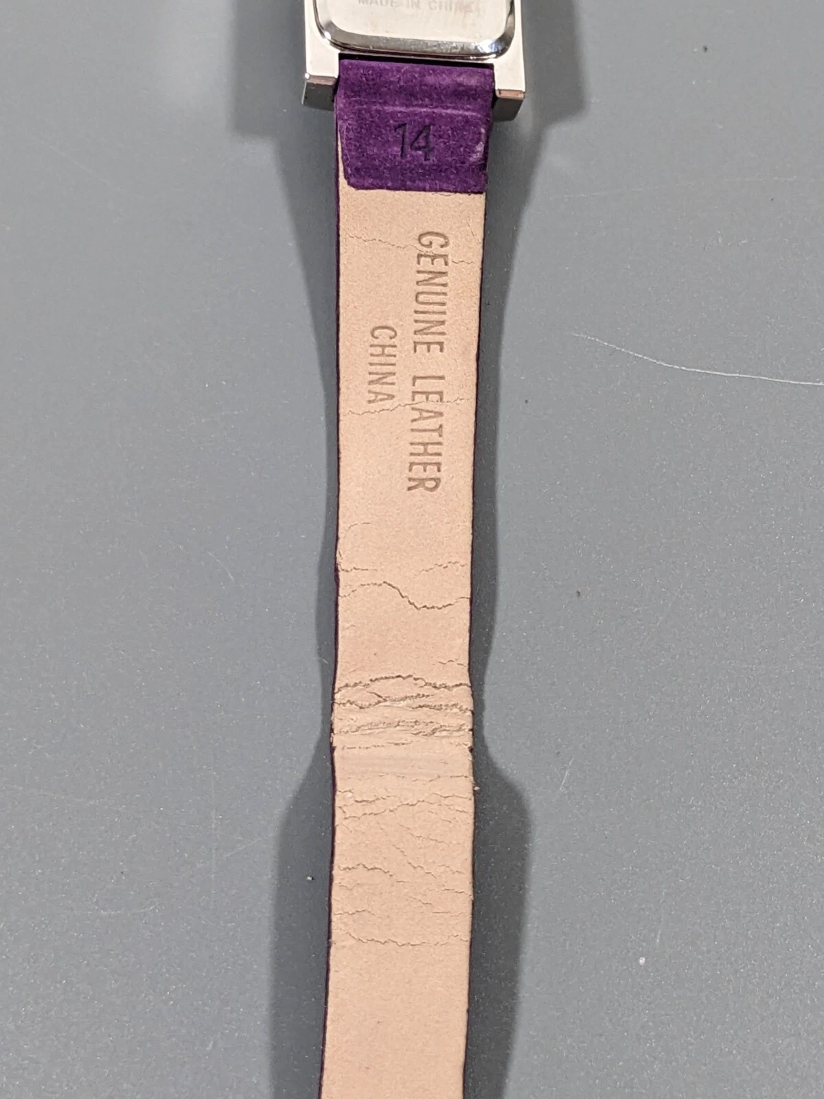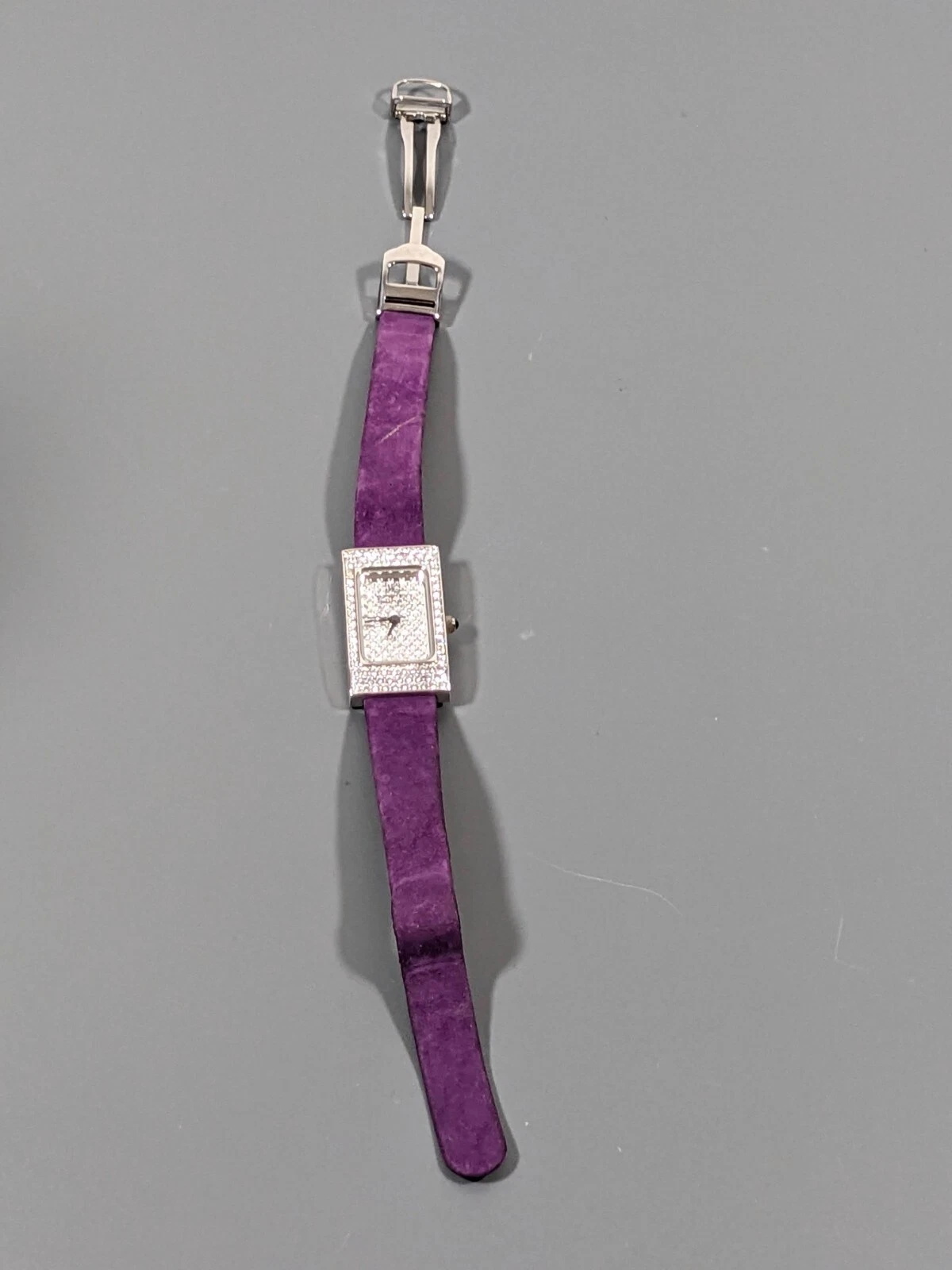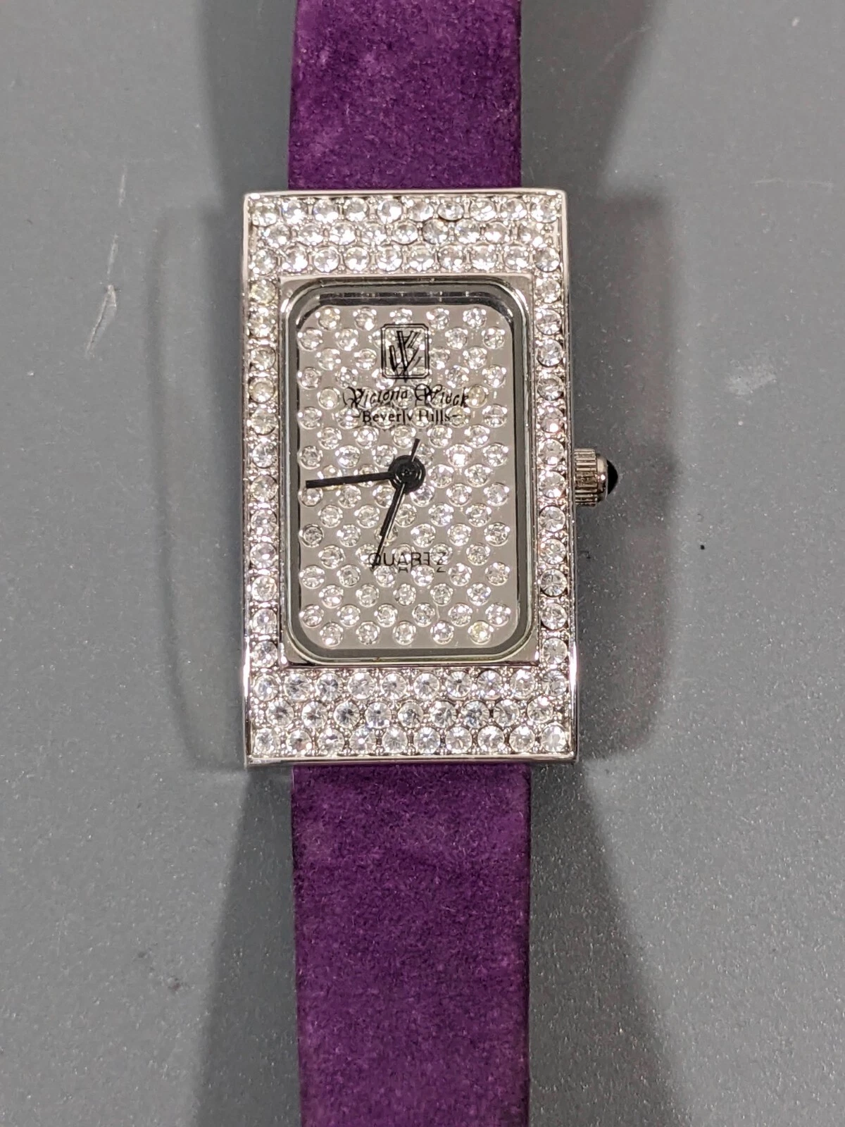 Victoria Wieck Crystal Pave Rectangle Case Purple Leather Band Watch Adjustable