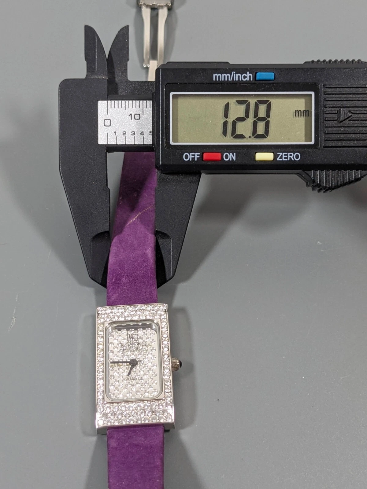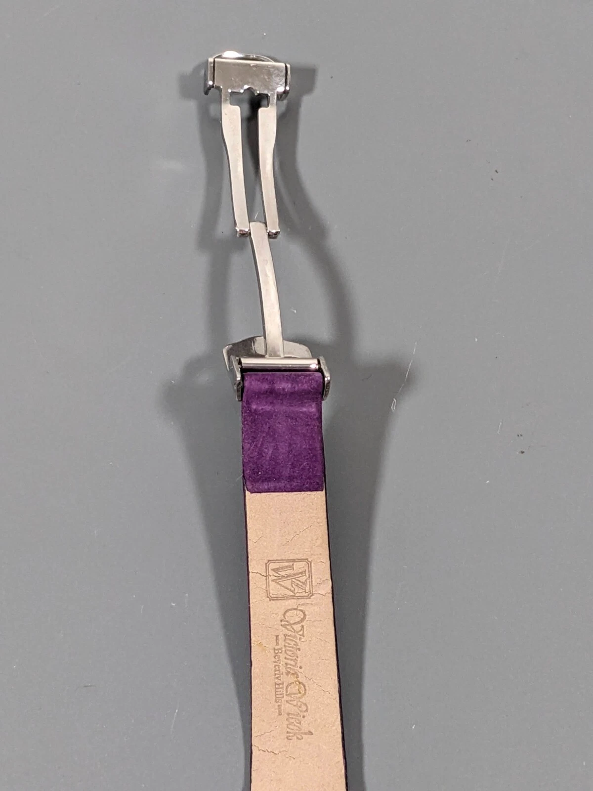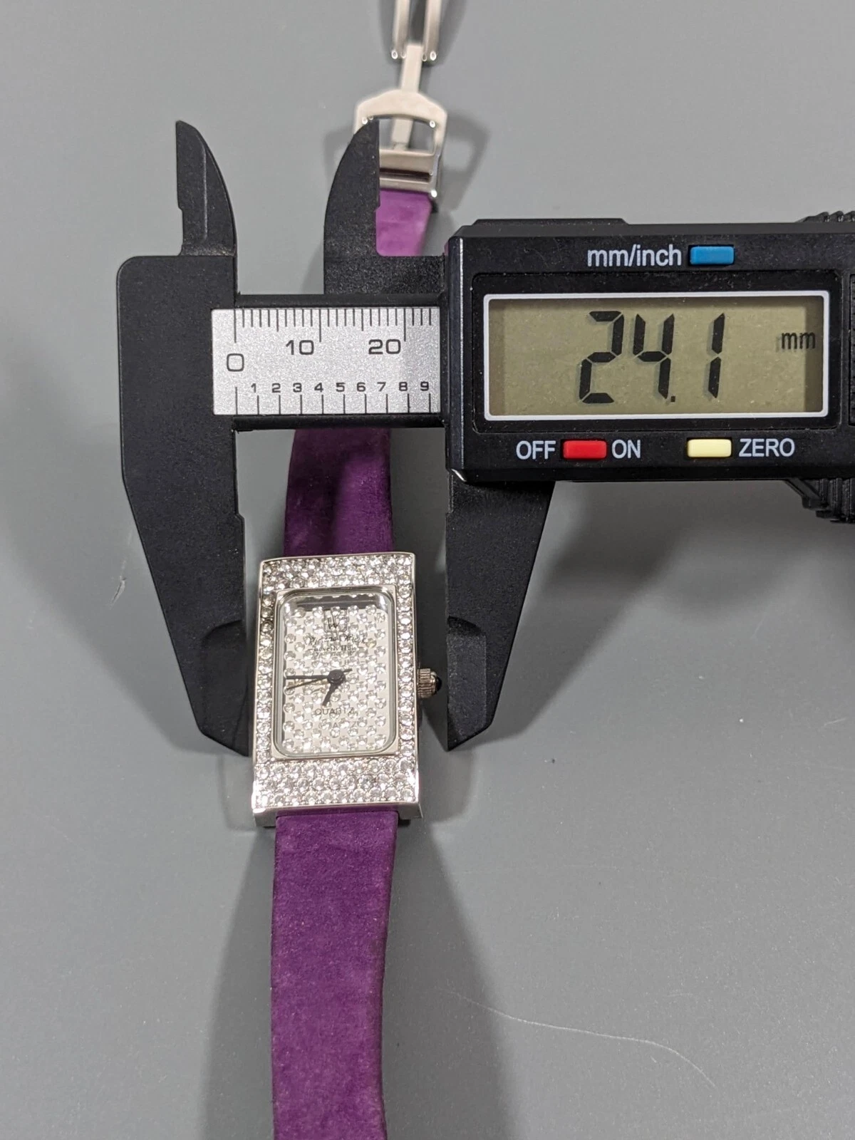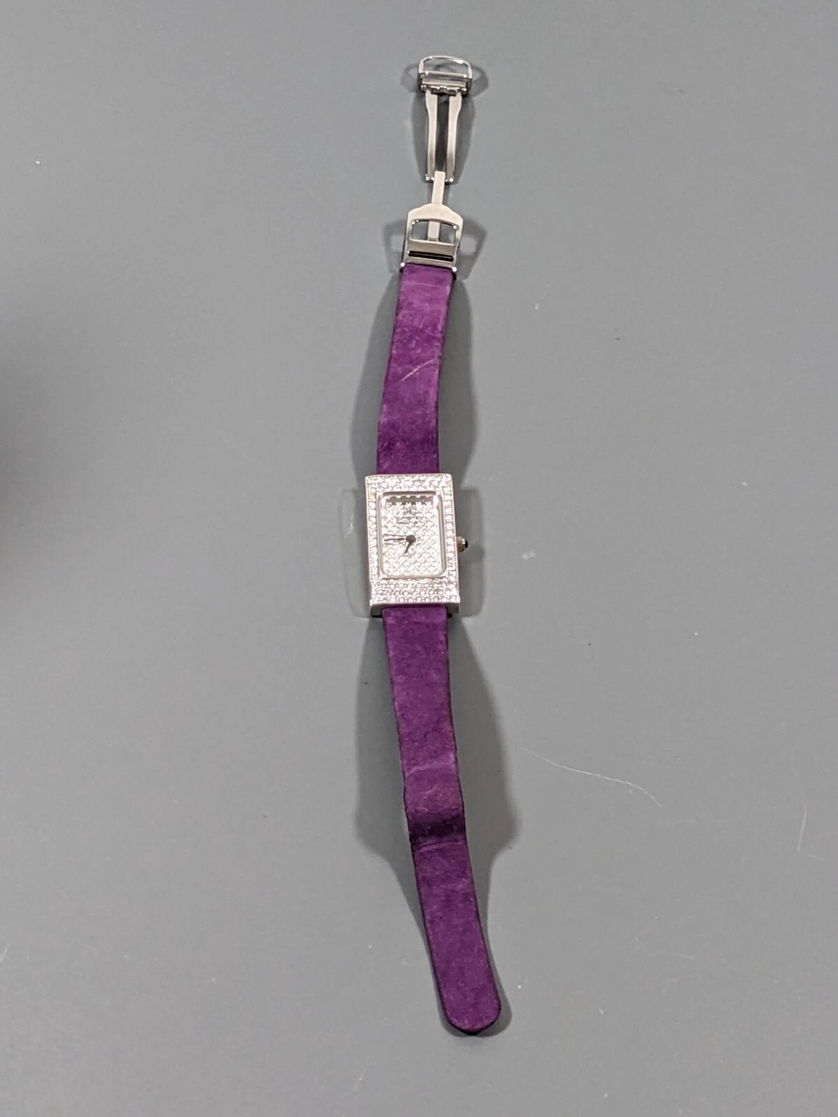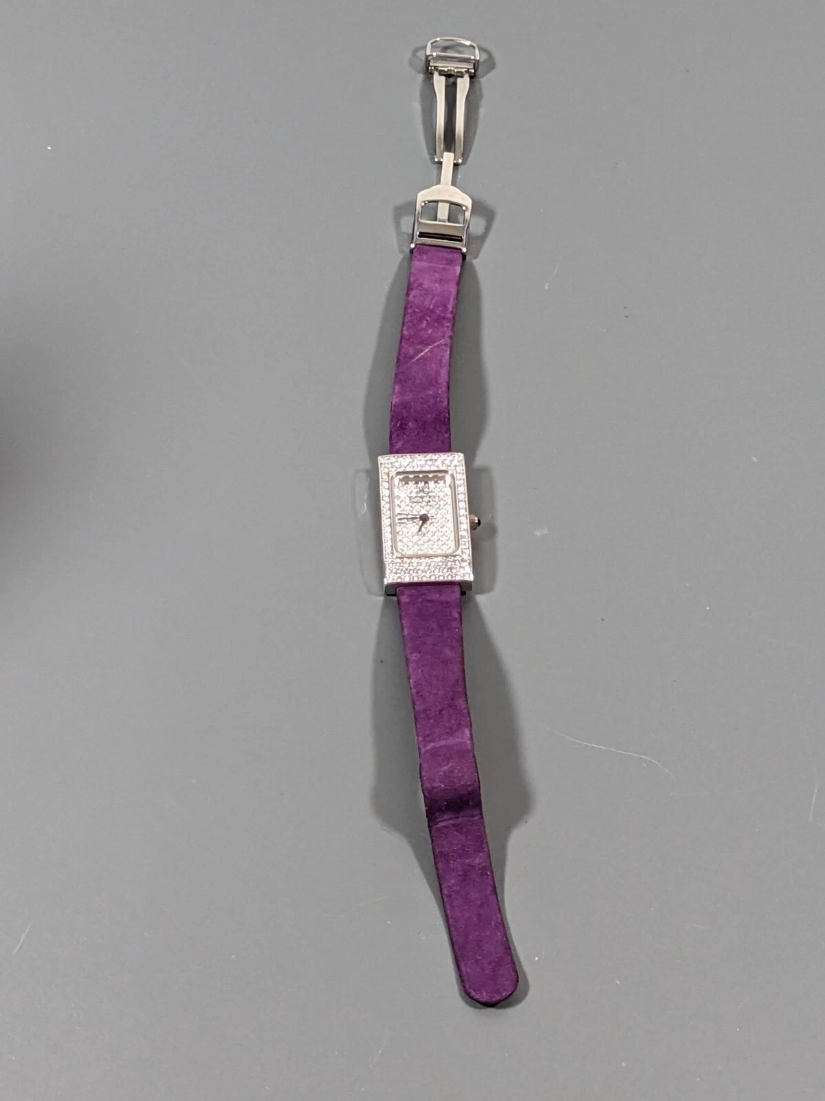 Victoria Wieck Crystal Pave Rectangle Case Purple Leather Band Watch Adjustable