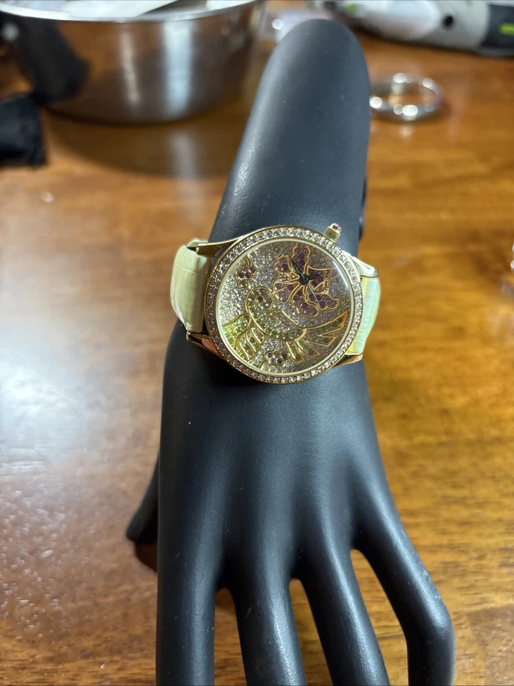 120Victoria Wieck Watch Women 37mm Crystal Hummingbird Leather Band New Battery