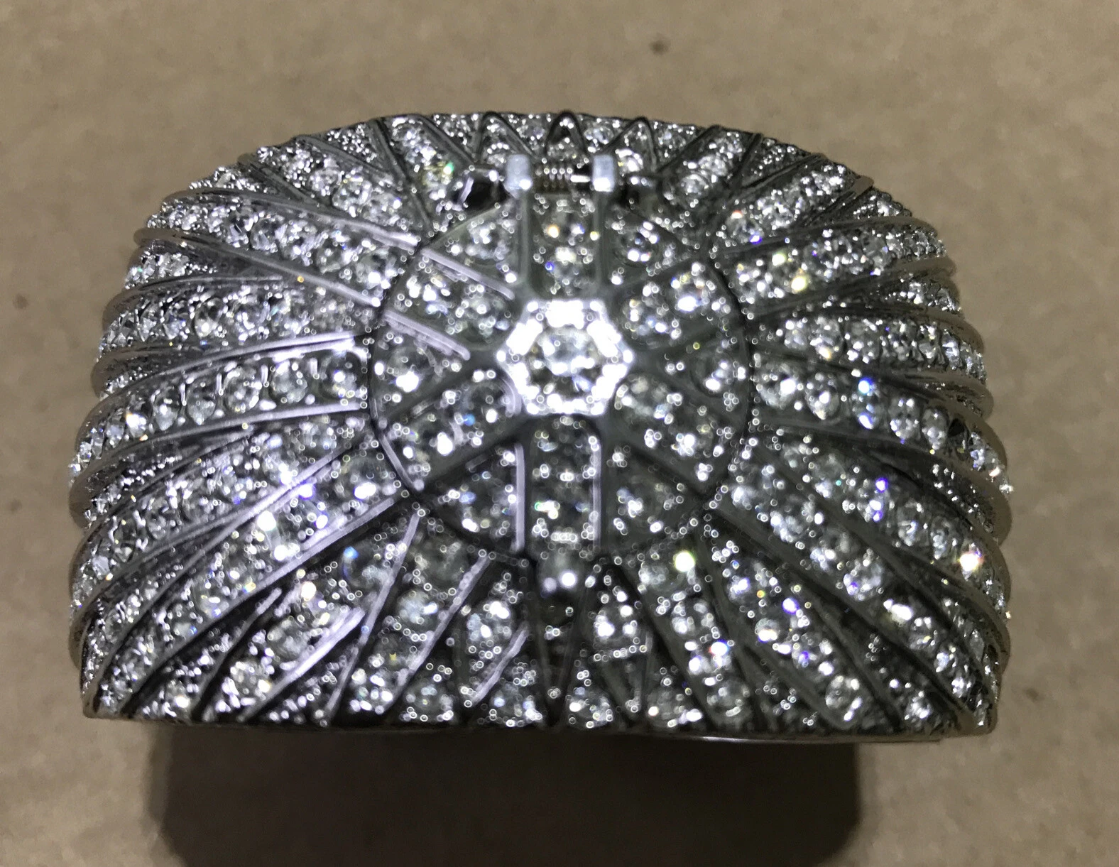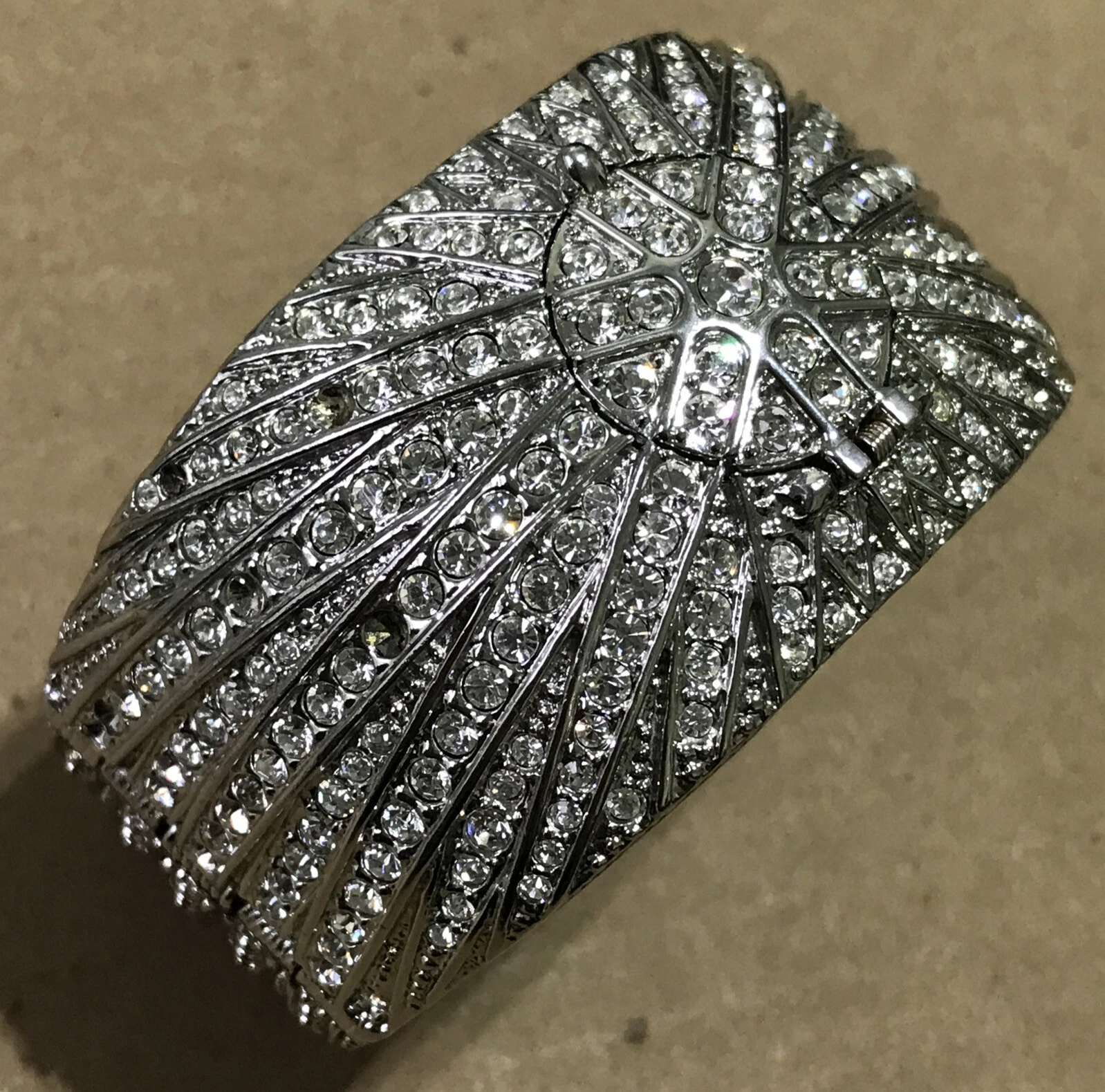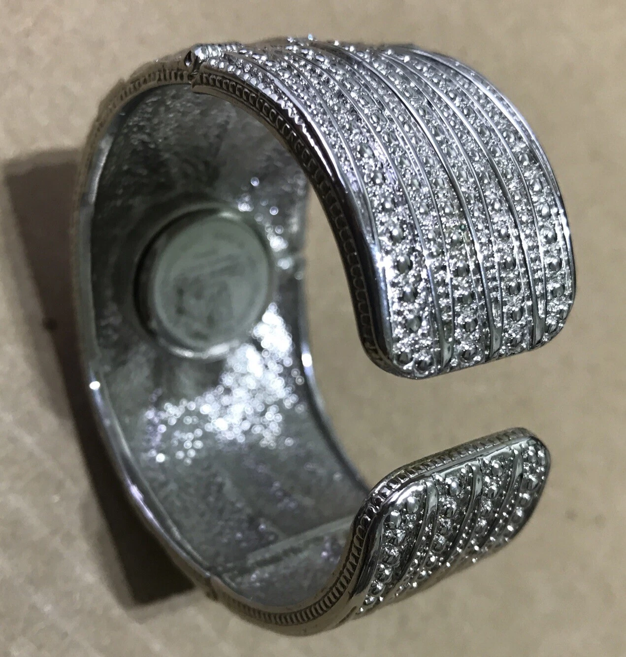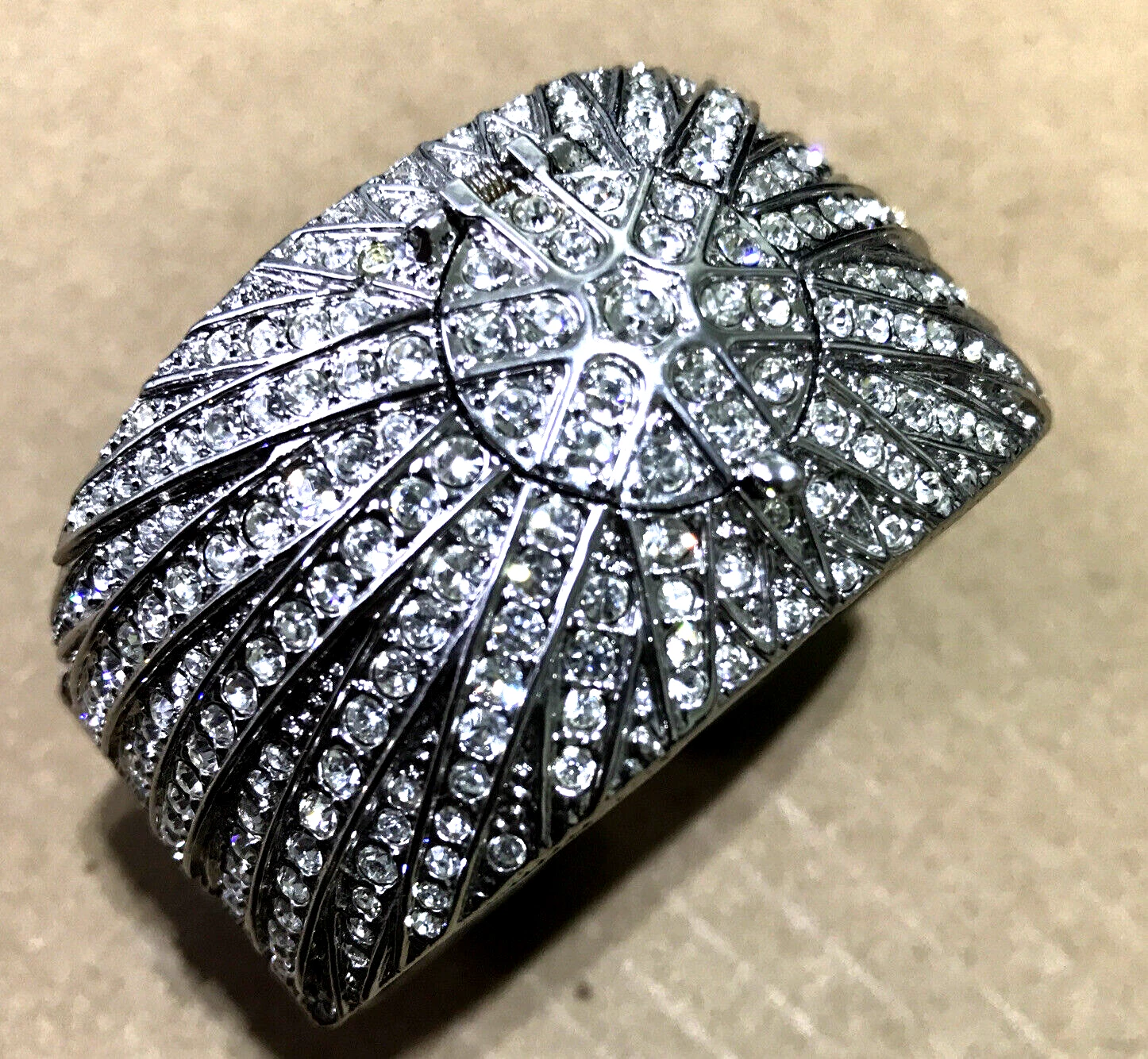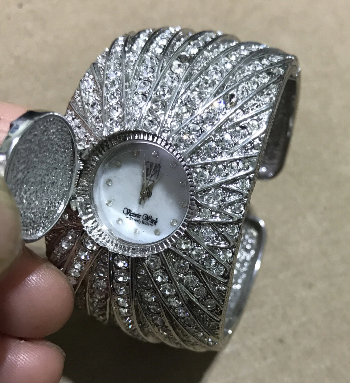Victoria Wieck Crystal Cuff Bangle Hidden Analog Quartz Watch New Battery