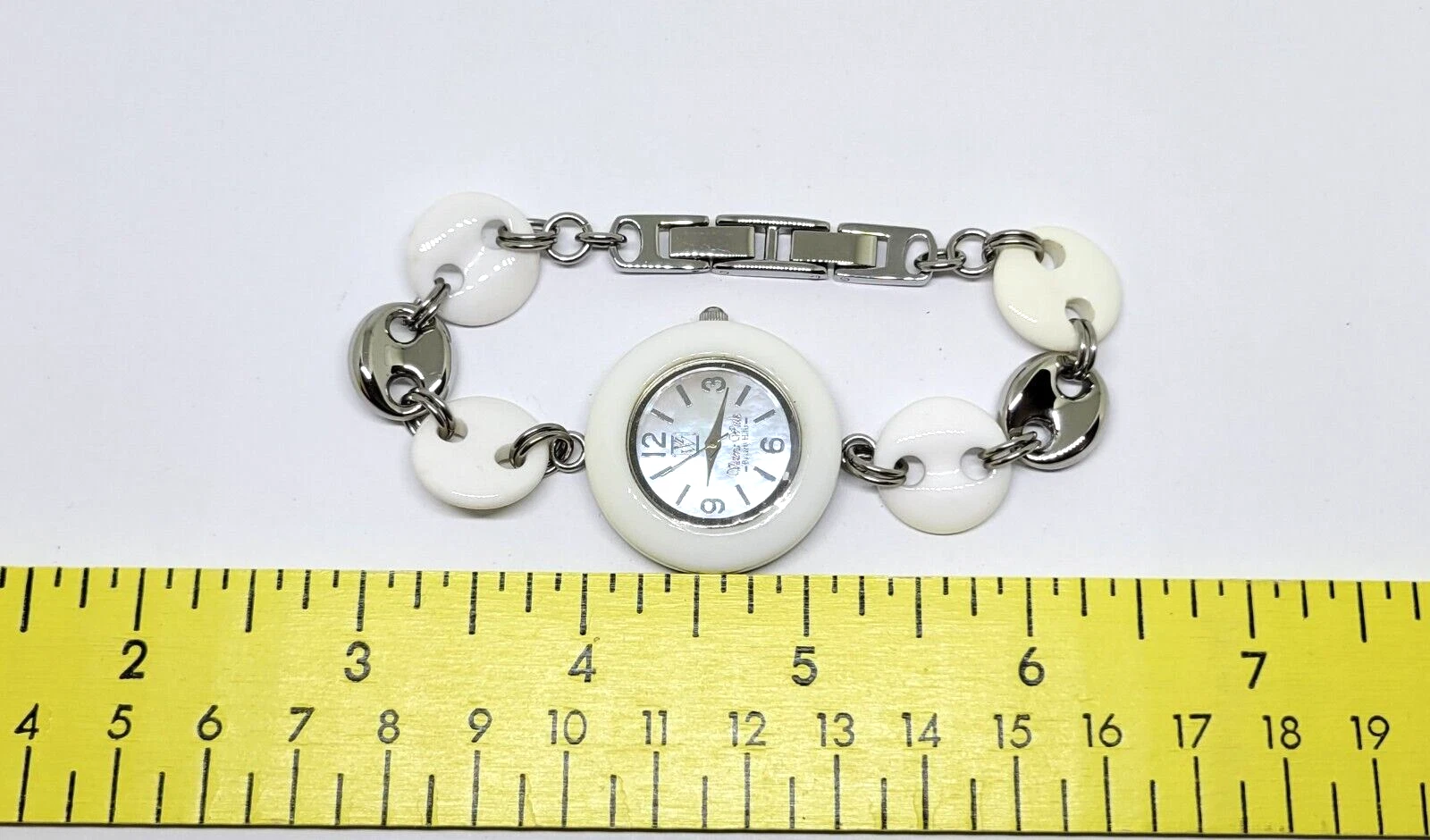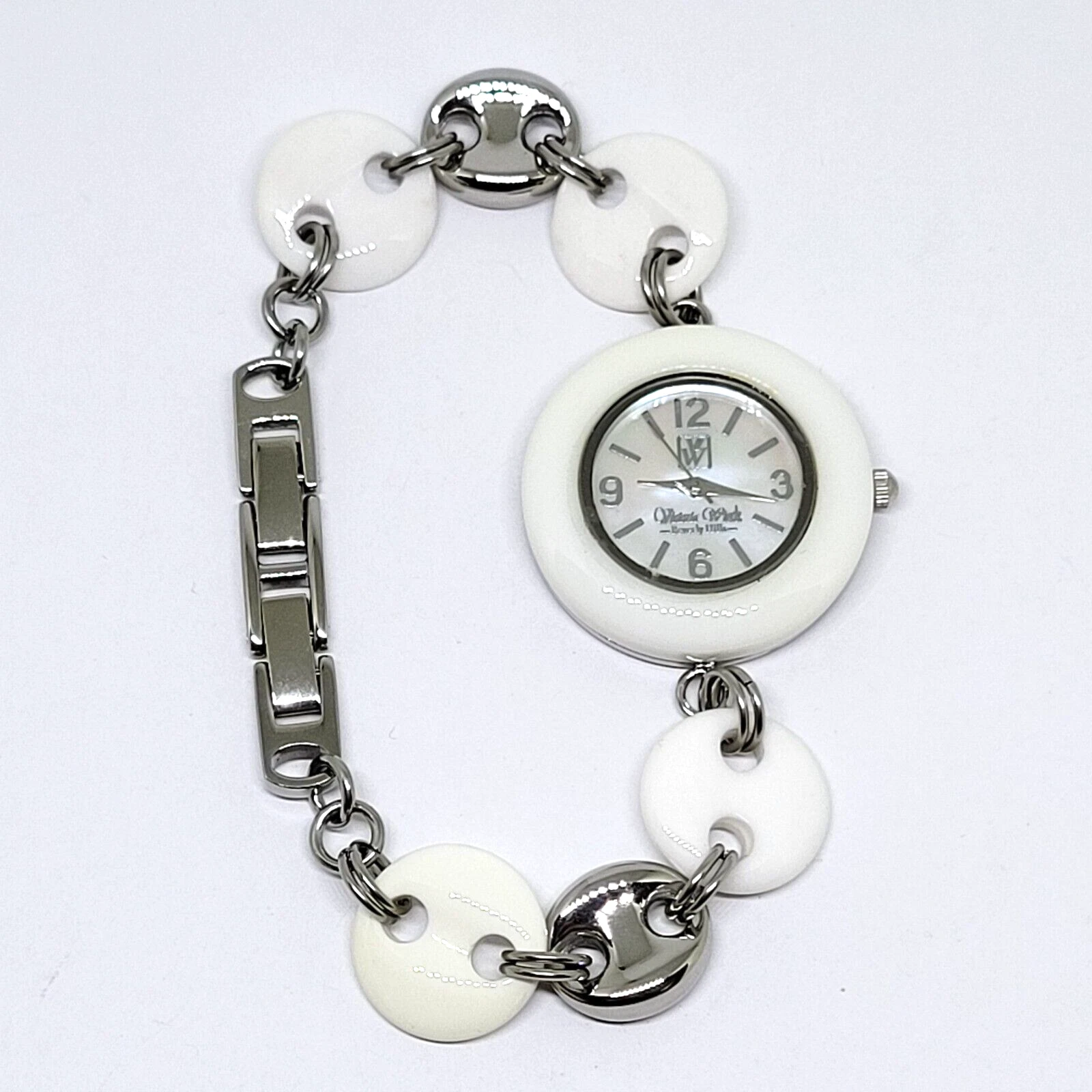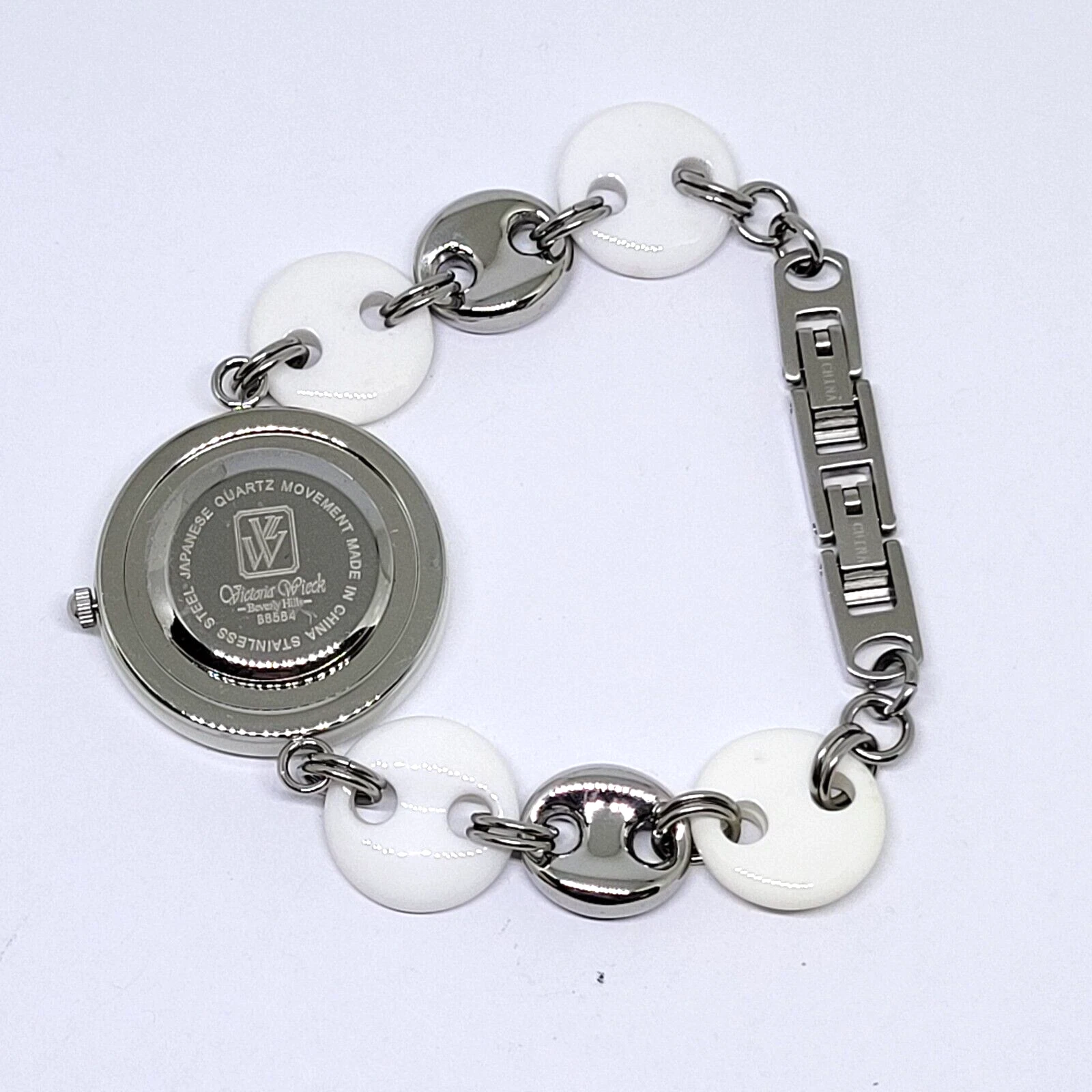 Victoria Wieck Silver Tone White Onyx Mother of Pearl Watch