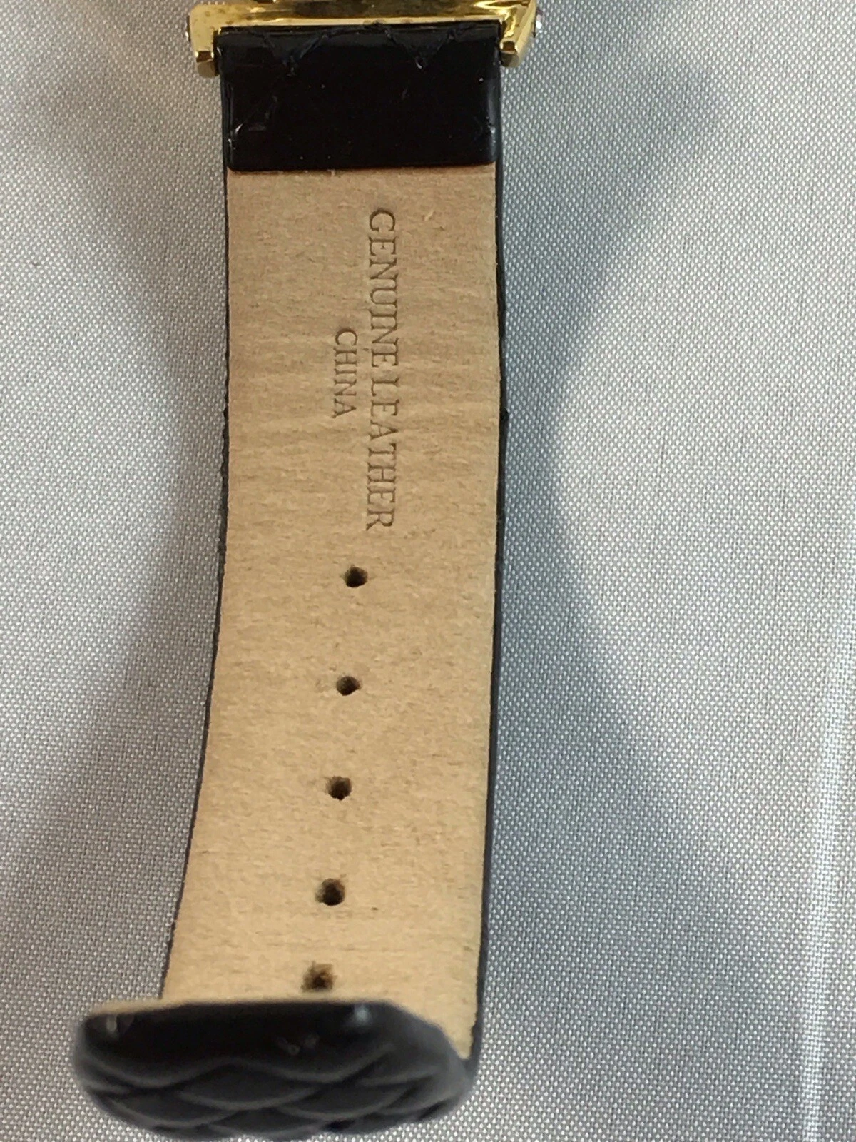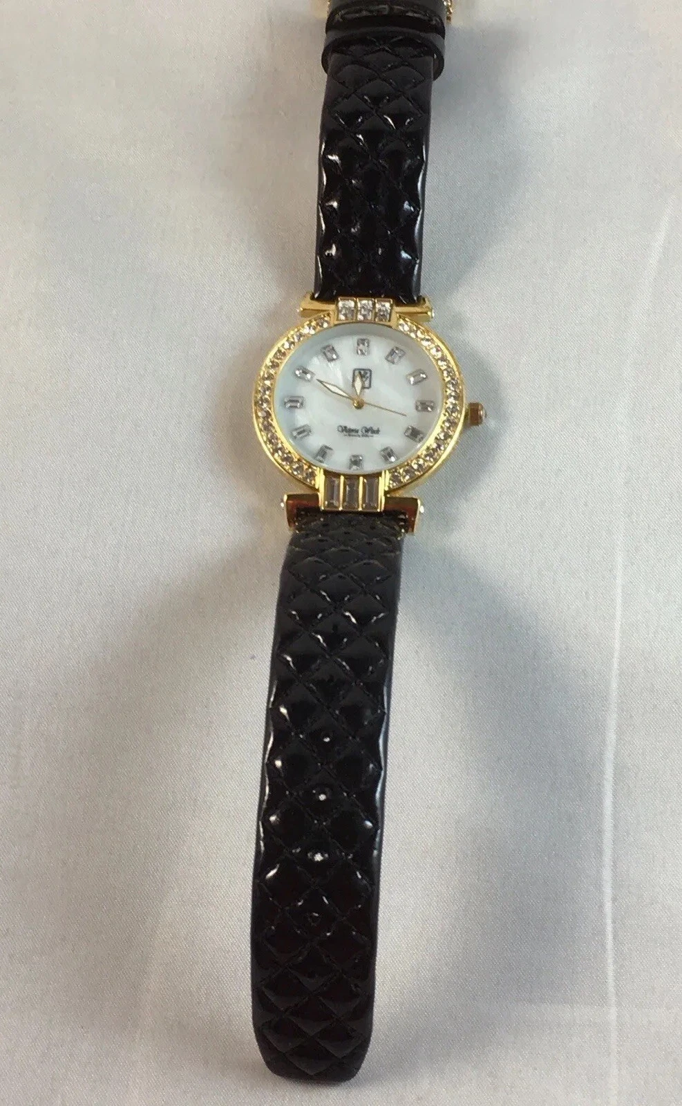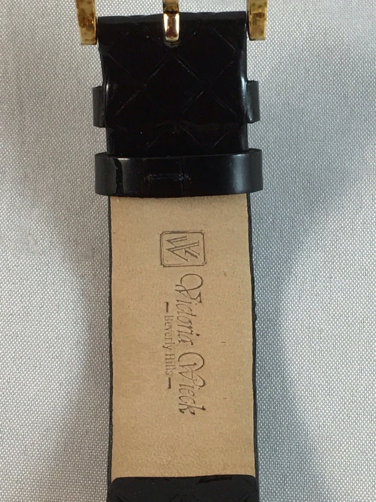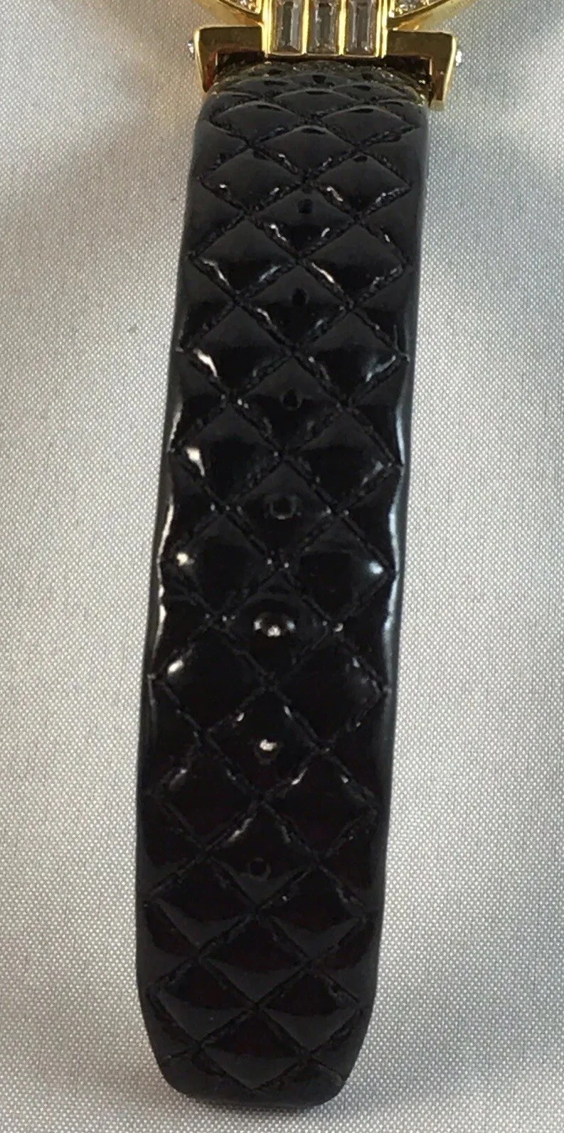 VICTORIA WIECK "QUILT PATENT" Round Goldtone Crystal Leather Strap Watch ~ Black