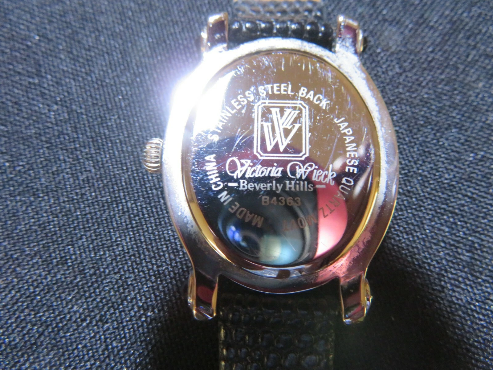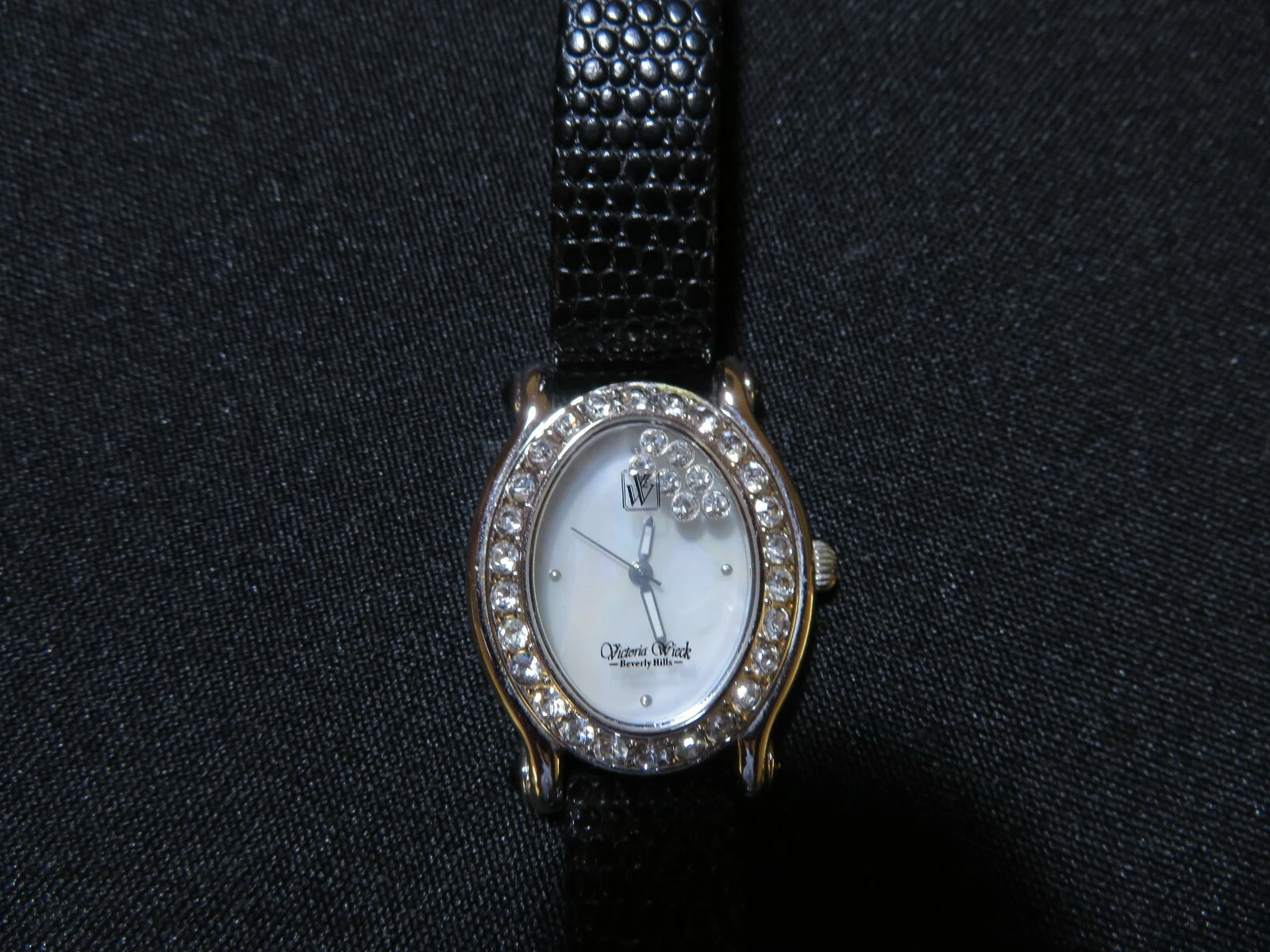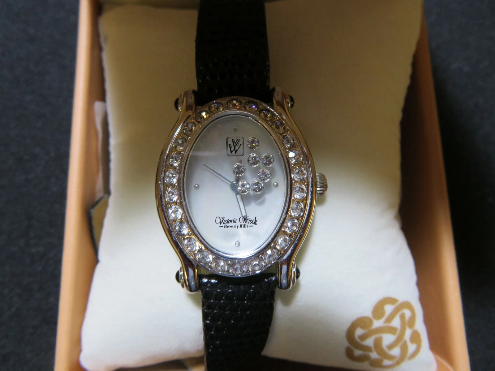 Victoria Wieck of Beverly Hills Womens Wrist Watch Black Leather Silver Case