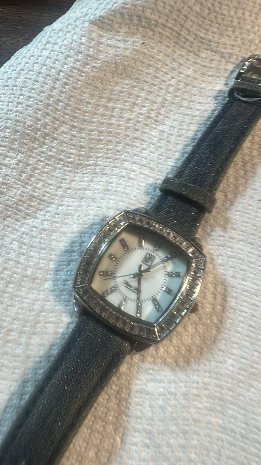 Victoria Wieck Watch Women 36mm silver Toned Square Bling Crystals New Battery