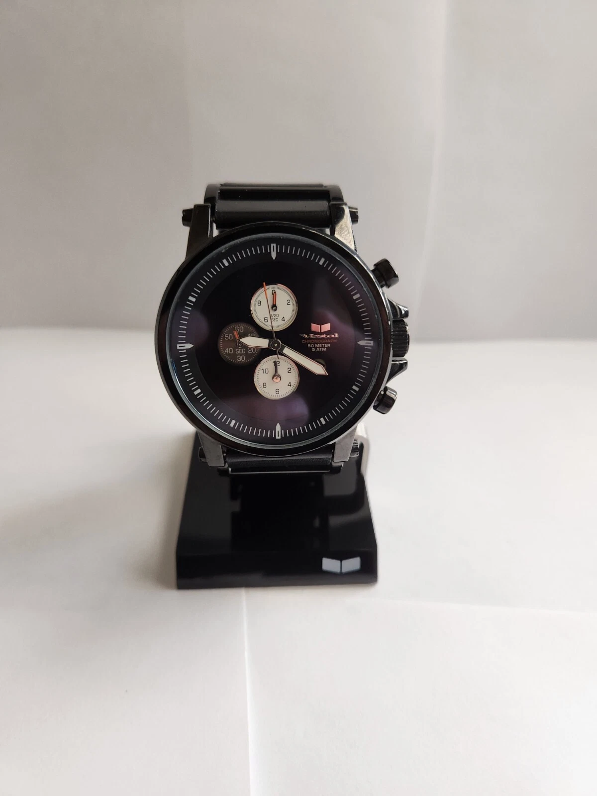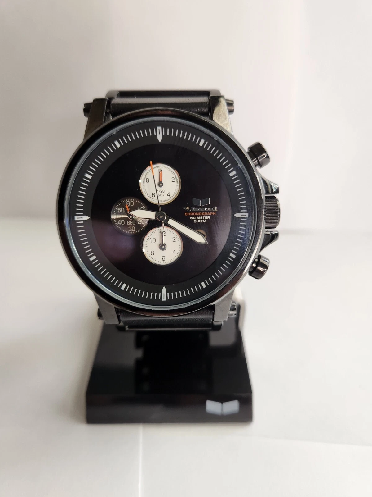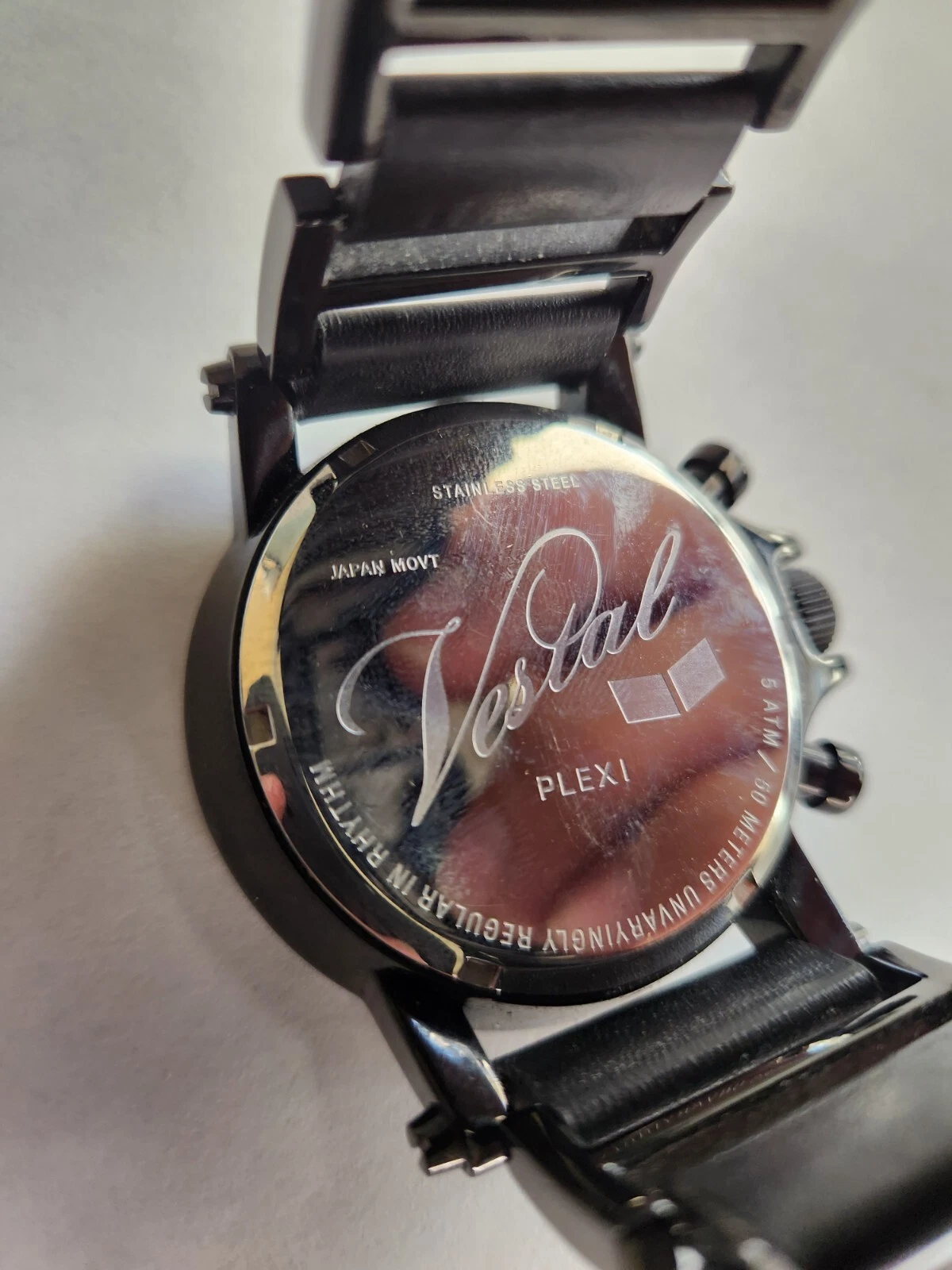 🔥🚨Vintage Vestal Plexi Black Leather Designer Luxury Watch Rare! EUC 2000s