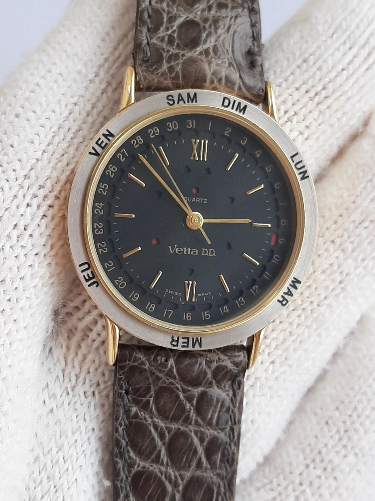 VETTA D.D WATCH QUARTZ DAY DATE TWO TONE MENS SWIS MADE EXELLENT CONDITION