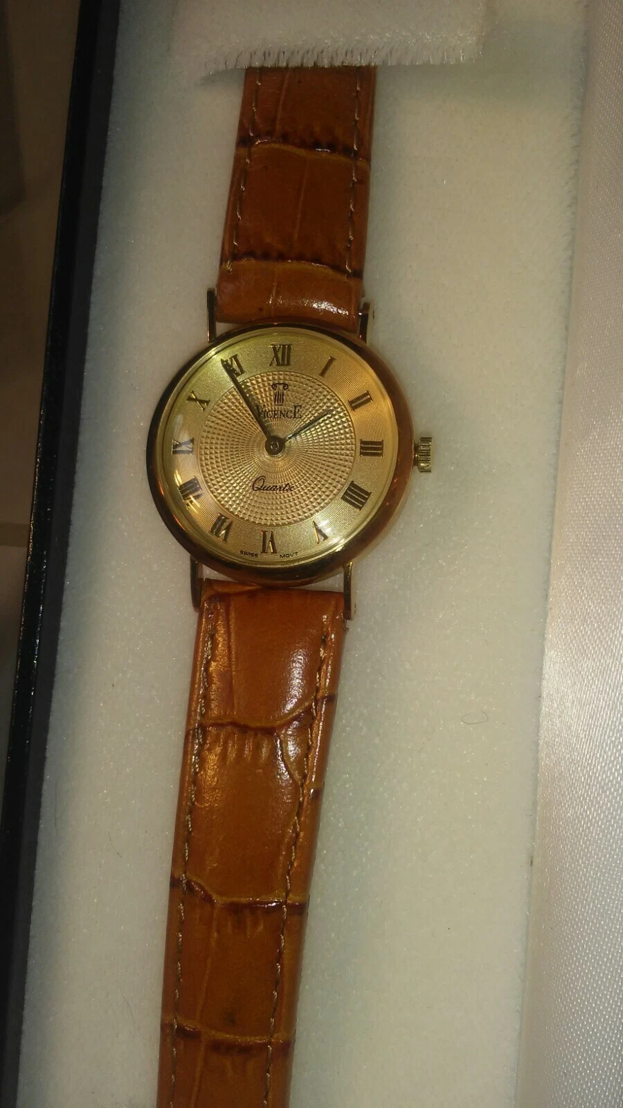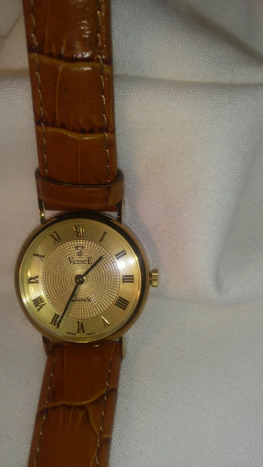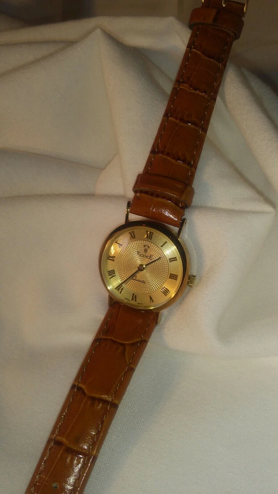 Watch Vicence 14K Gold Quartz 7" Ladies Watch Milor Italy NWOT Tan leather band