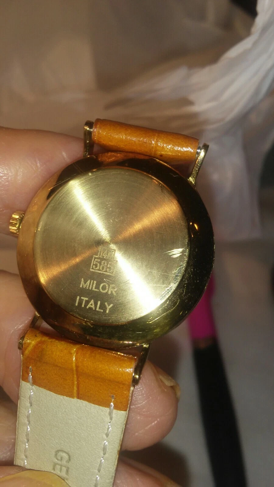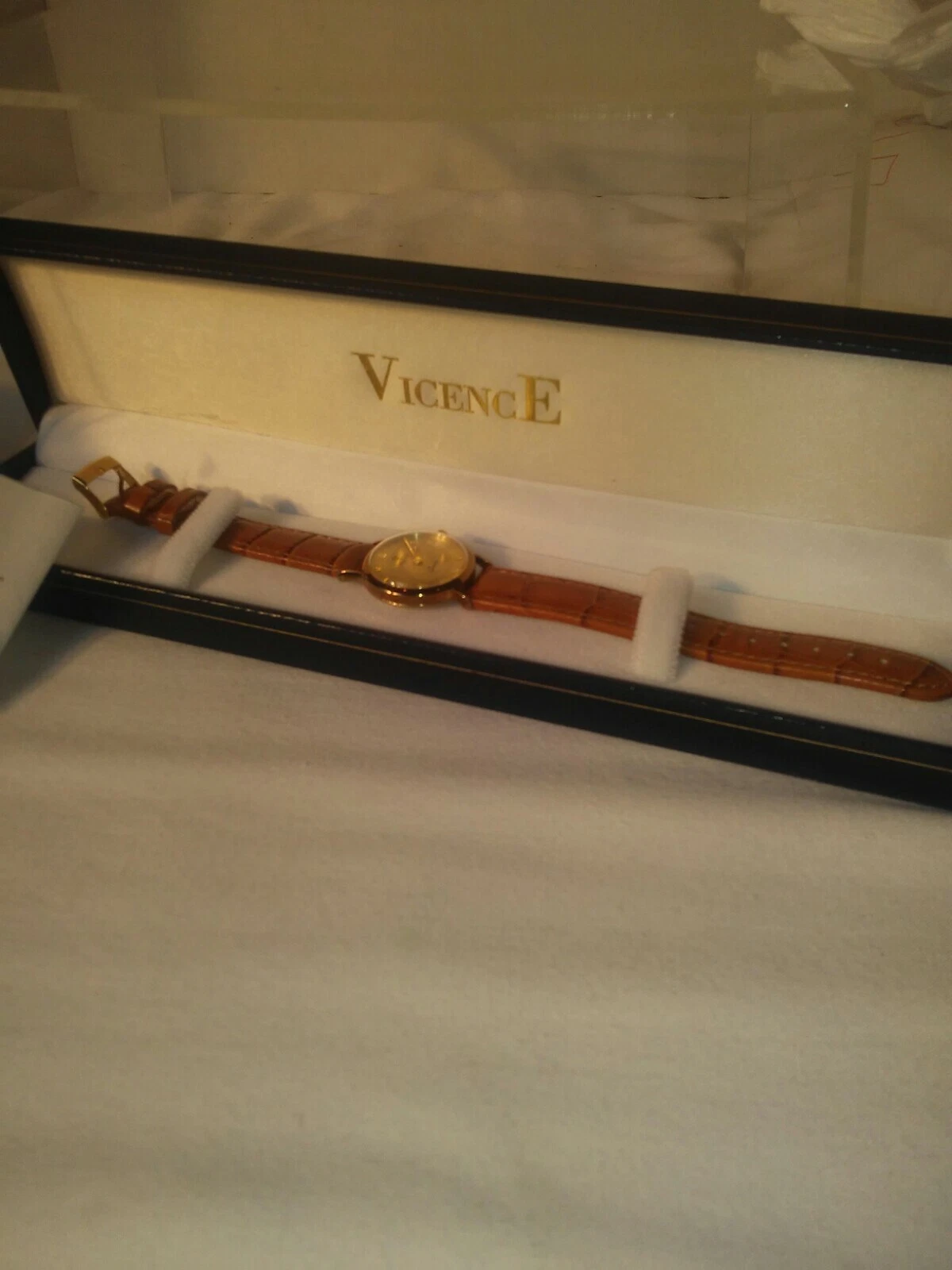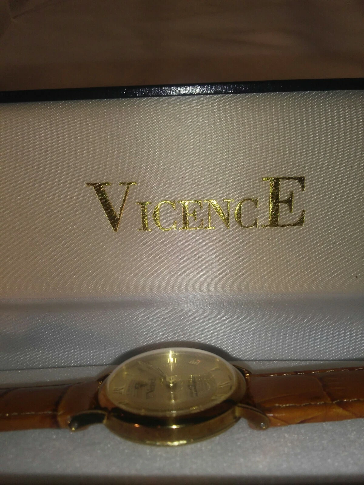 Watch Vicence 14K Gold Quartz 7" Ladies Watch Milor Italy NWOT Tan leather band