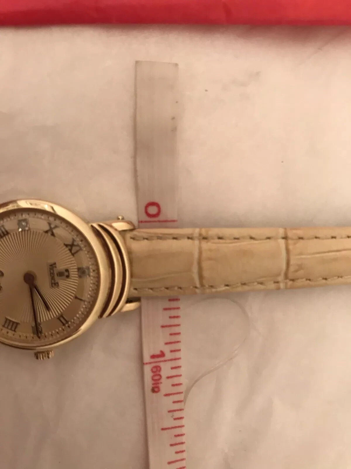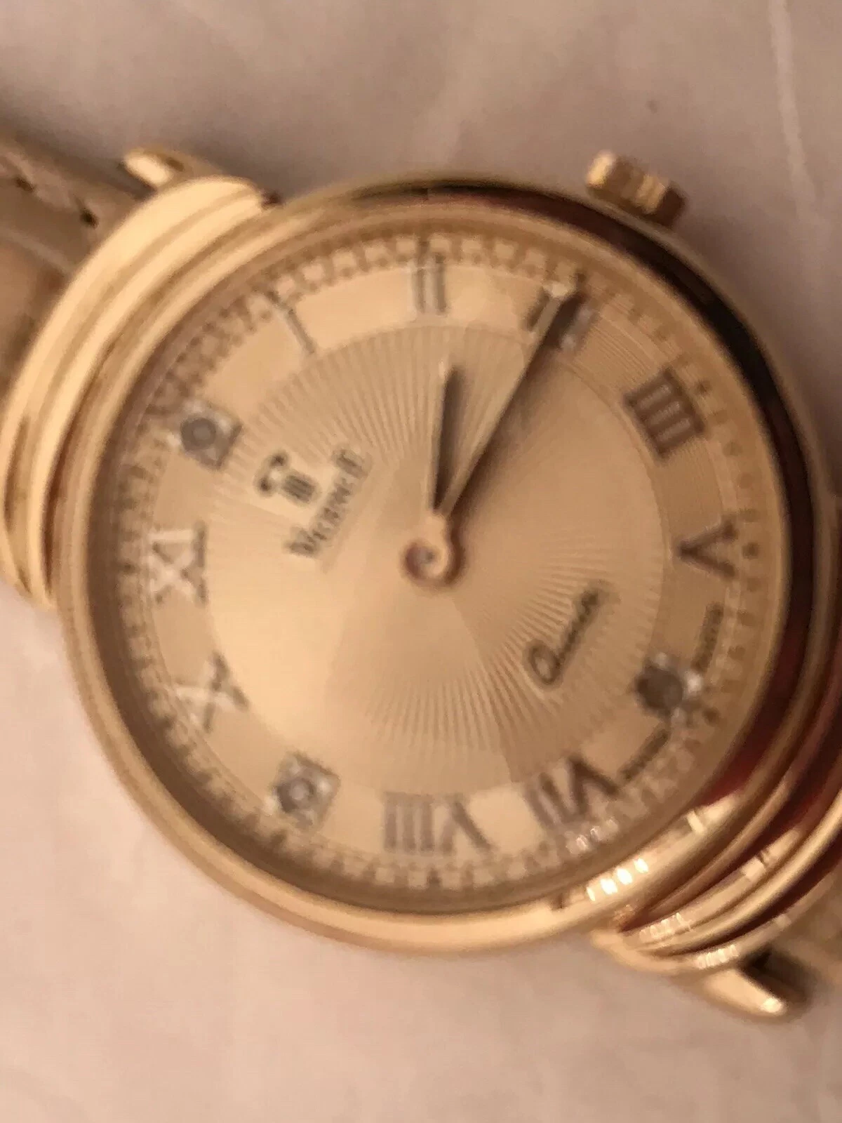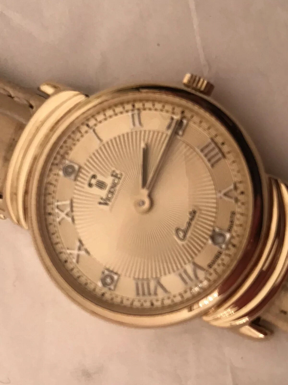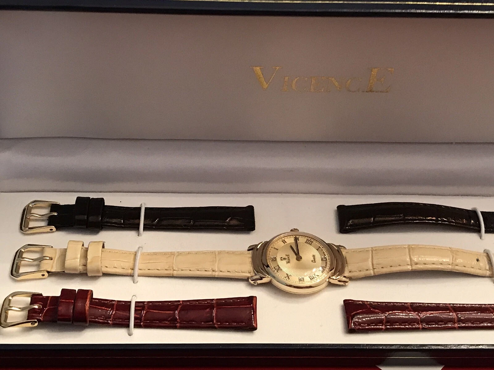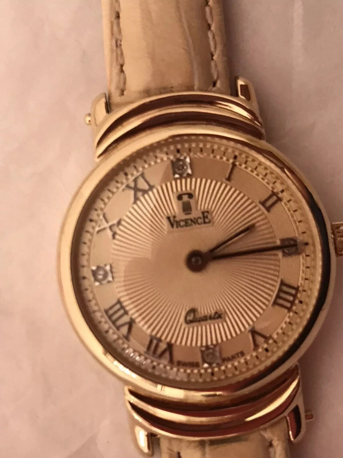 Vicence 14K Gold Women’s Watch Roman #s Diamond Accents 3 Leather Straps Italy