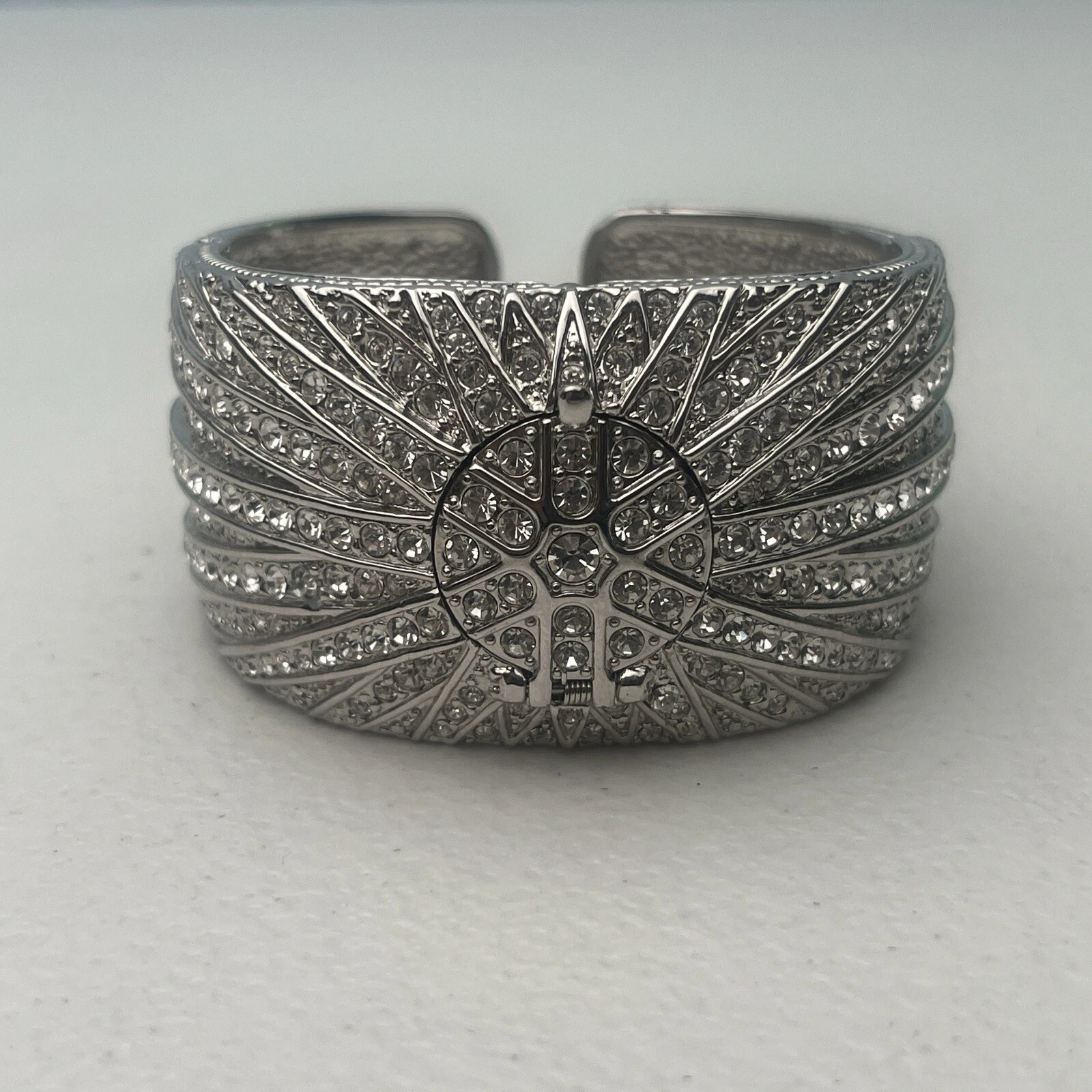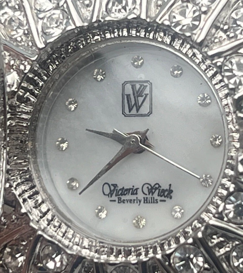 Victoria Wieck Crystal Cuff Bangle Hidden Analog Quartz Watch New Battery