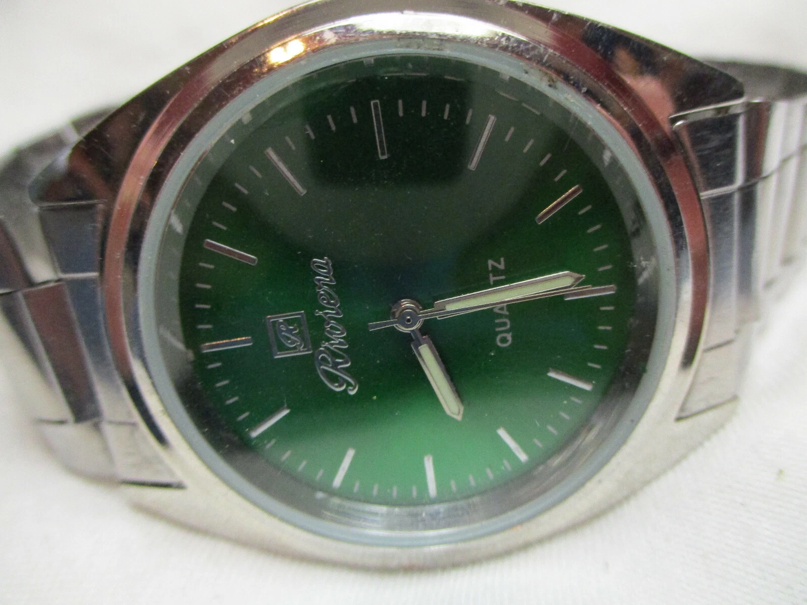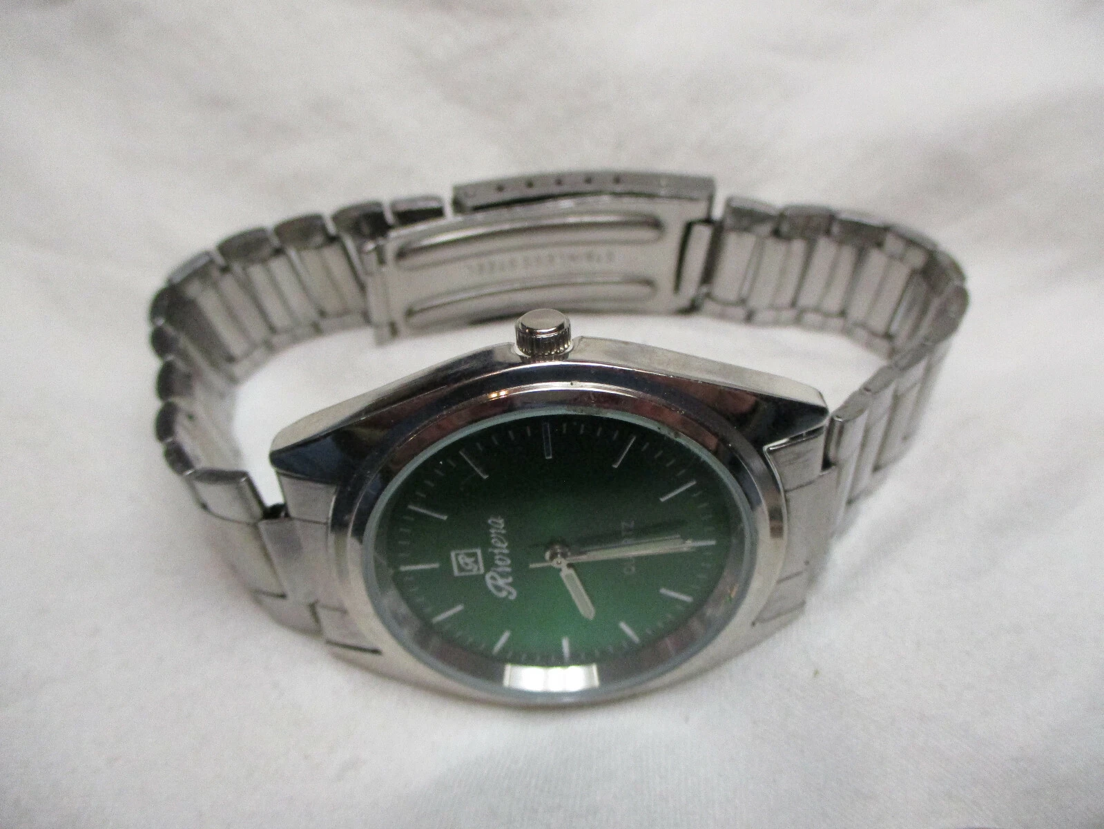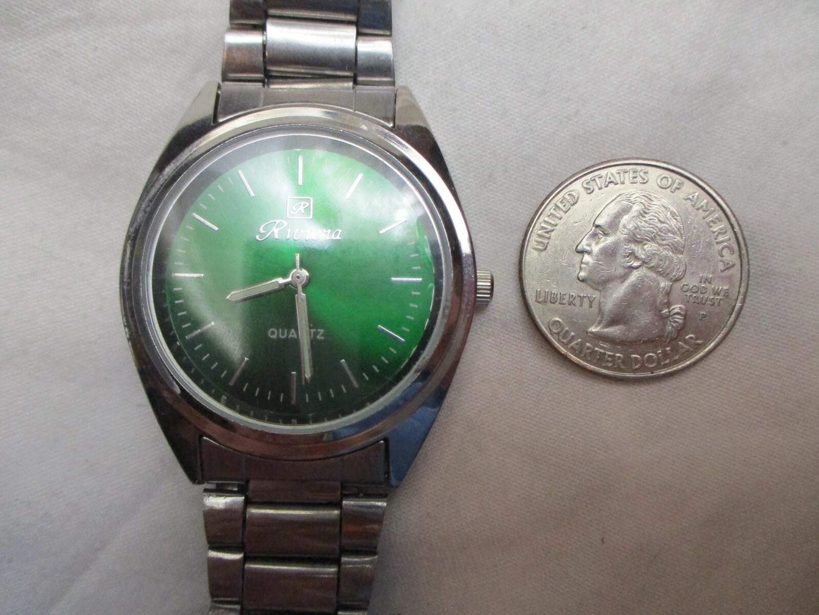 Riviera Watch, Green Dial, Silvertone Metal Link Bracelet Band