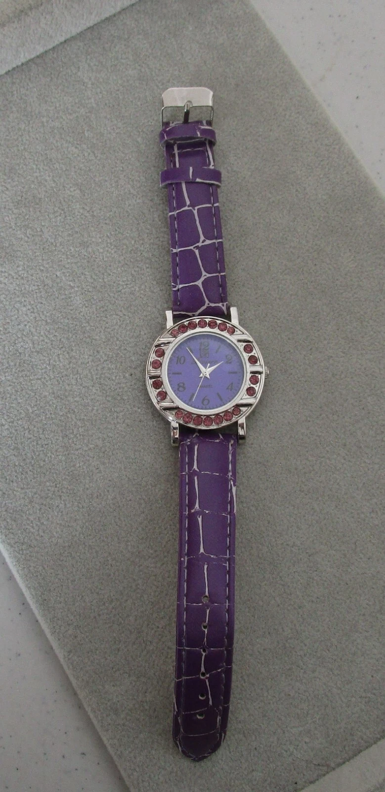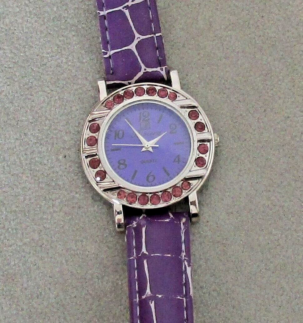 Womens Watch Purple Rhinestone by Riviera Wristwatch Silver Accents New battery