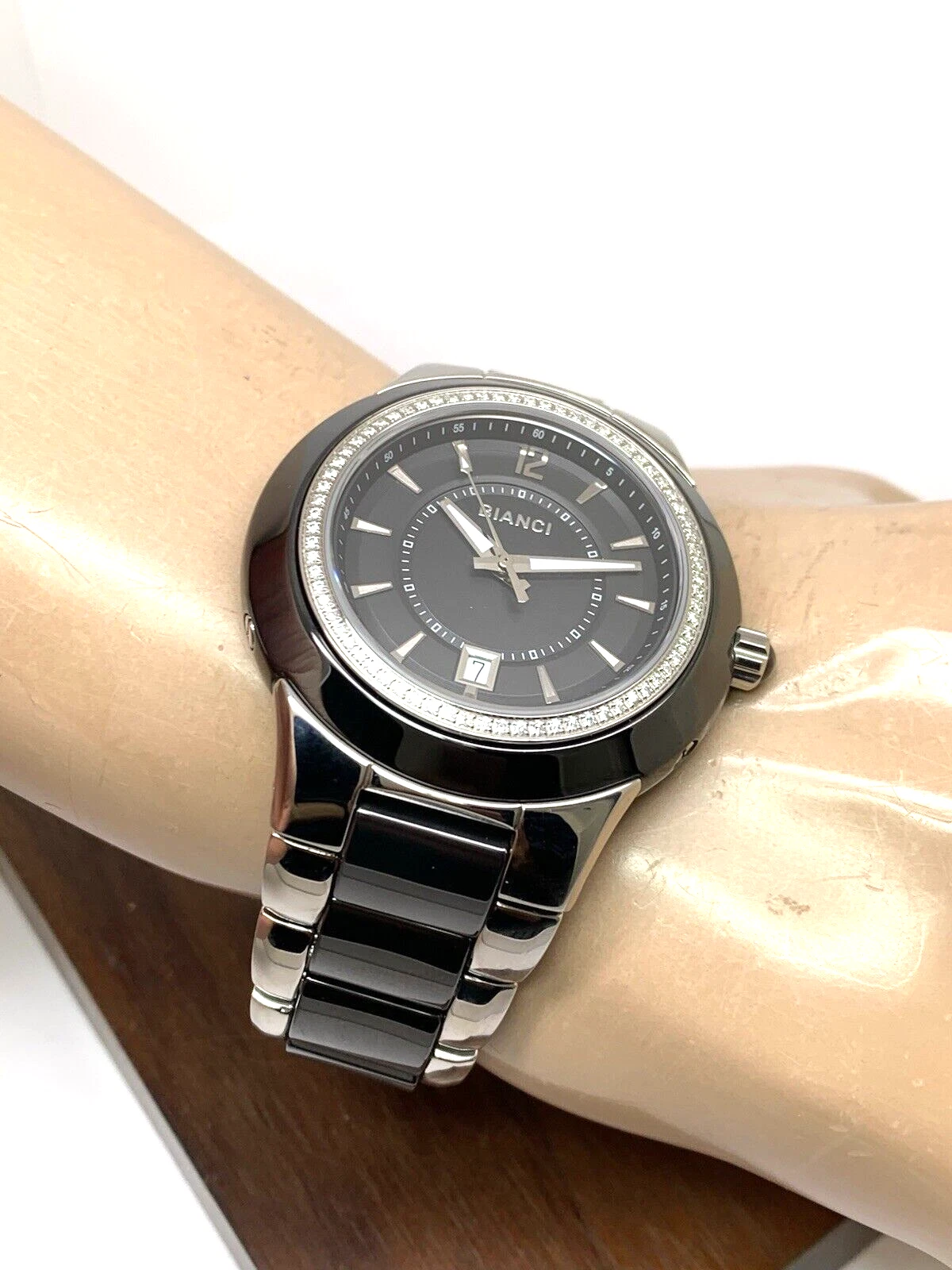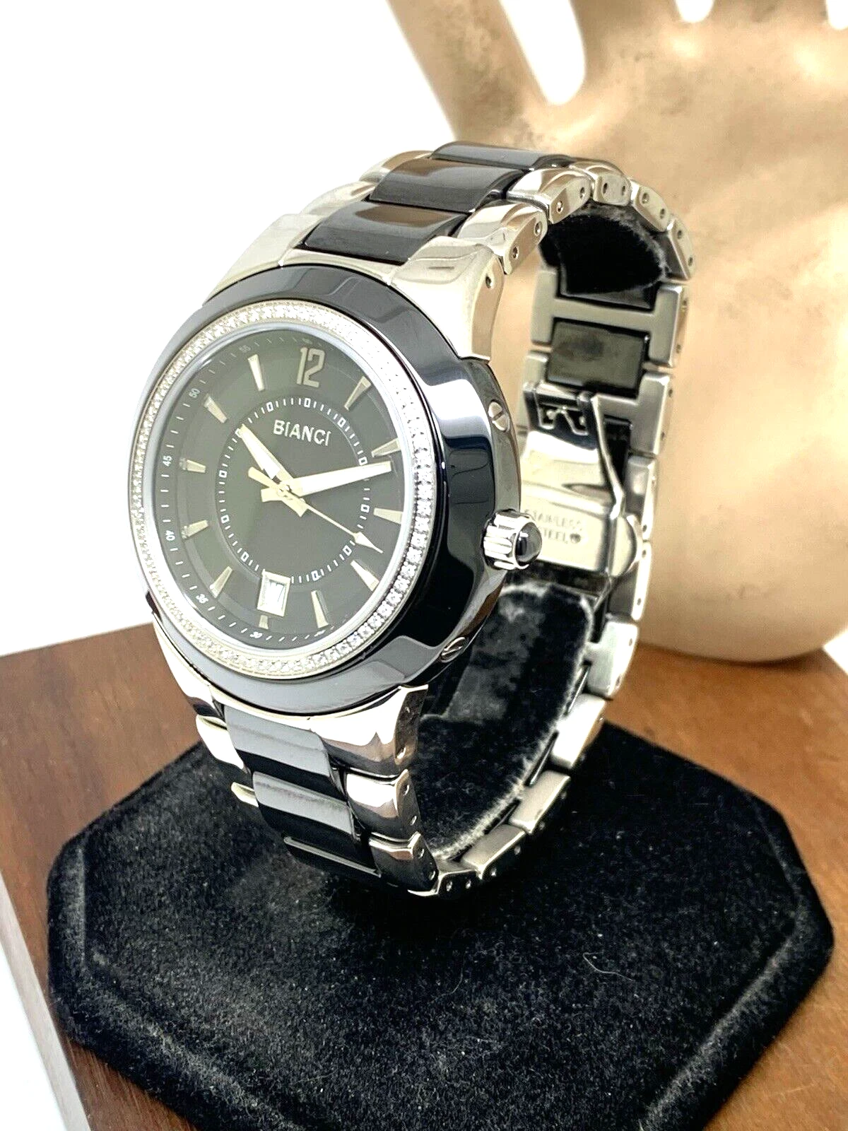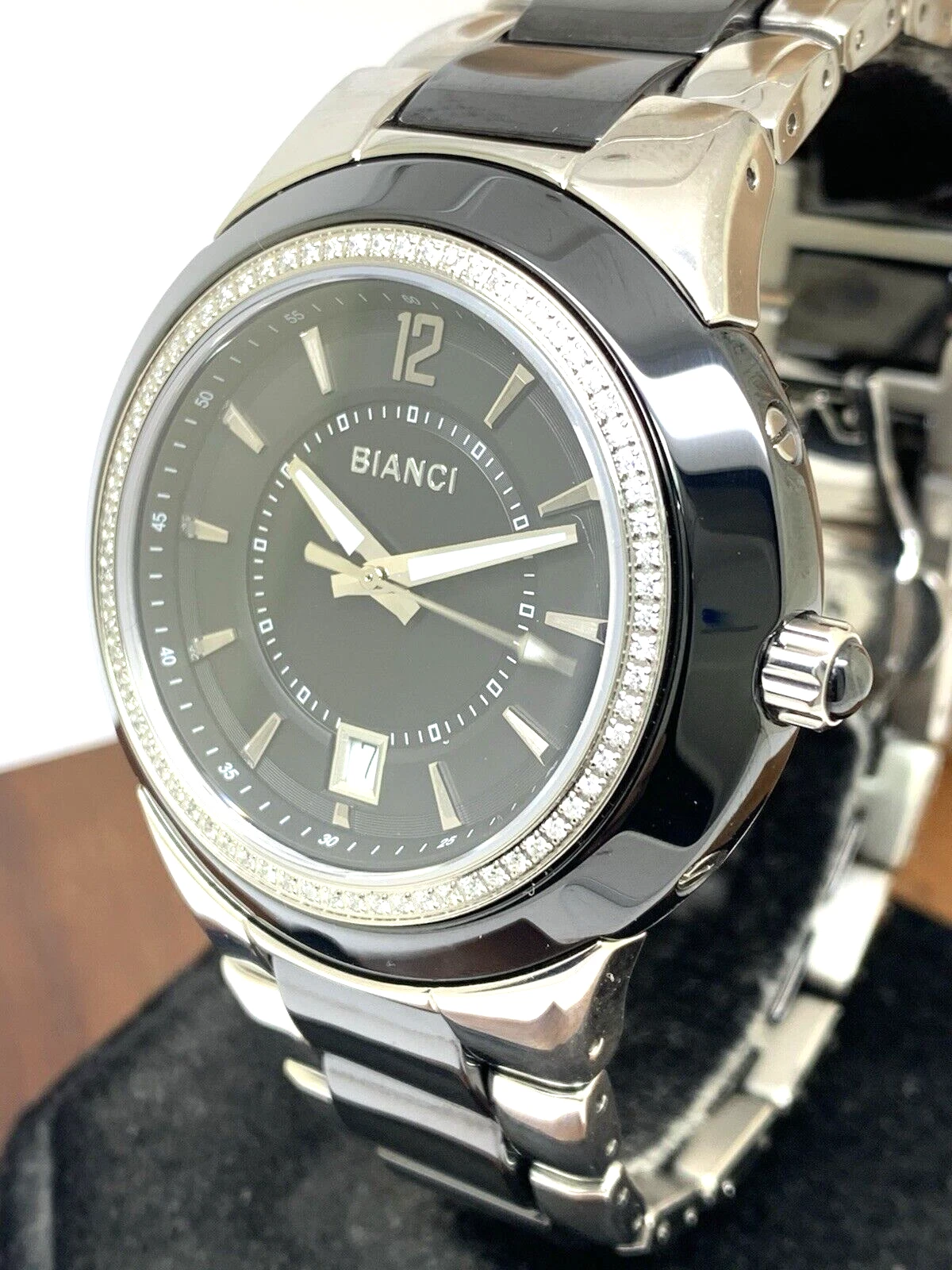 Roberto Bianci Men's Watch B-271M Swiss Quartz Diamond Accent Steel Ceramic 45mm