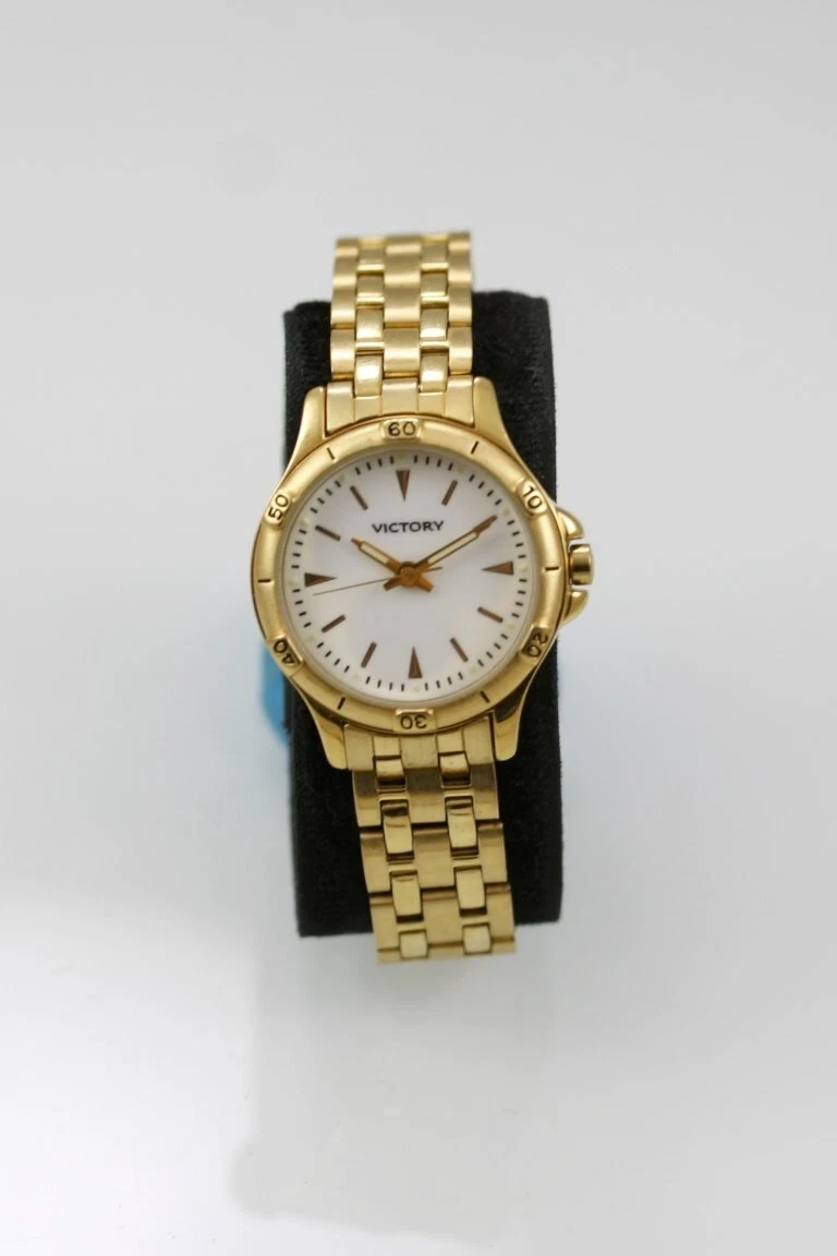 Victory Women Watch Gold Stainless Steel Battery Water Resistant White Quartz