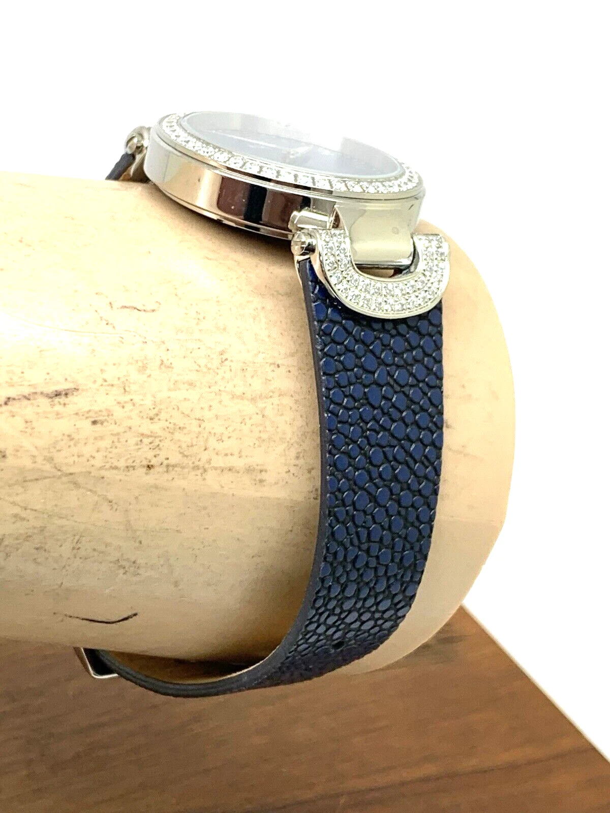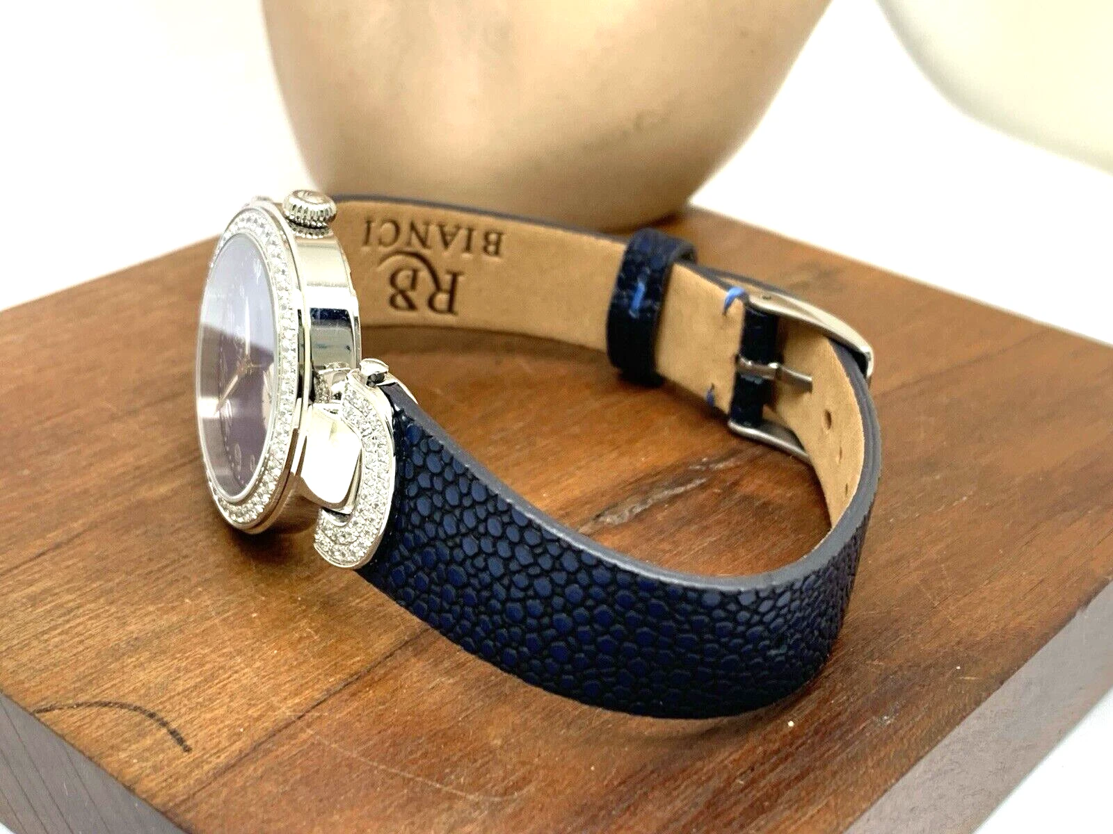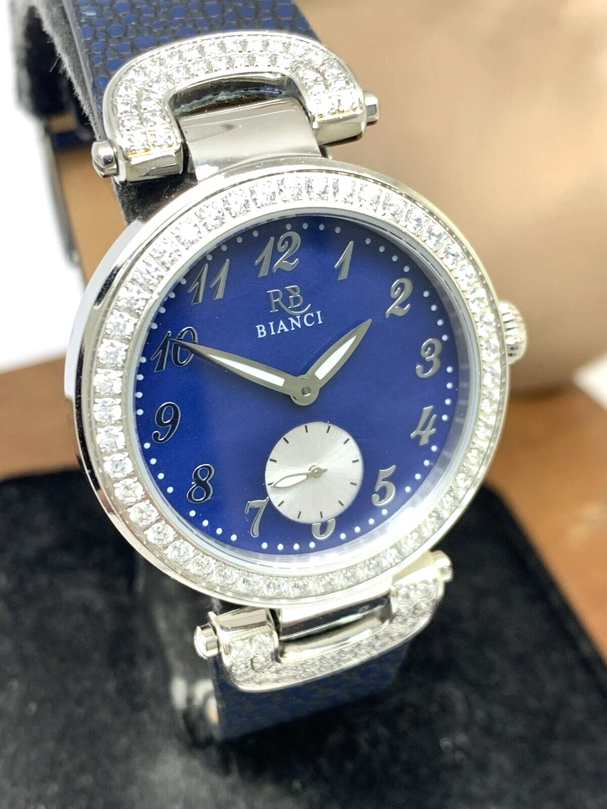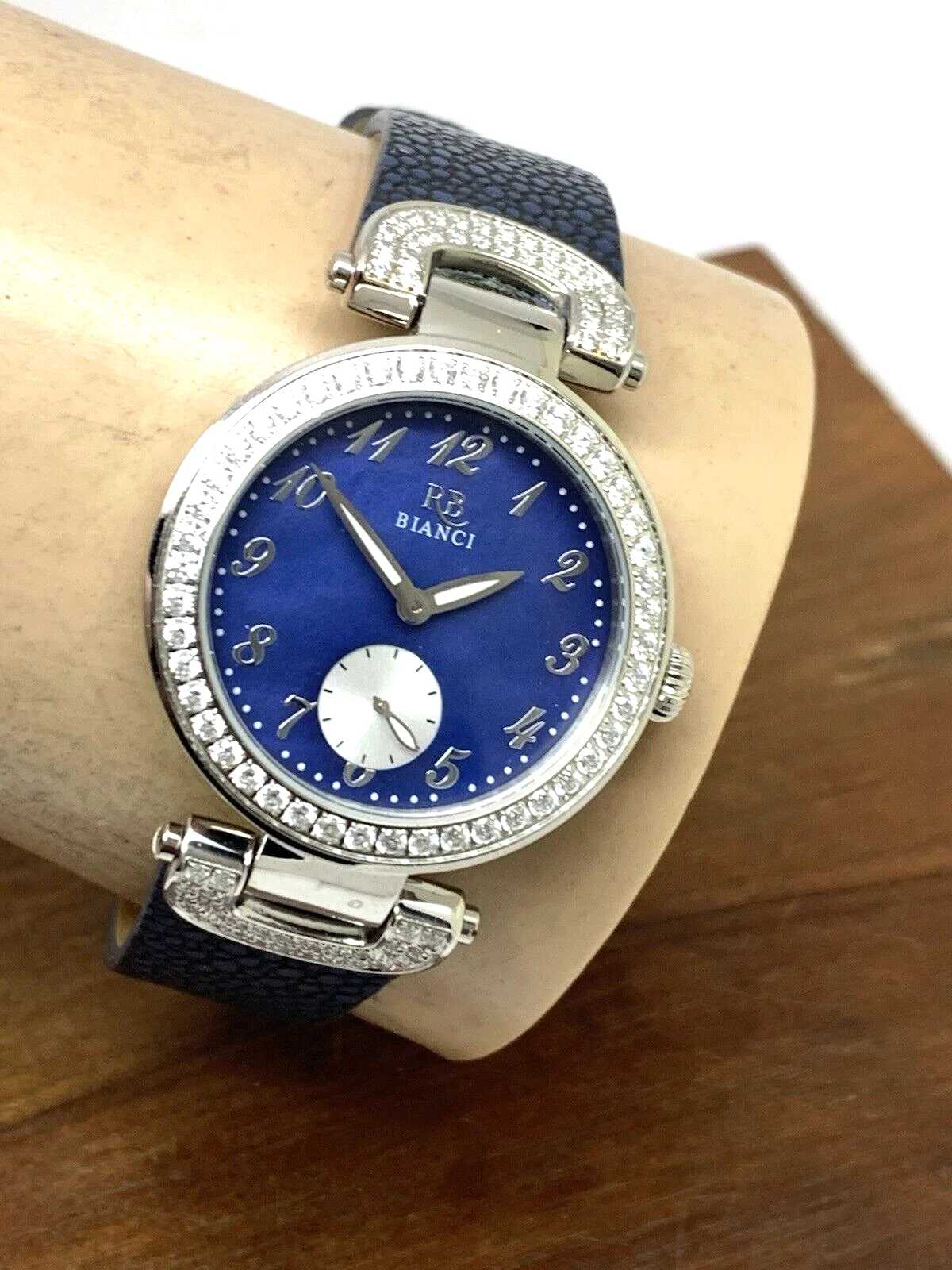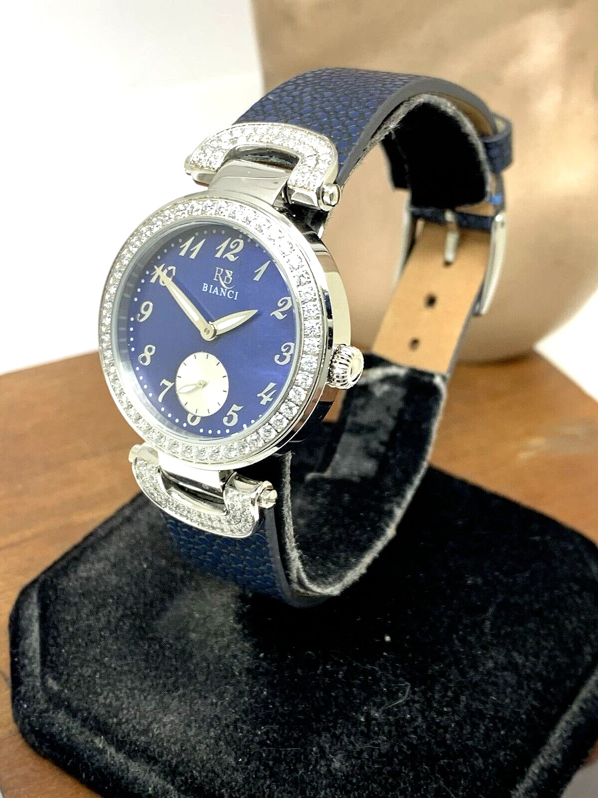 Roberto Bianci Women's Watch RB0615 Blue Dial Quartz Gemmed Leather Strap 32mm