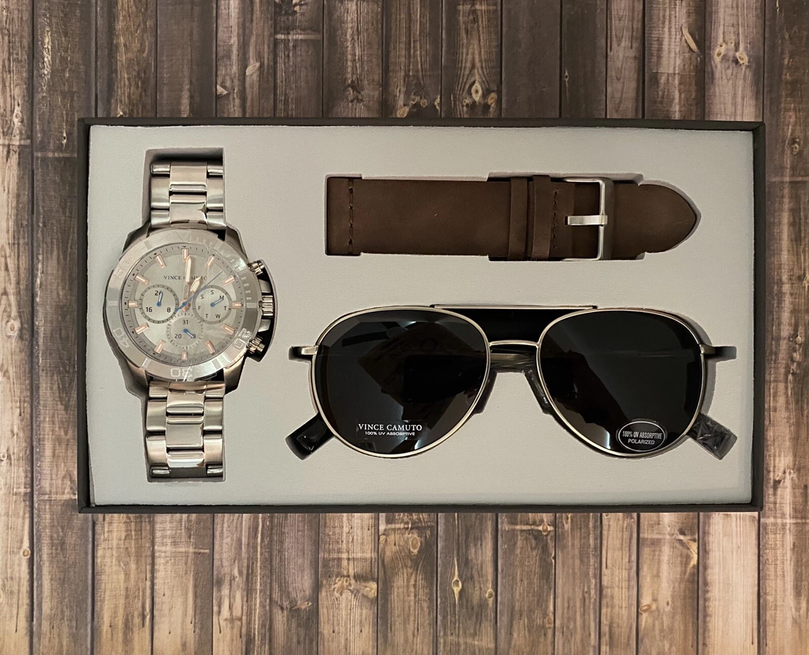 Vince Camuto Chronograph Stainless Steel Men's Watch Sunglass Set Vc/1147gysvst