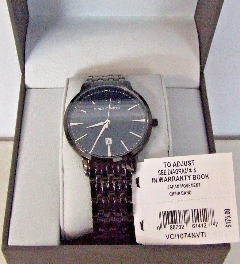 Vince Camuto VC/1074NVTI Black Stainless Steel BLACK Dial Dress Men's Watch NEW