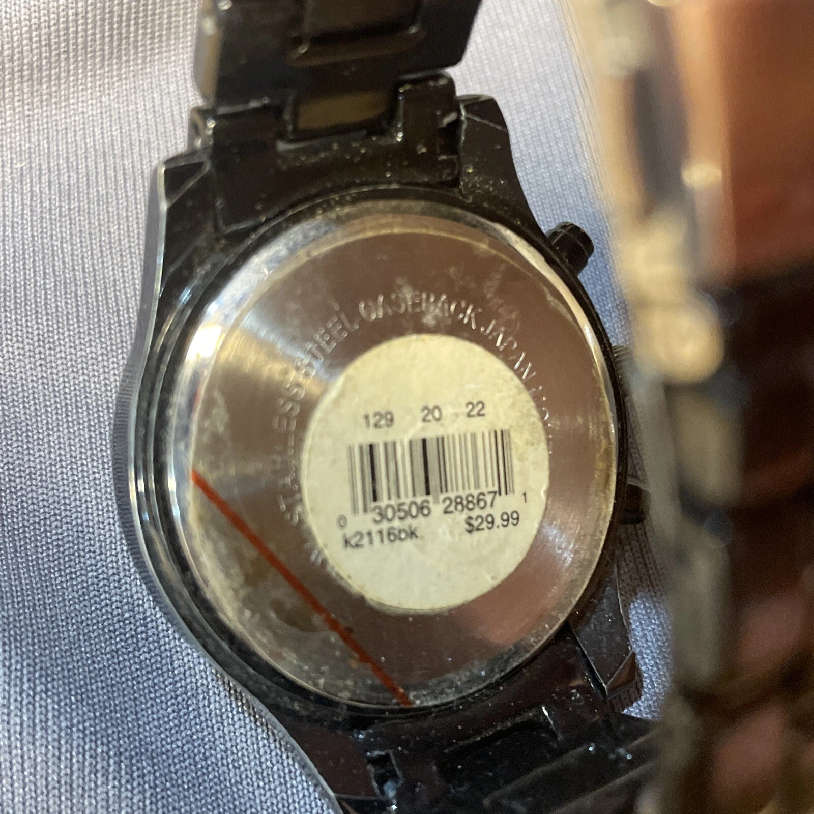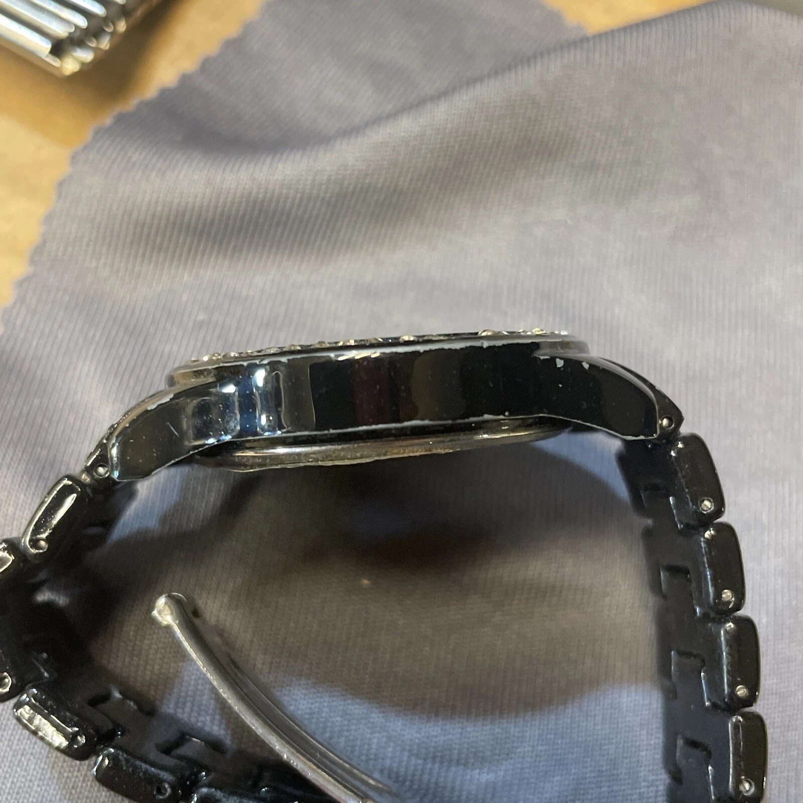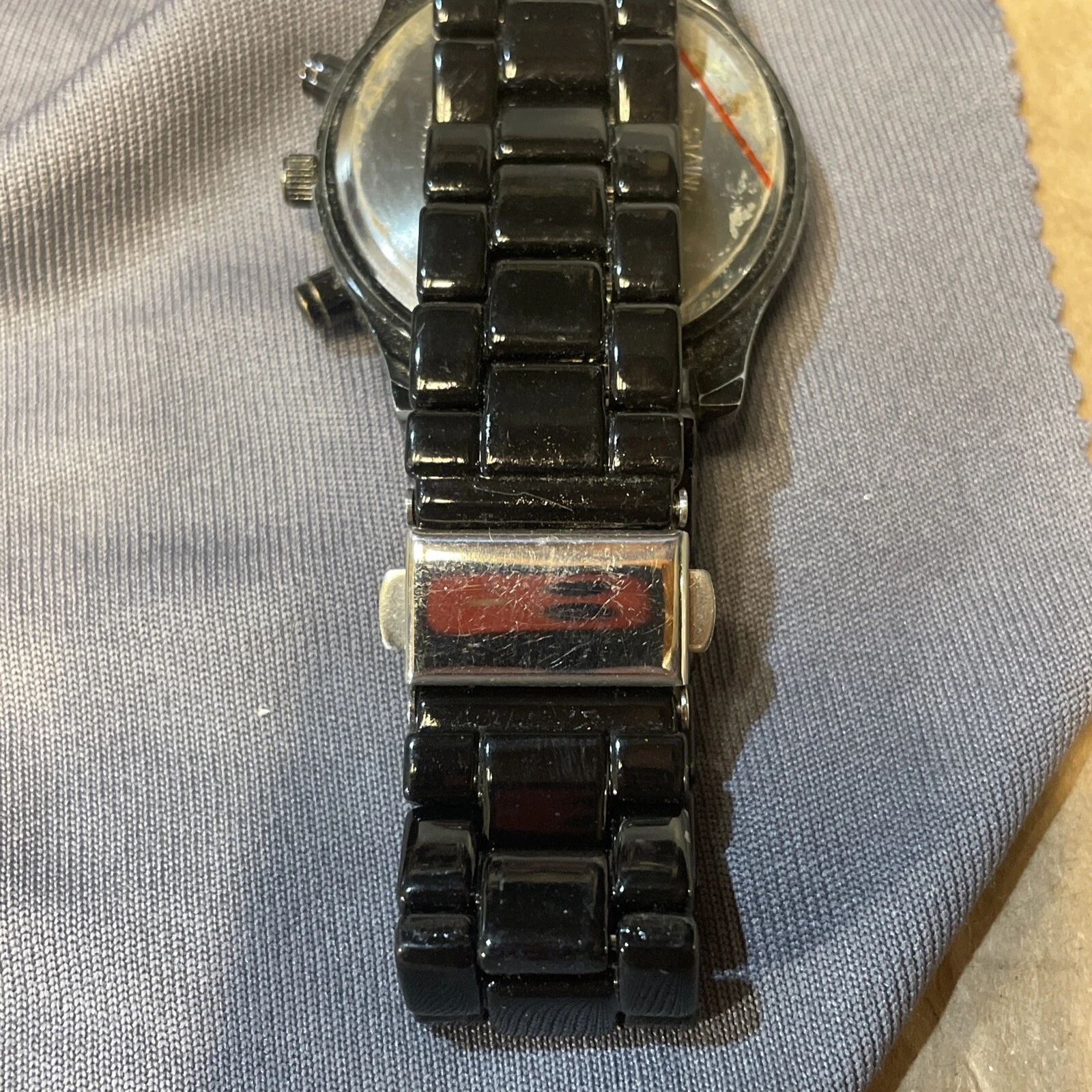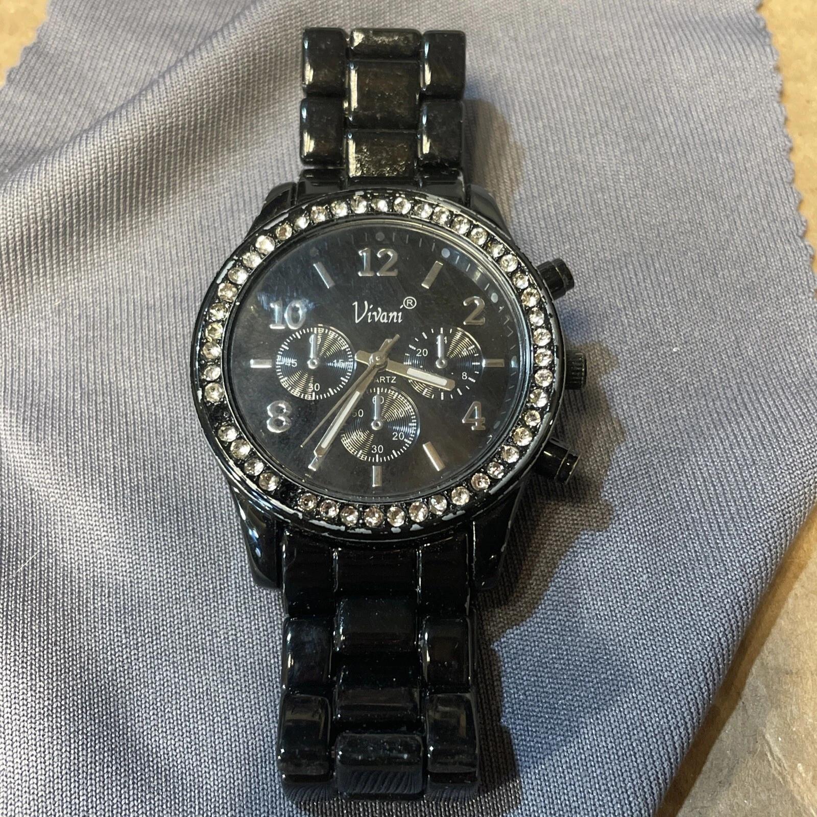 Men's Nice Vivani Quarts Wrist Watch Rhinestones & Black Metal Band working