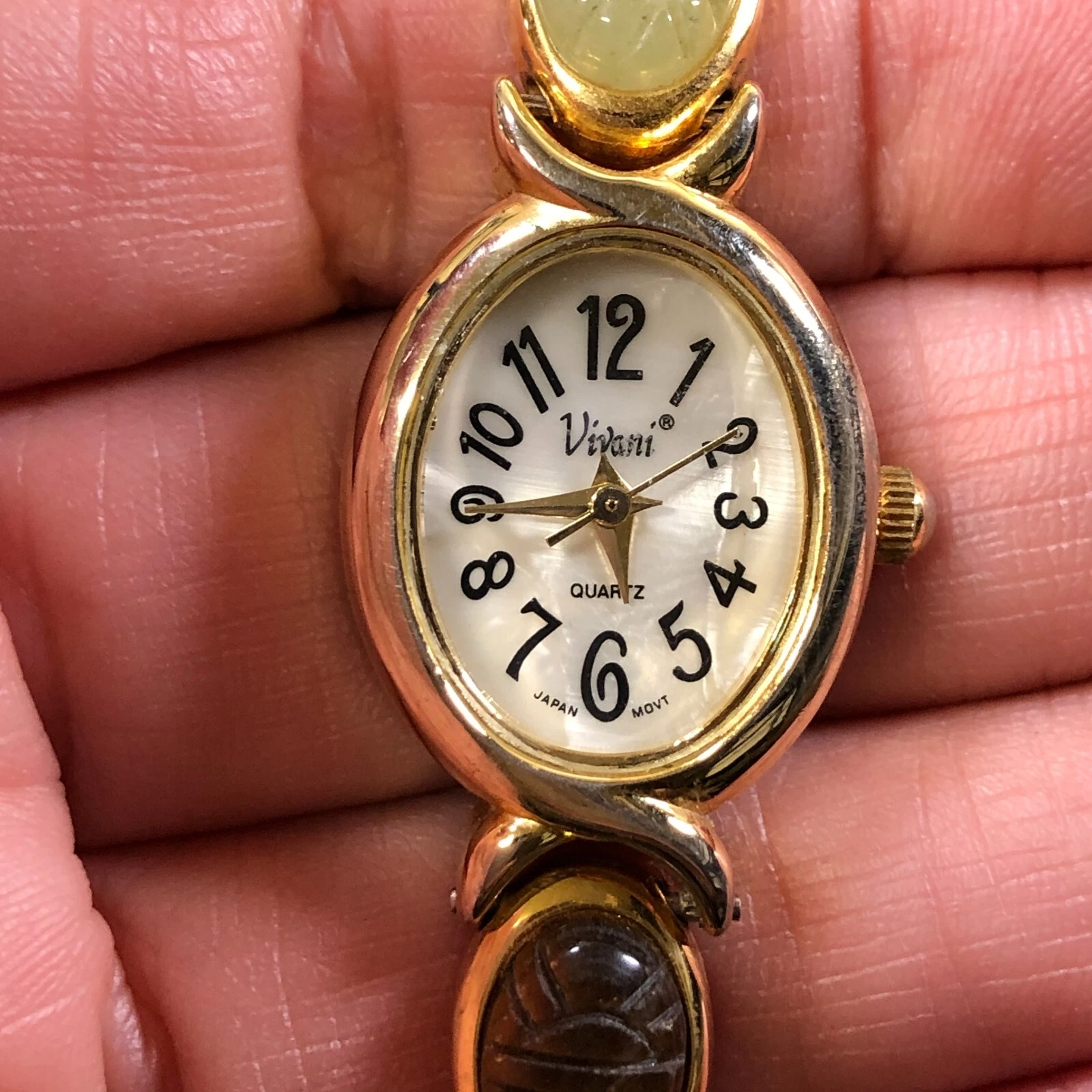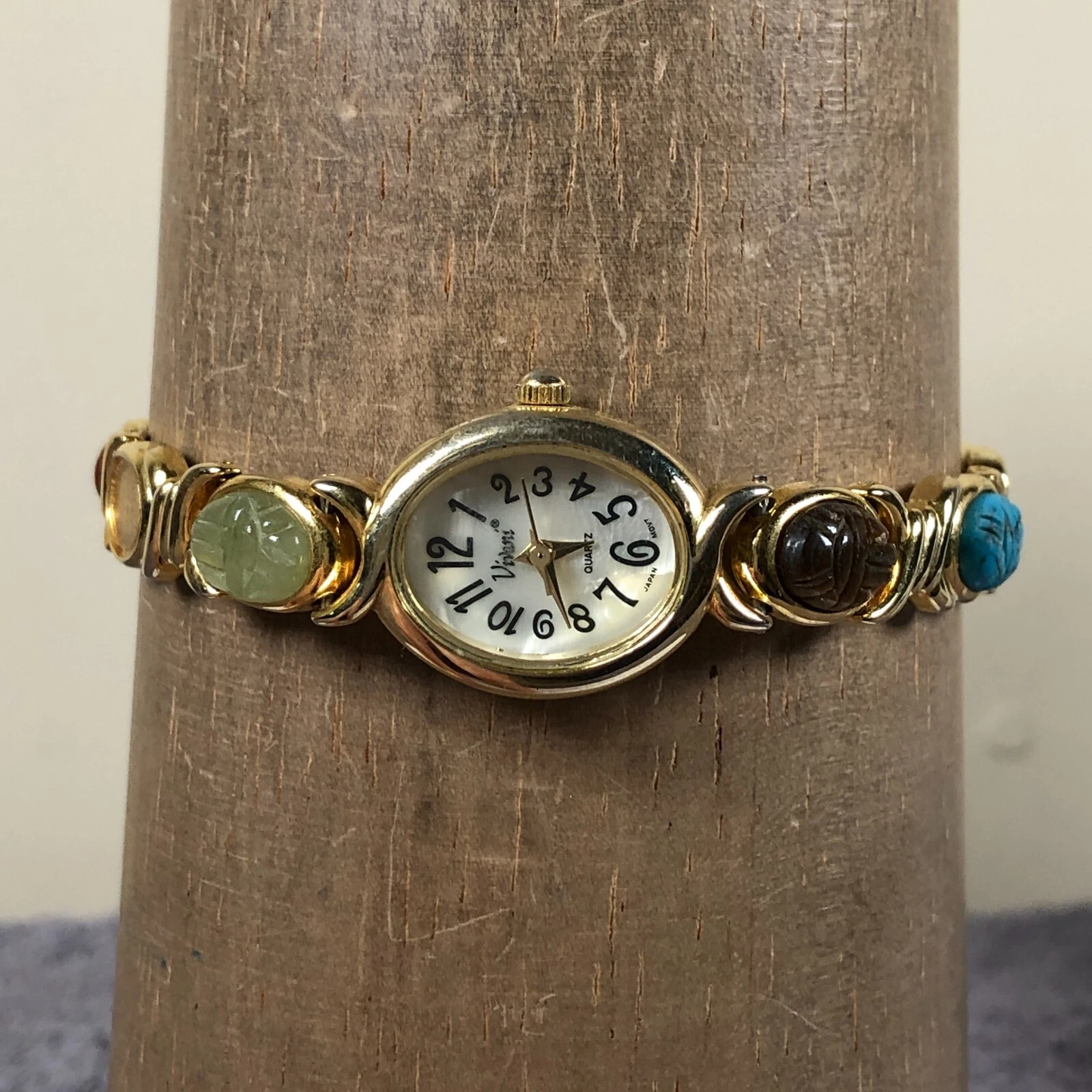 Vivani Women 6003 Scarab Stones Bracelet Gemstone Quartz Watch 7 3/4"