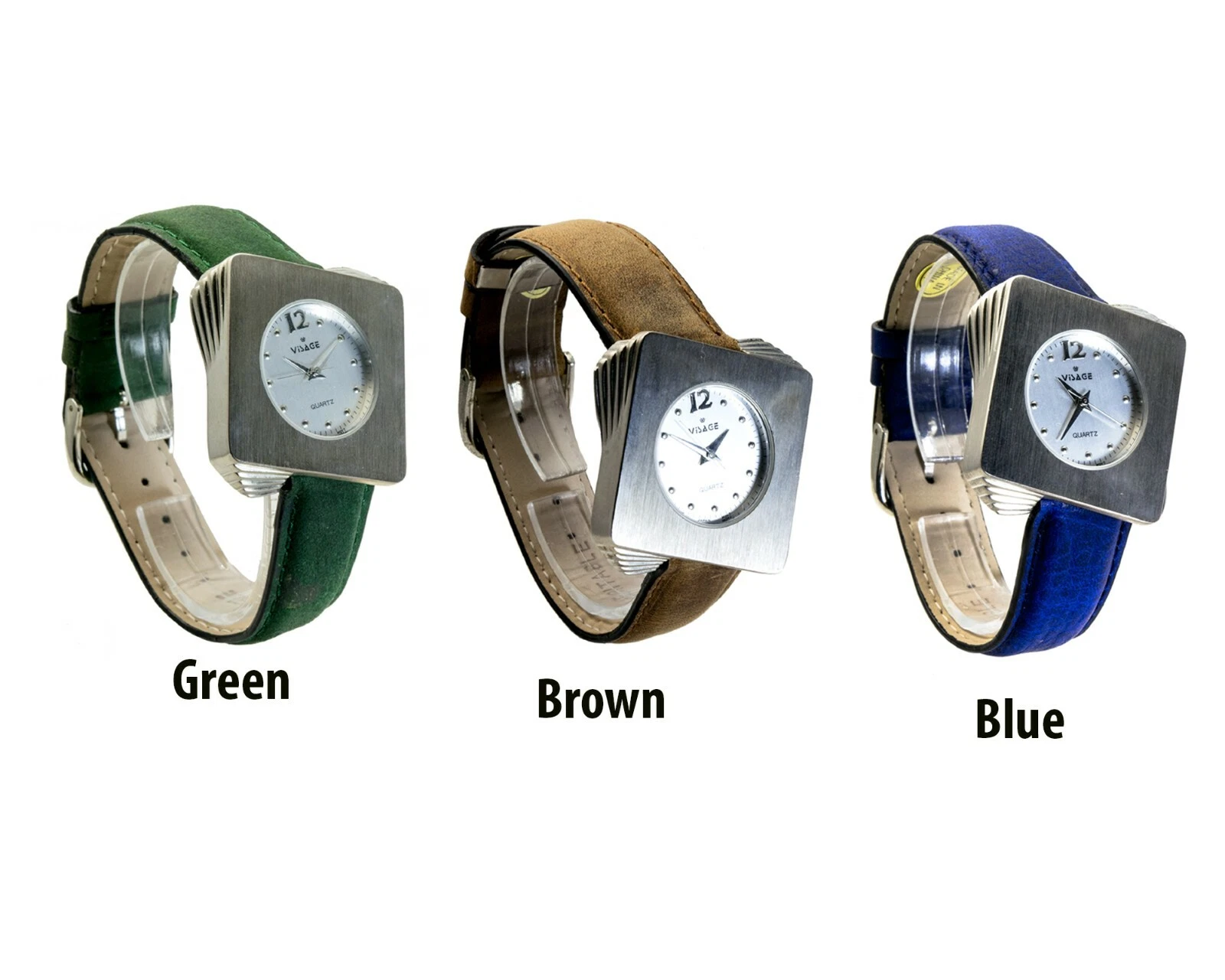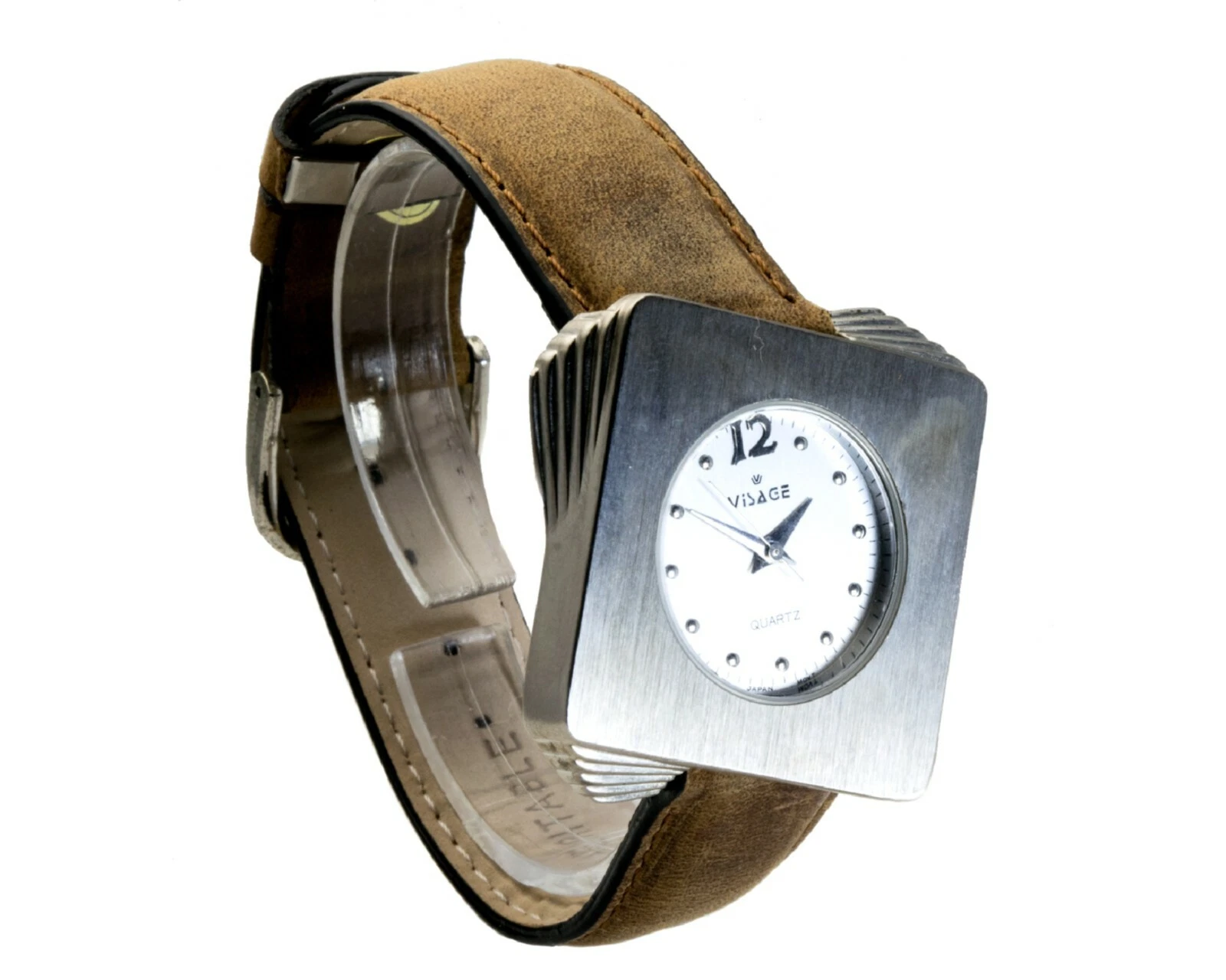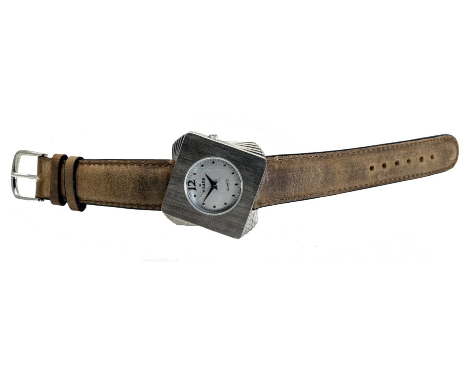 VISAGE:WOMENS' ANTIQUE GENUINE LEATHER BAND SQUARE ANALOG QUARTZ WATCH