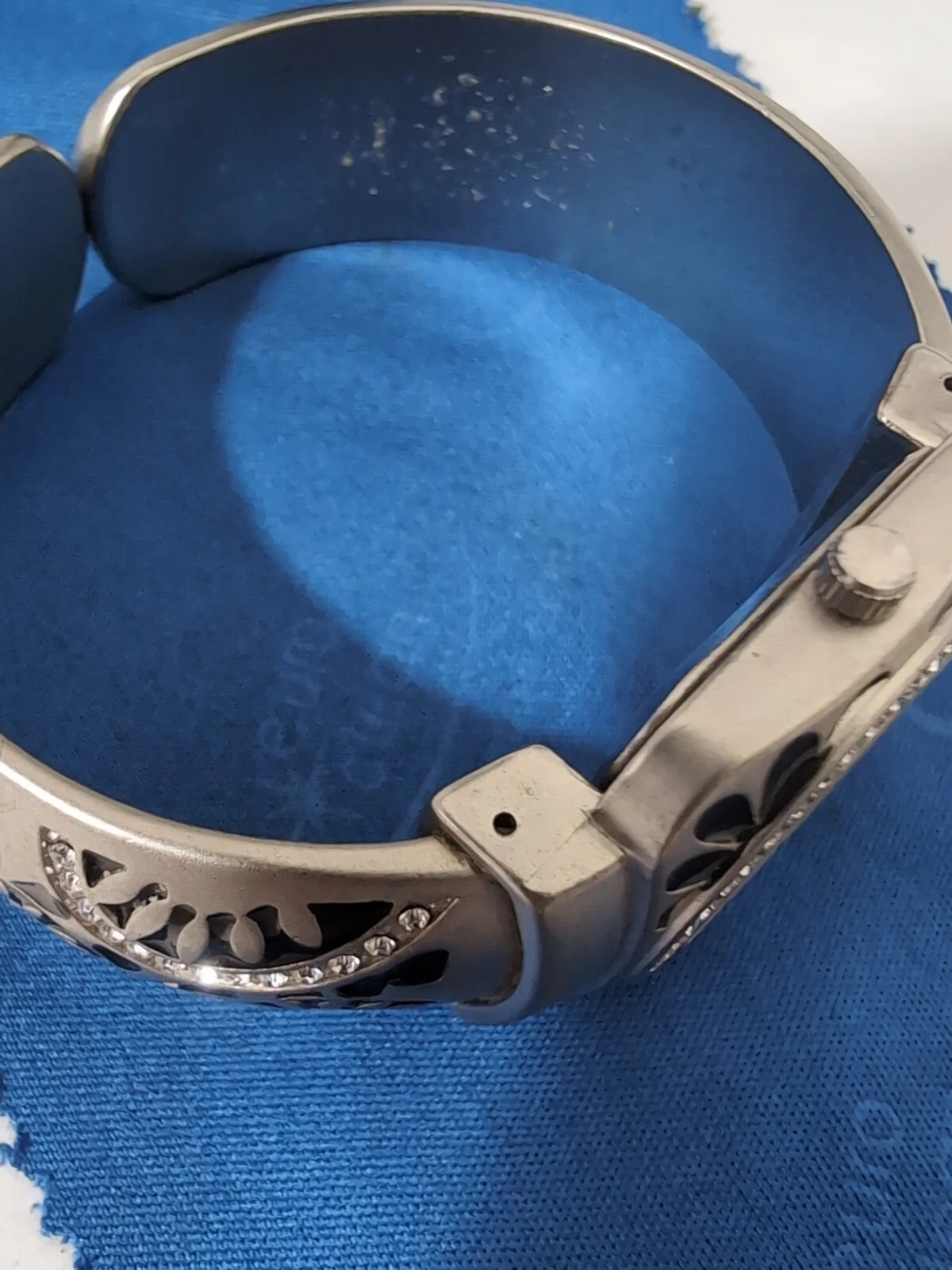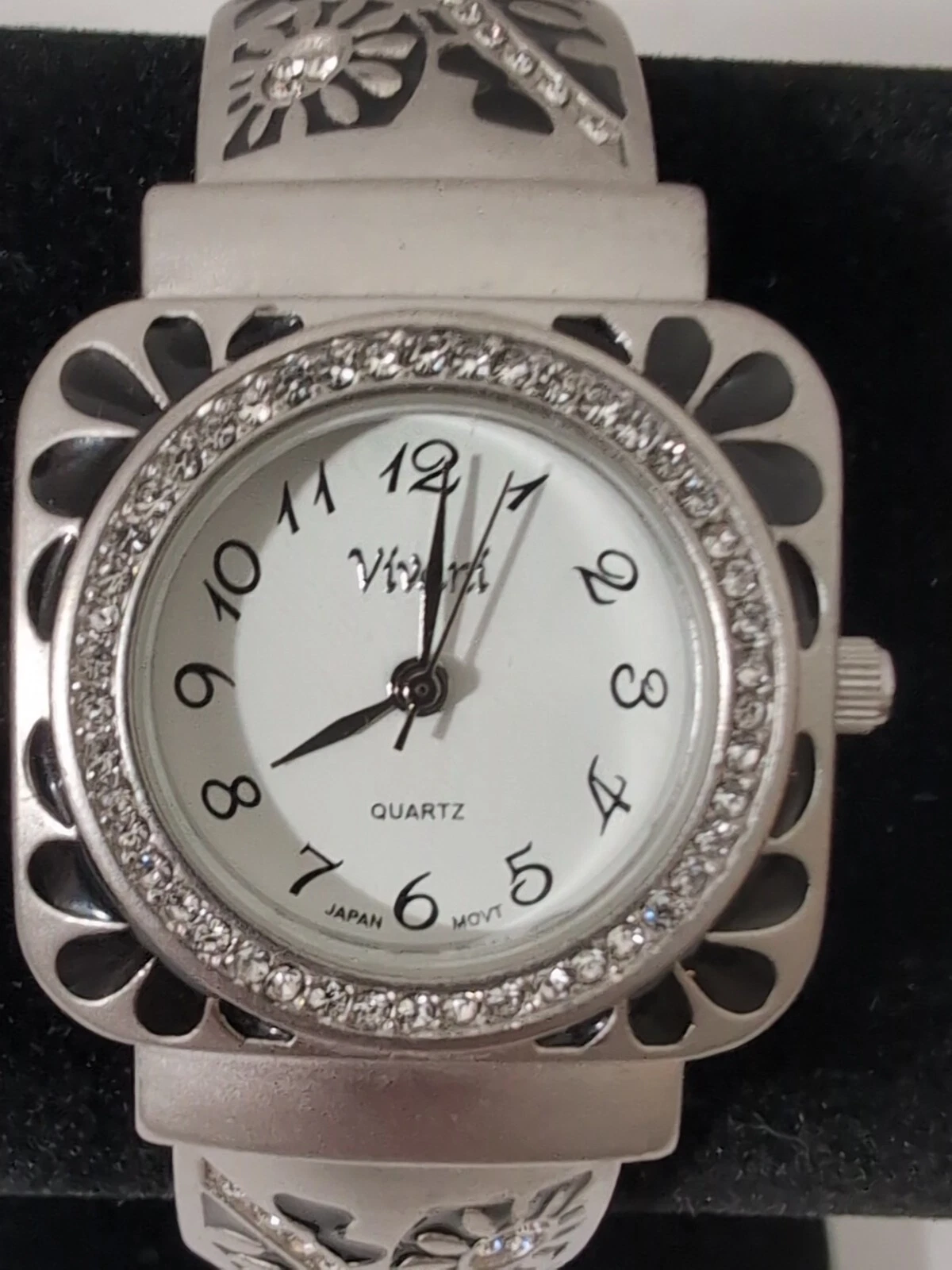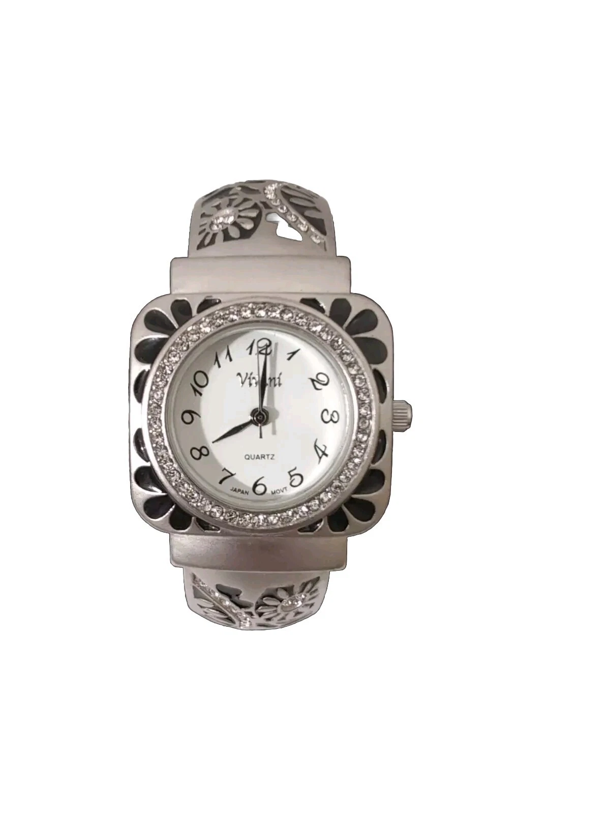 Vivani Women's Silver Tone Crystal Accented Cuff Style Watch, Vintage Working
