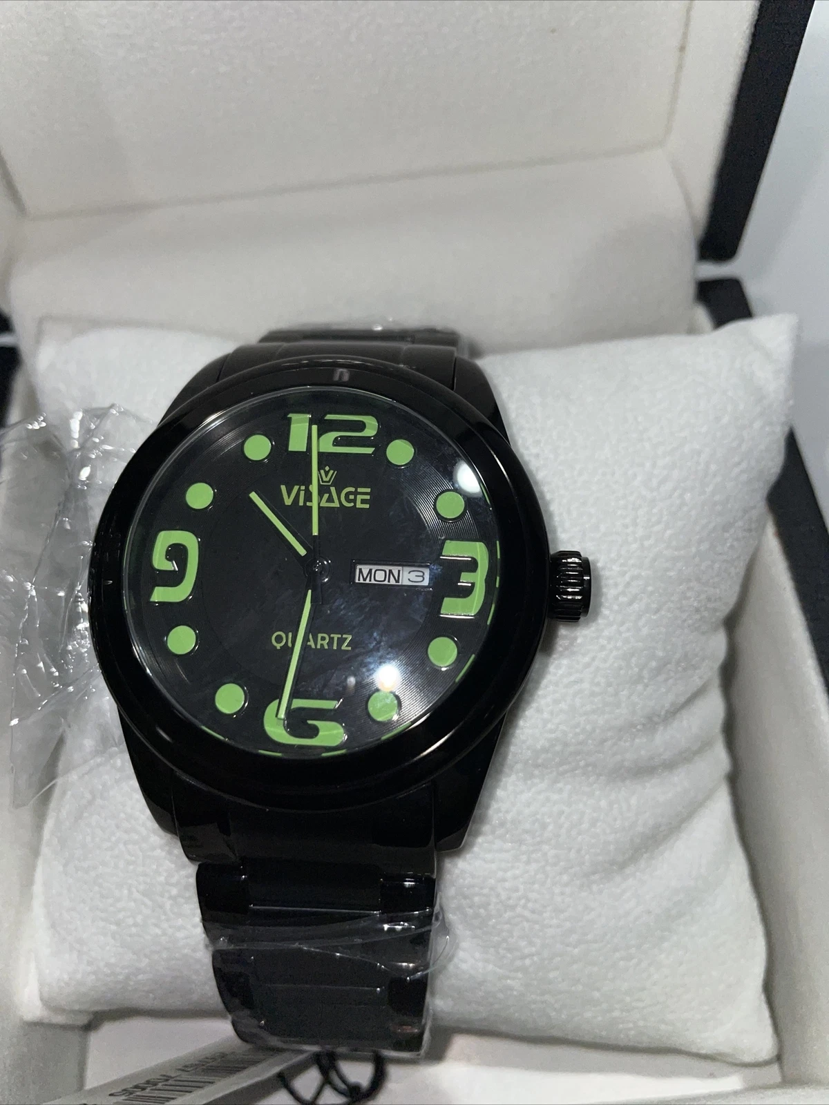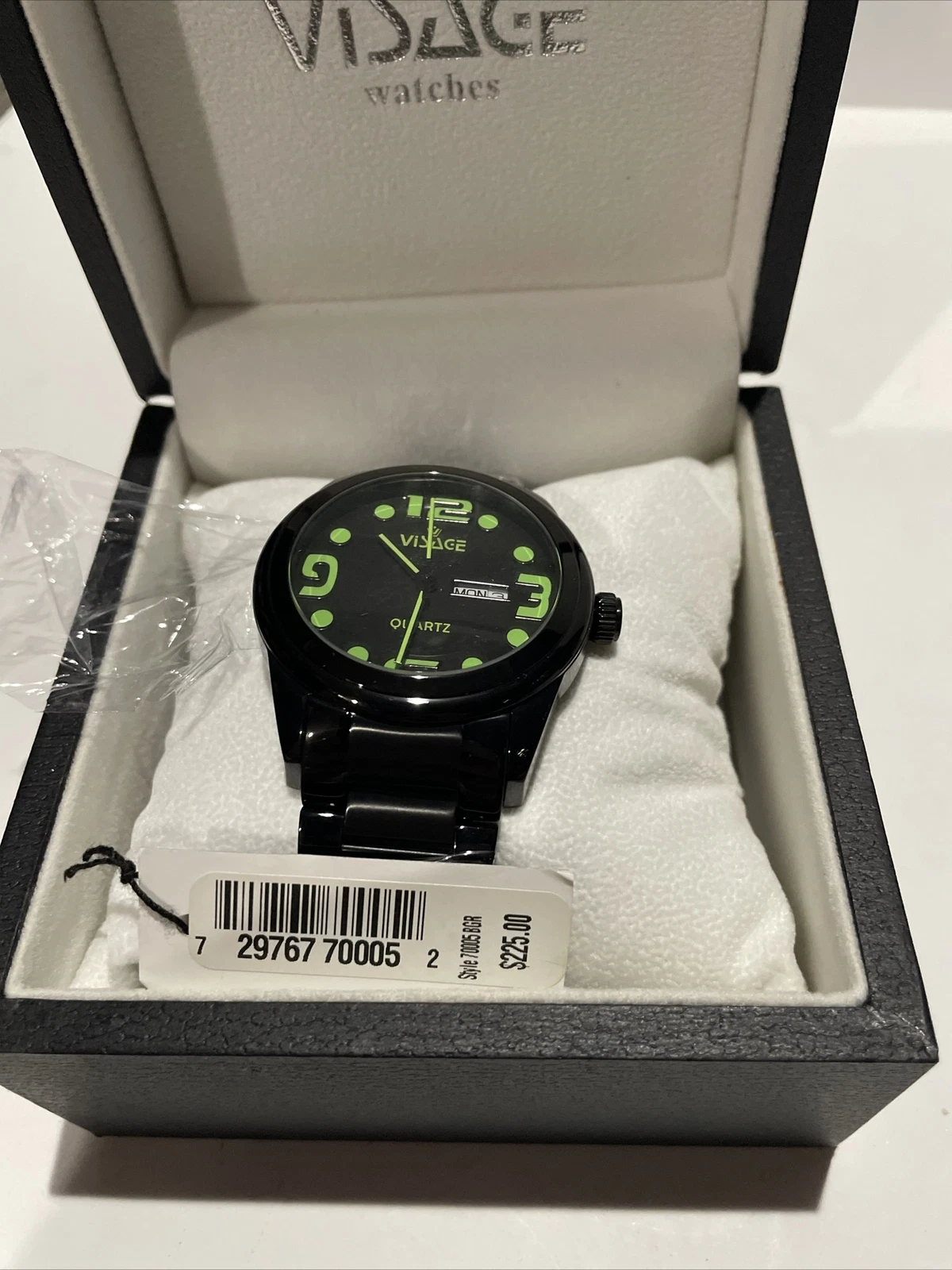 VISAGE Watch Men’s - 70005 BRG Quartz Black With Green Numbers Stainless Steel
