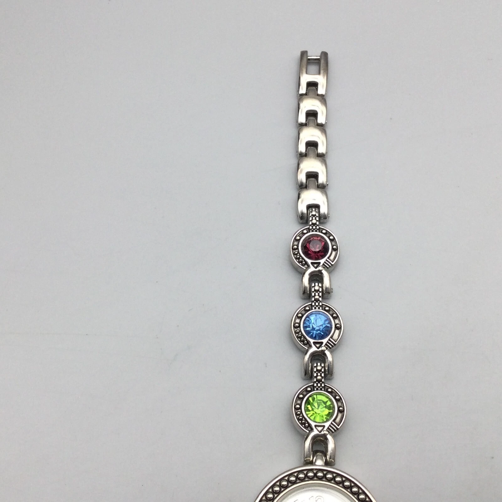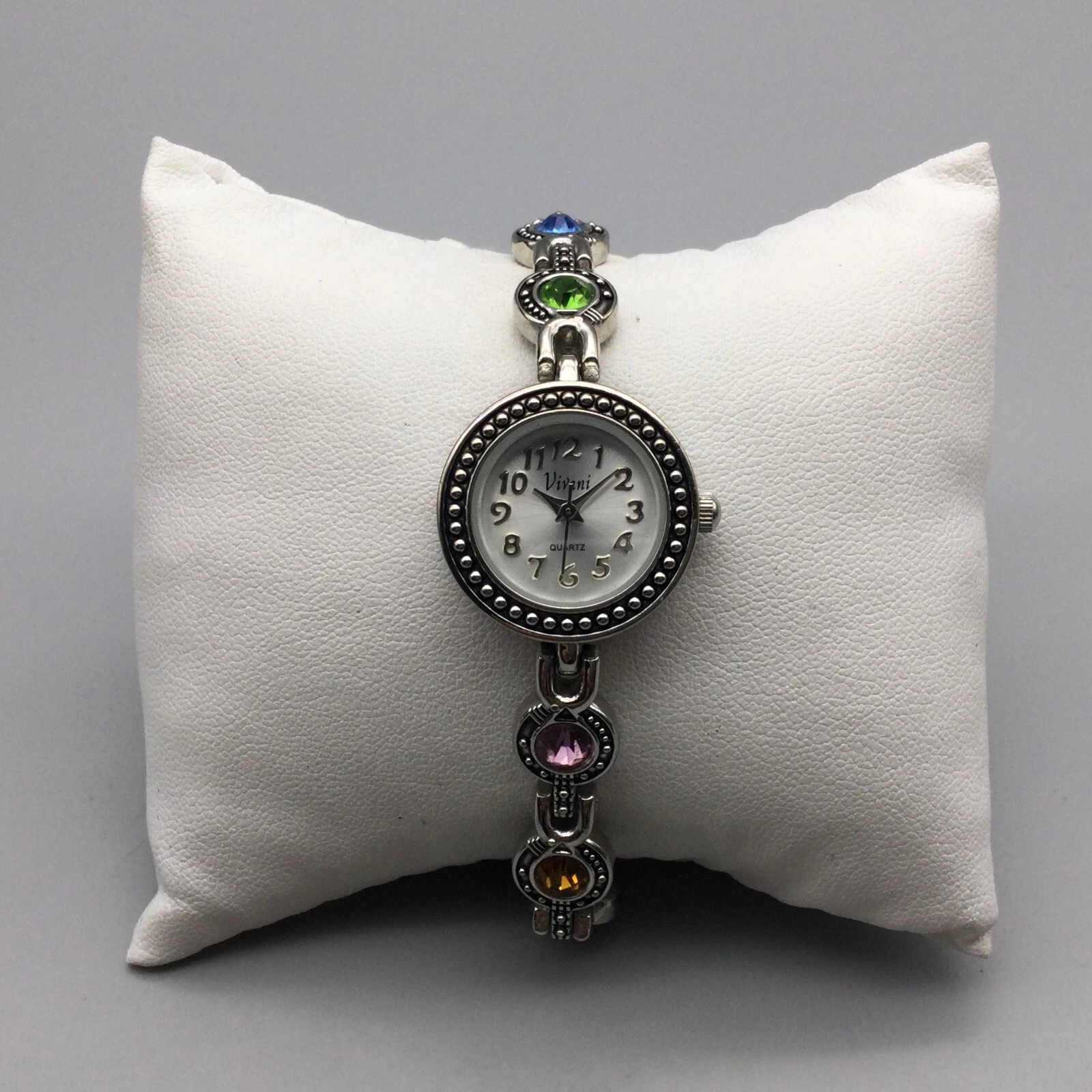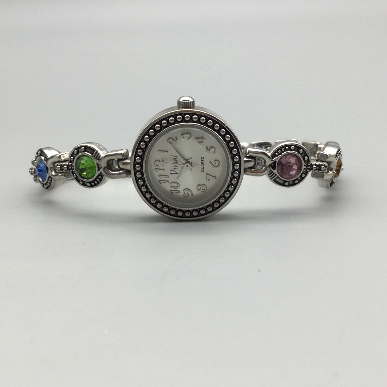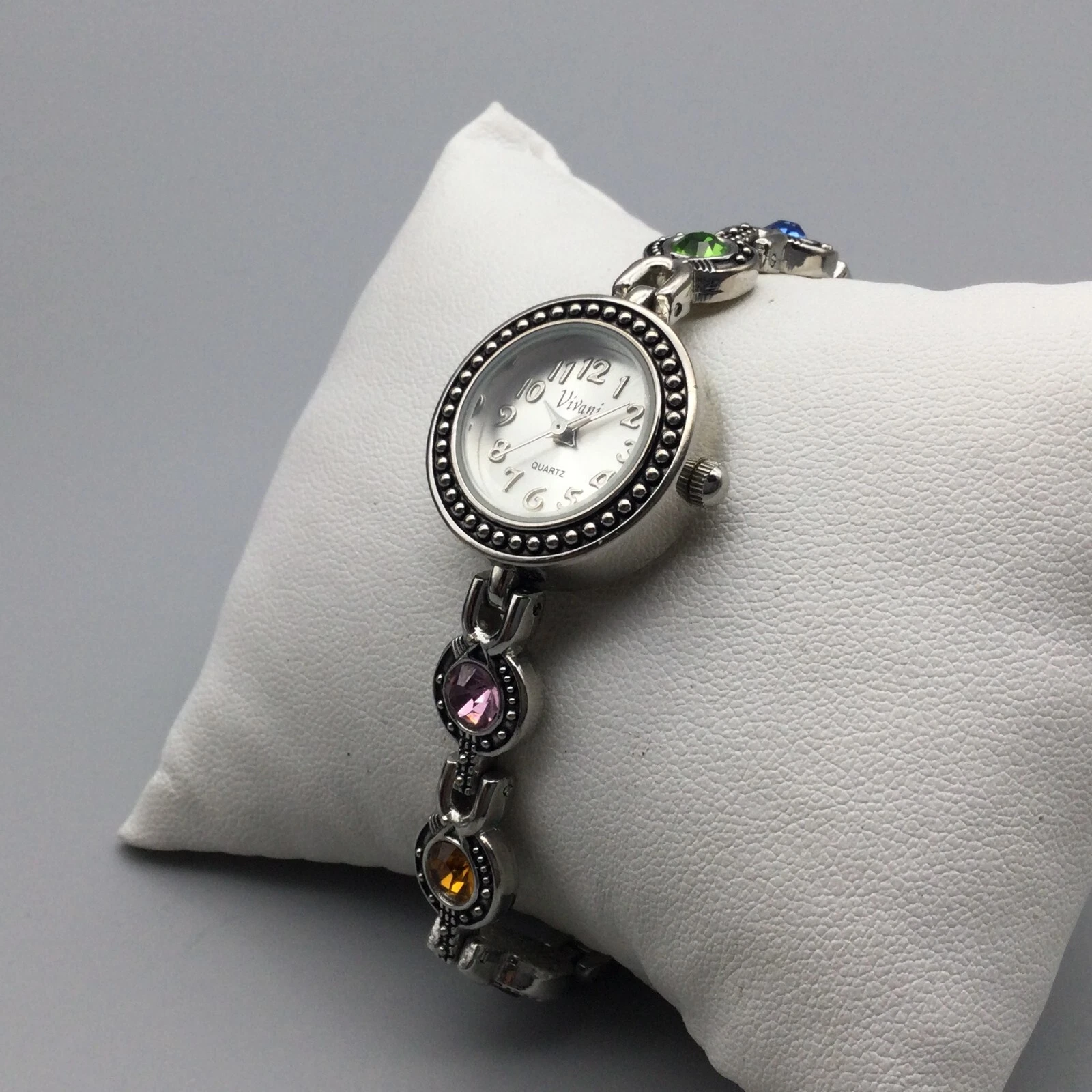 Vivani Watch Women 22mm Silver Tone Bling Rainbow Crystals Band New Battery 7"
