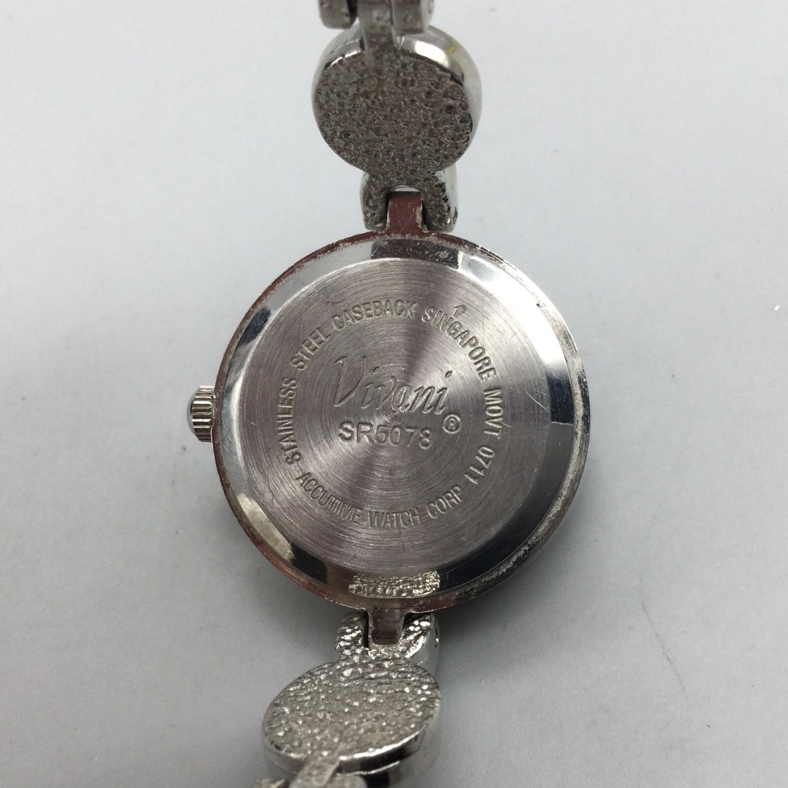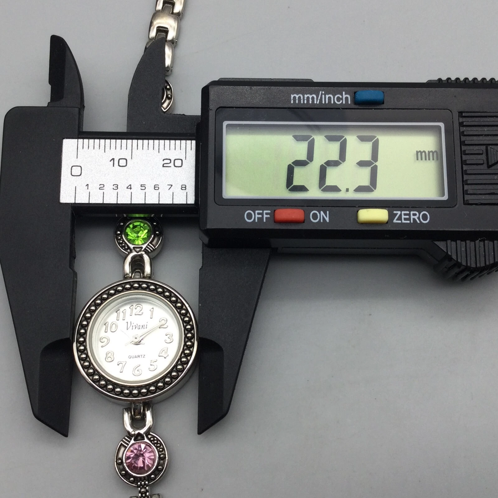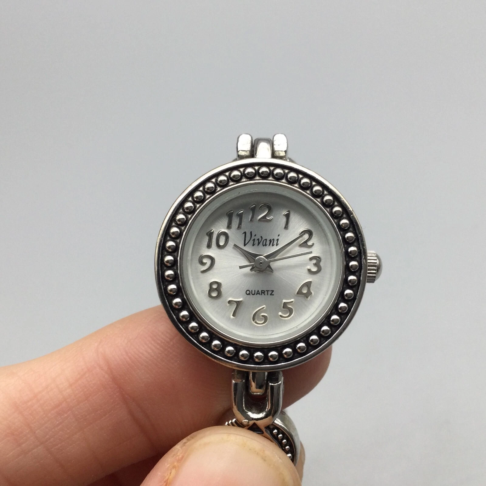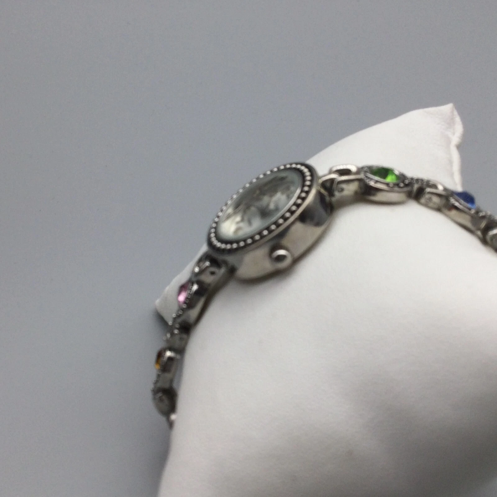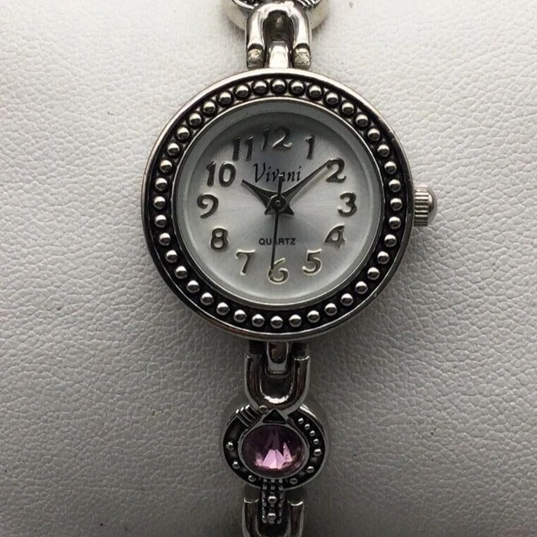 Vivani Watch Women 22mm Silver Tone Bling Rainbow Crystals Band New Battery 7"