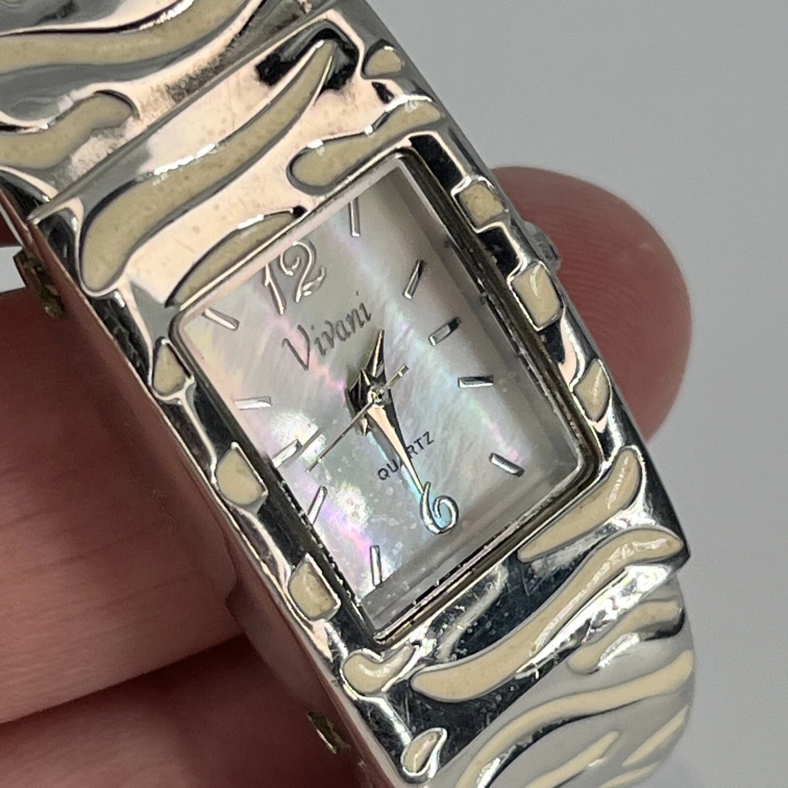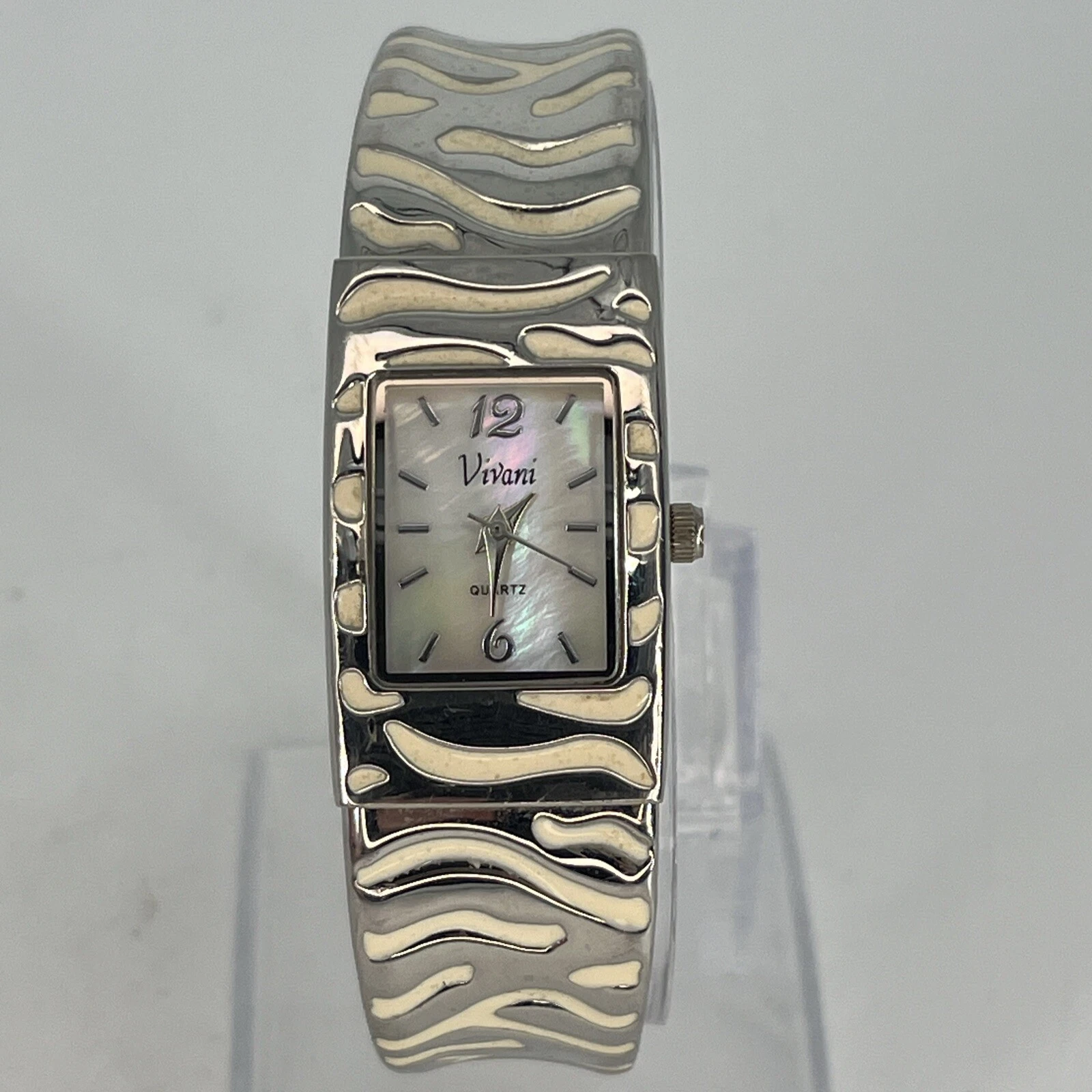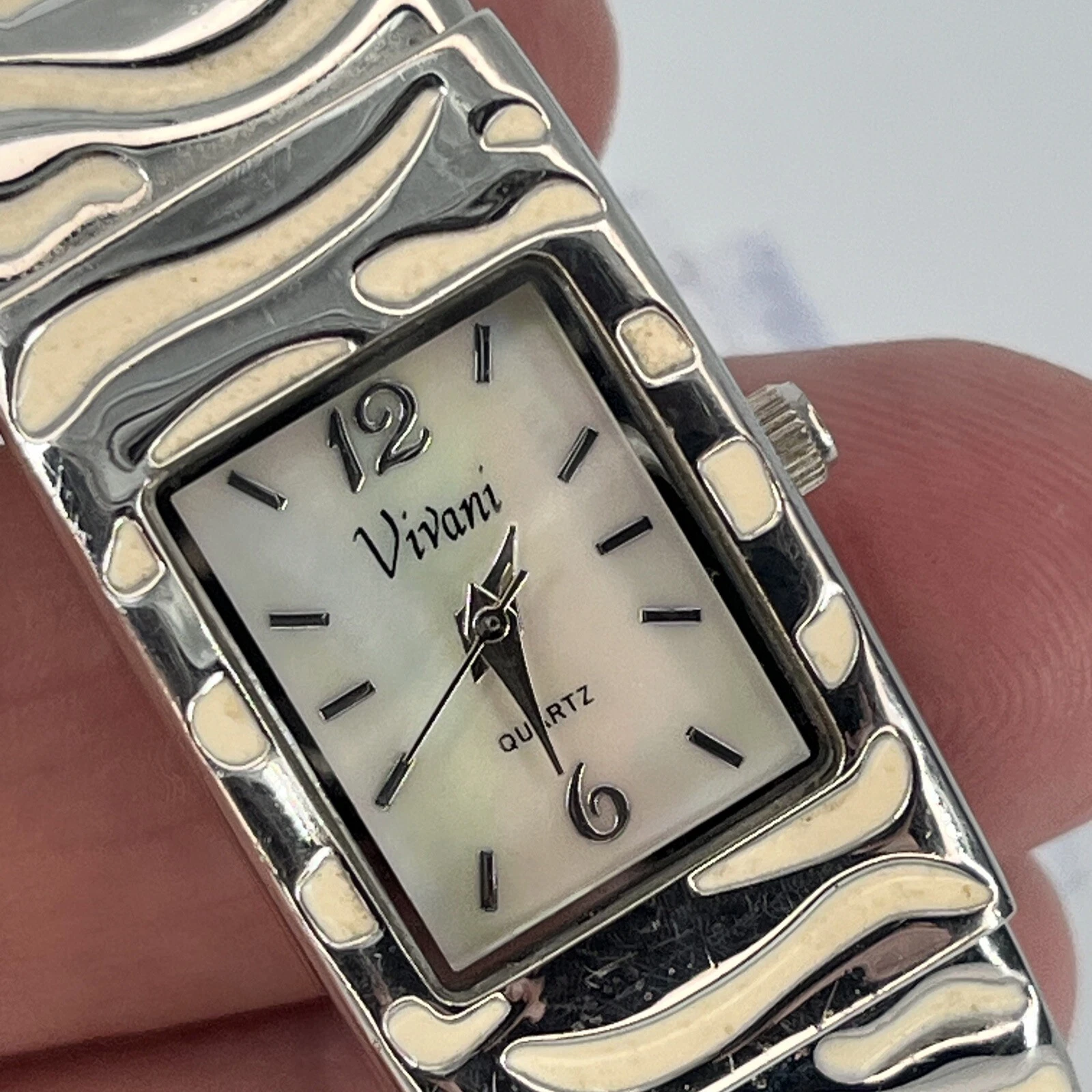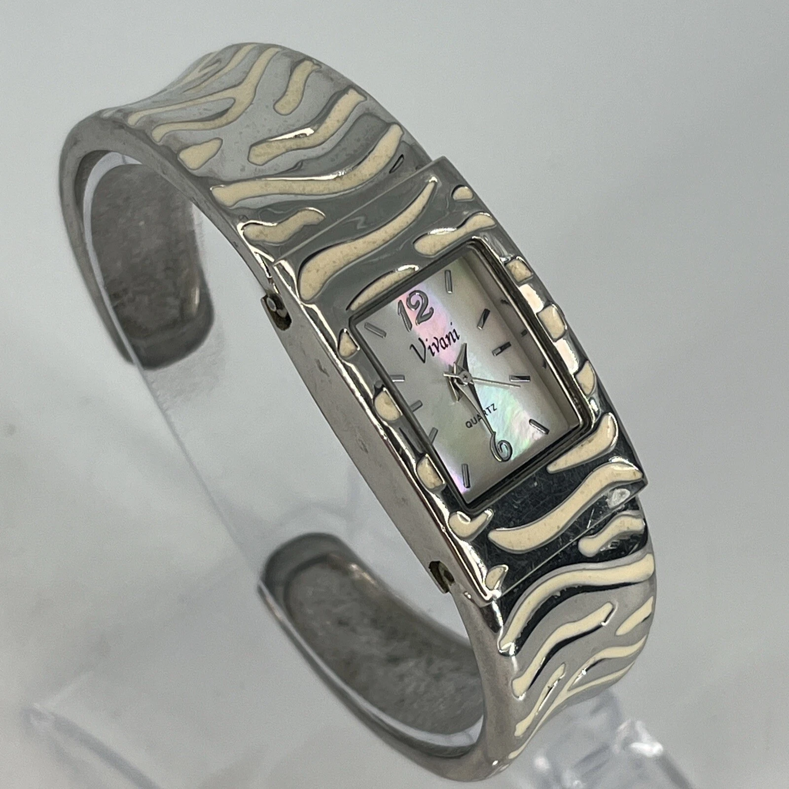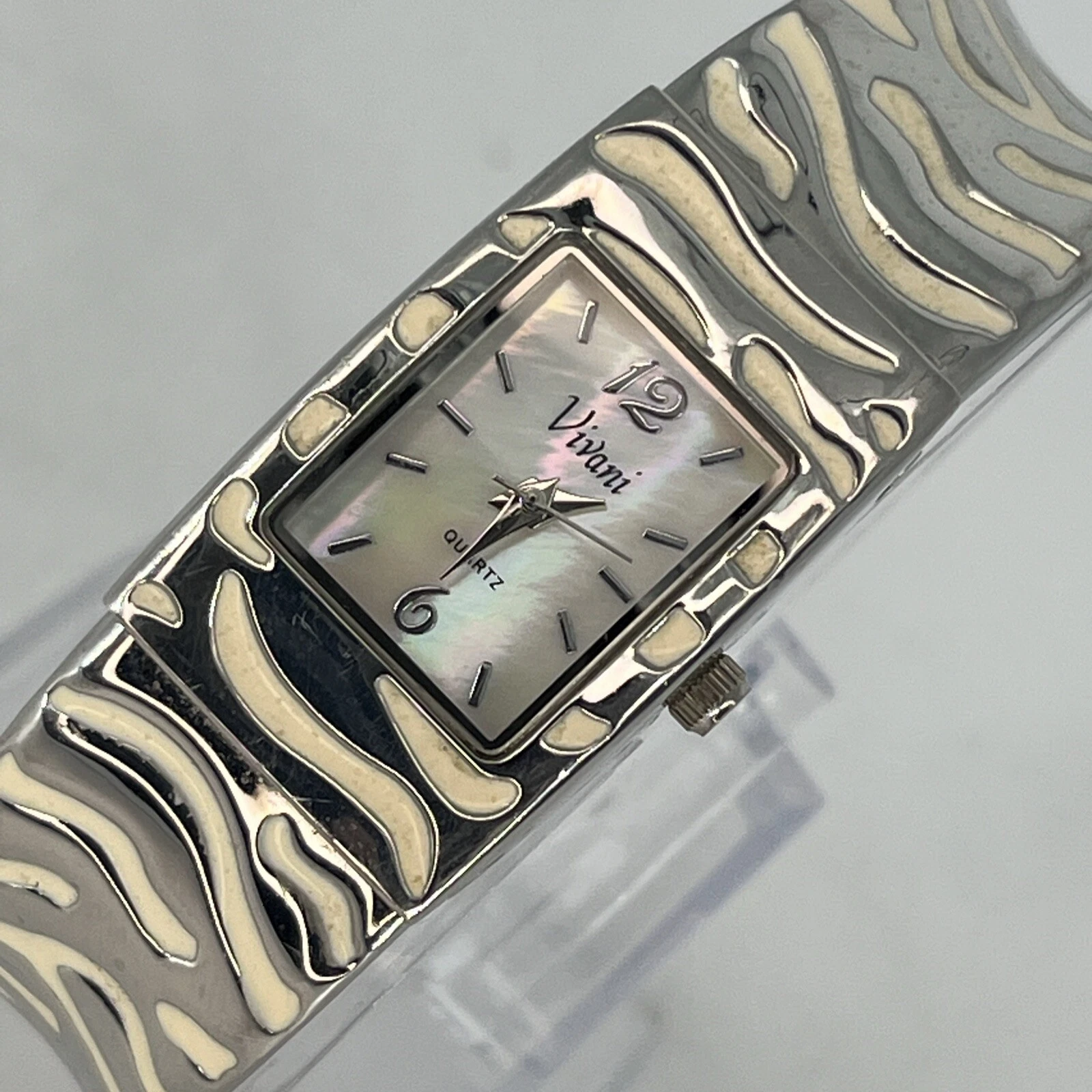 Vivani Women's Watch Cuff Style Silver & White Zebra Design MOP Dial NEW BATTERY