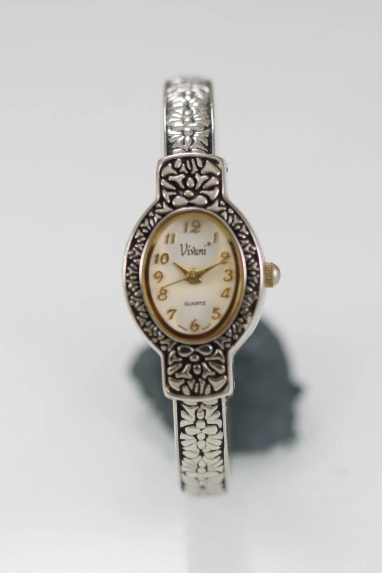 Vivani Women Watch Silver Gold Stainless Steel WR Clip on White Battery Quartz