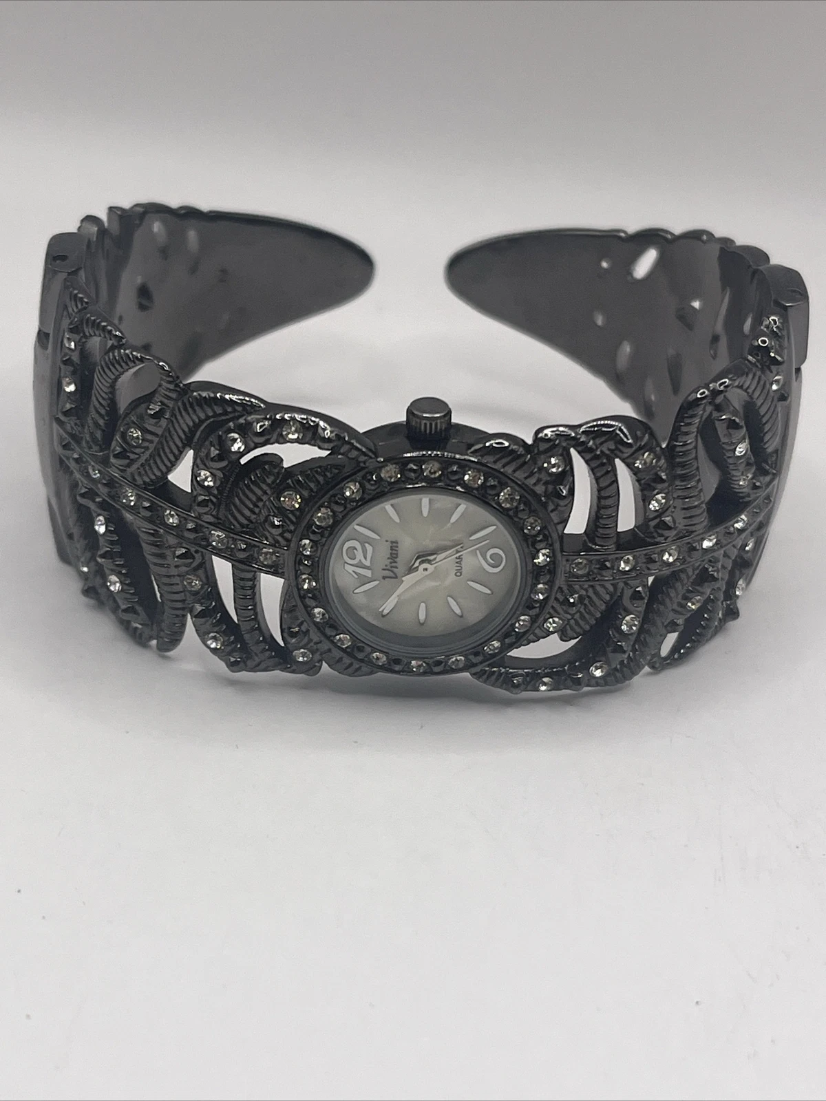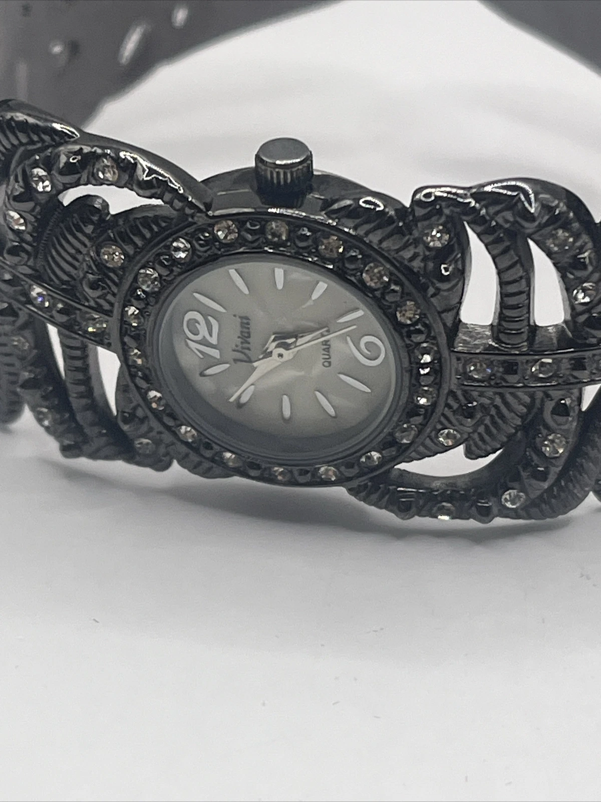 Vivani MOP Dial Silver Tone Hinge Bangle Bracelet Band Watch- New Battery