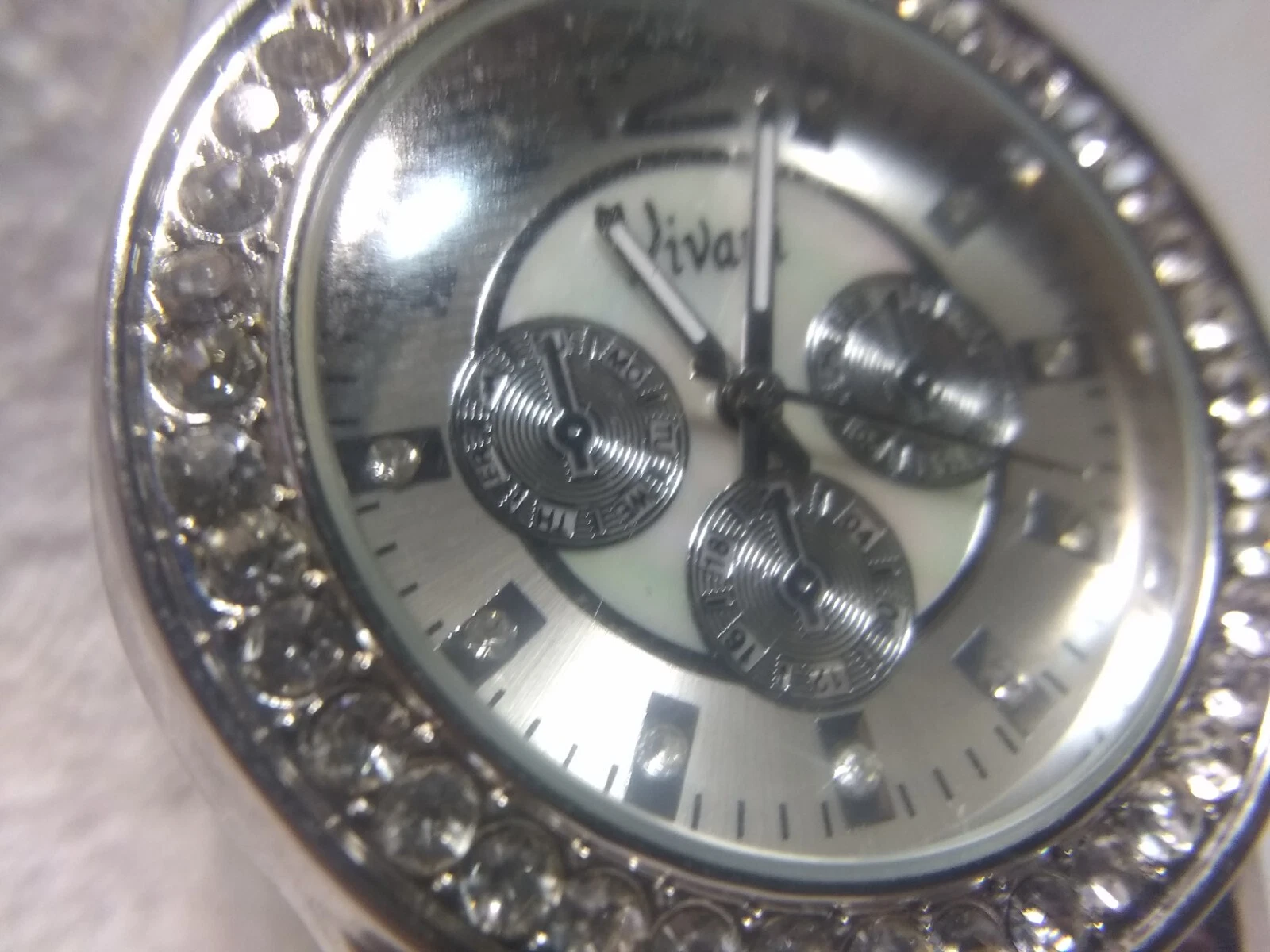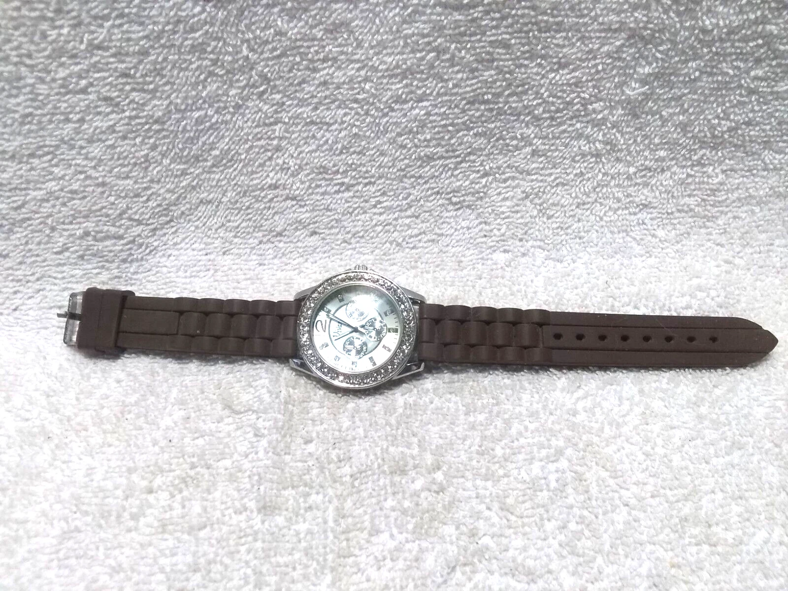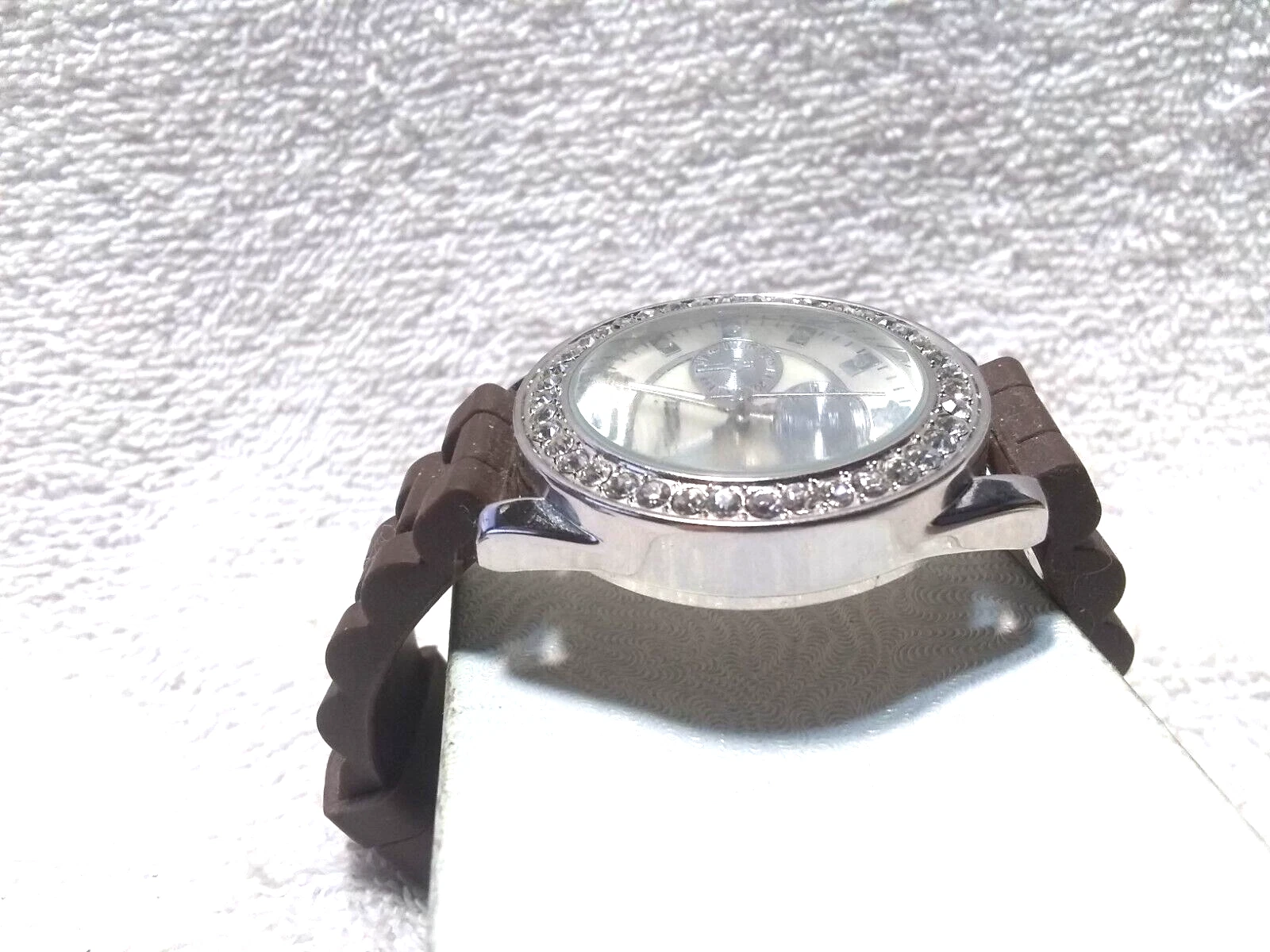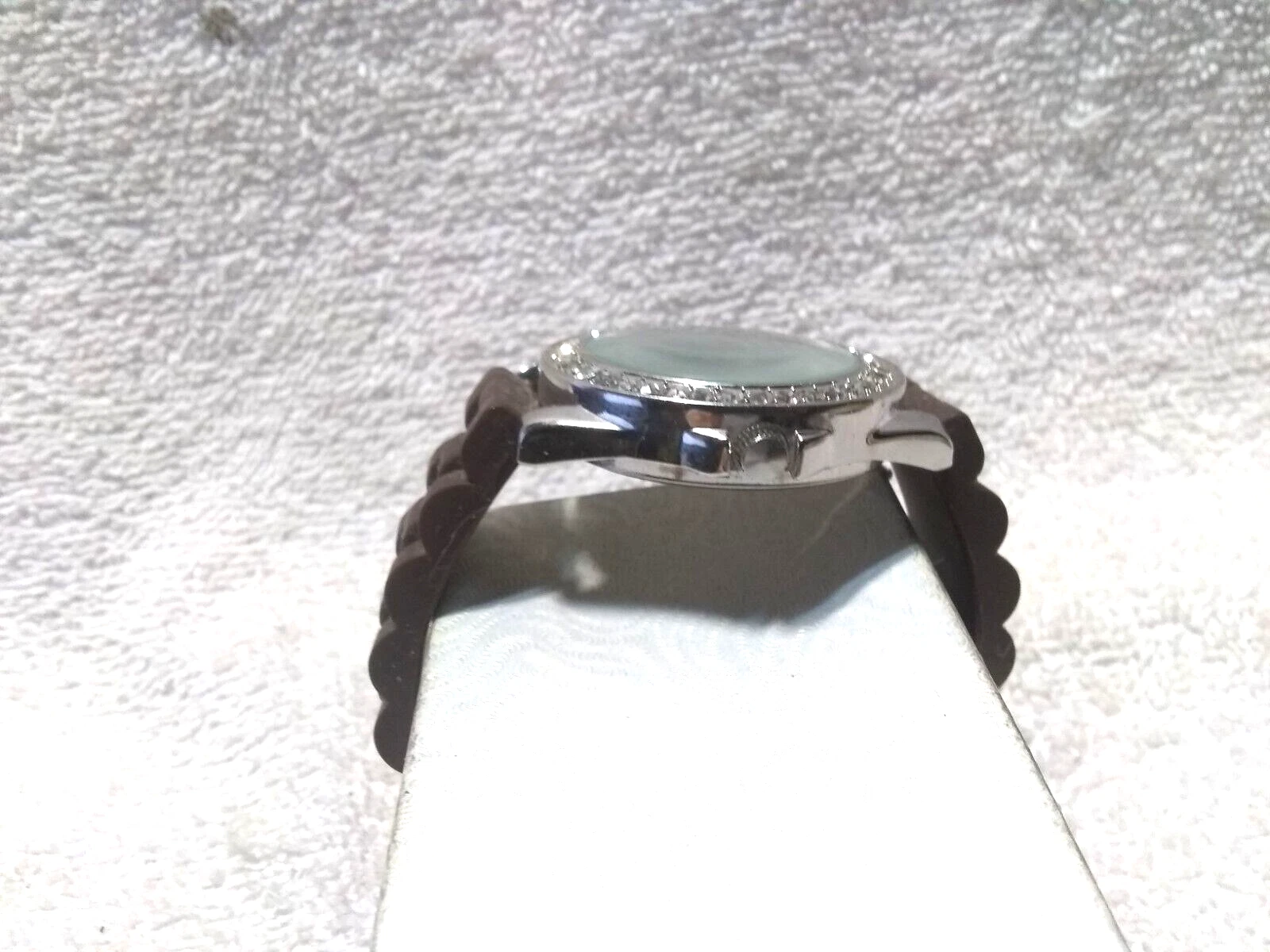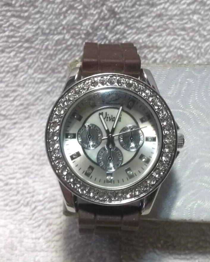 Viviani Quartz Watch Silver Sparkle Dial Brown Rubber Band New Bat Works Great