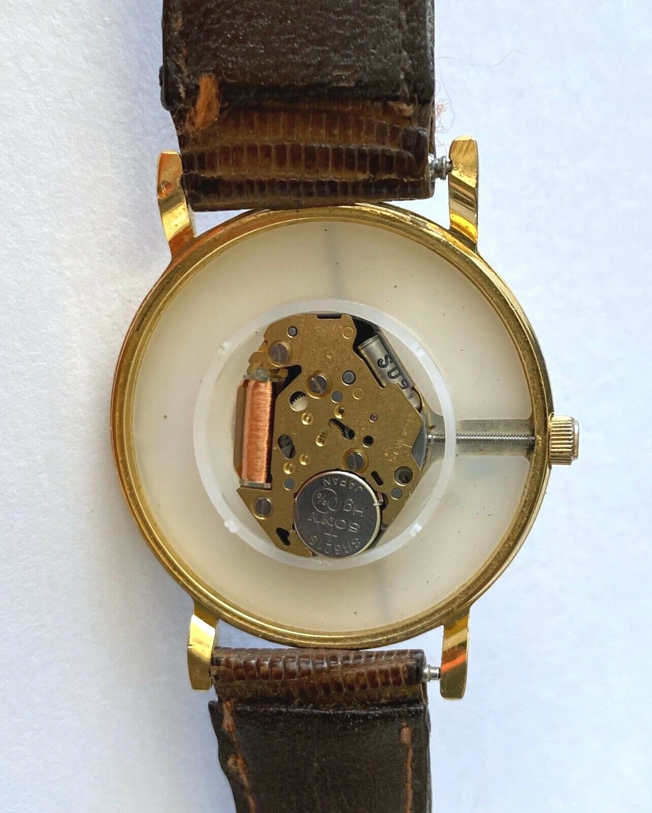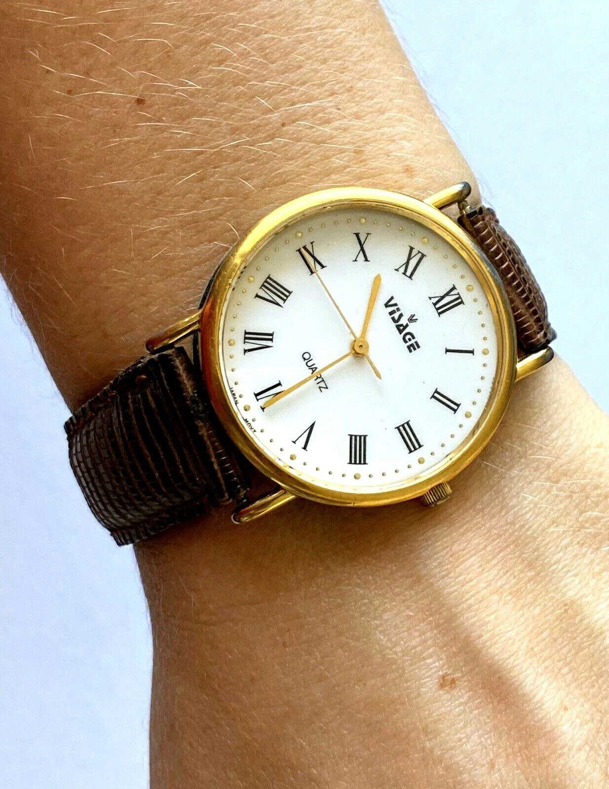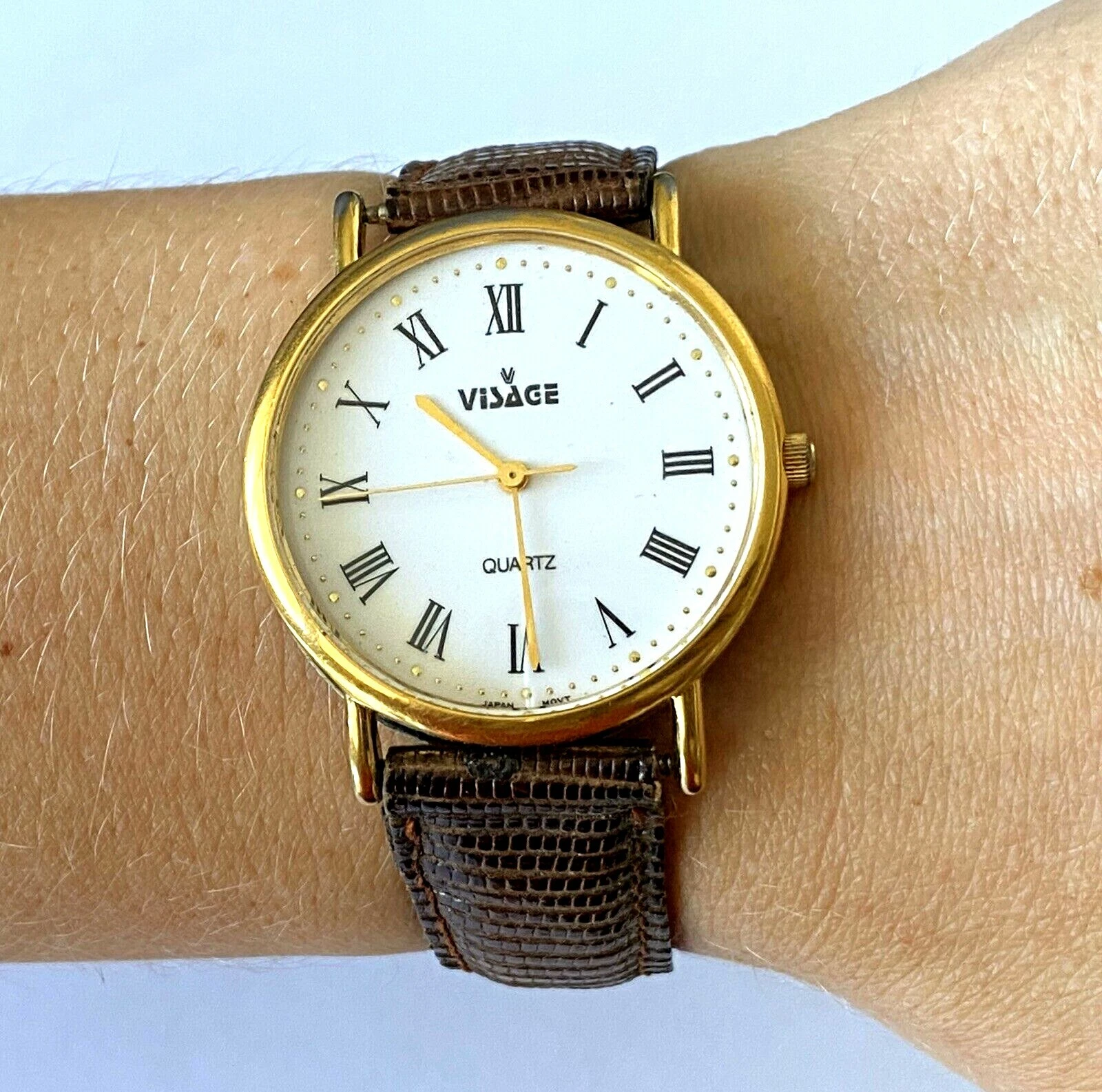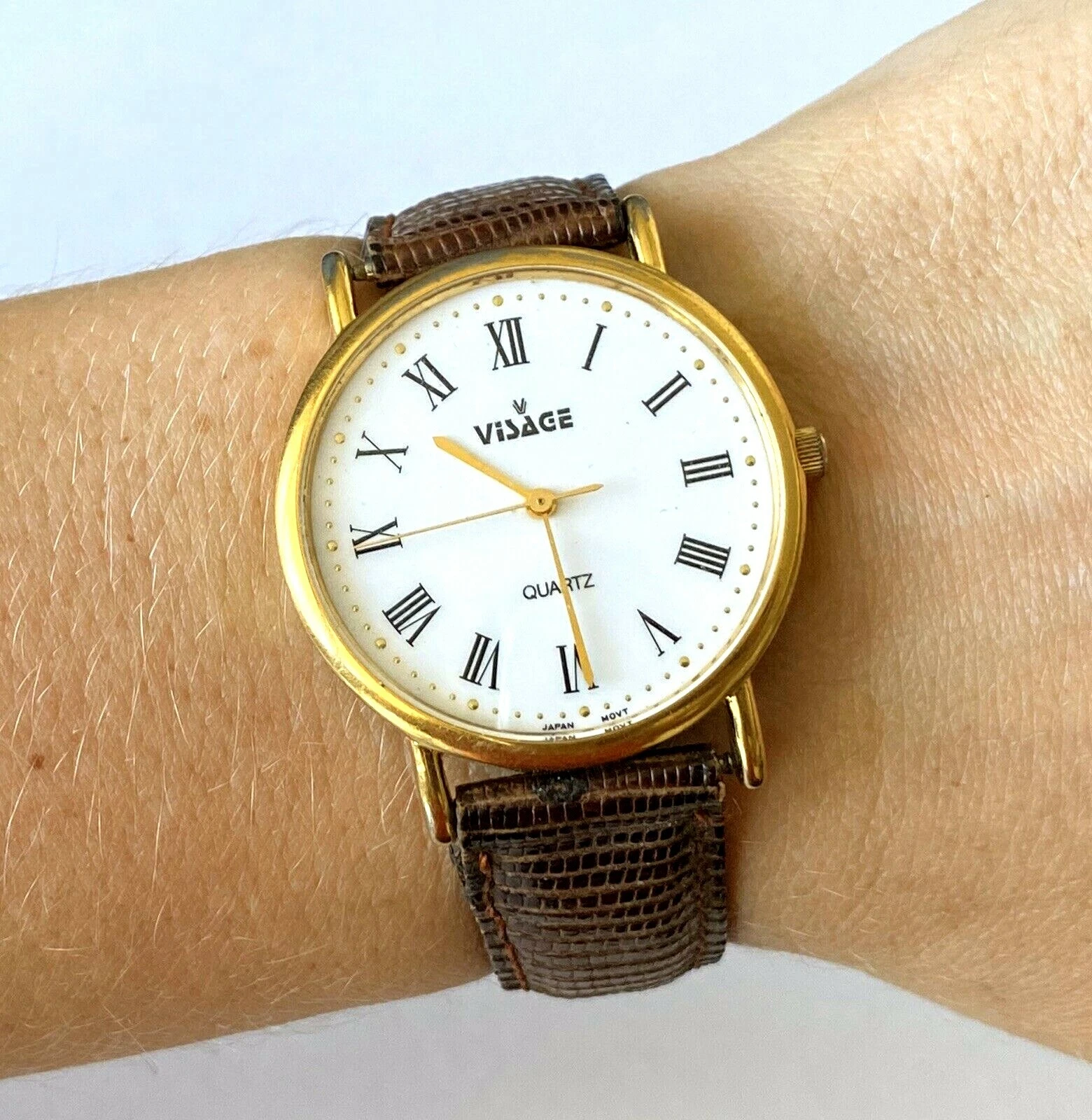 Visage 16631 Quartz White Dial Gold Tone Case Brown Band Men's Wrist Watch Runs
