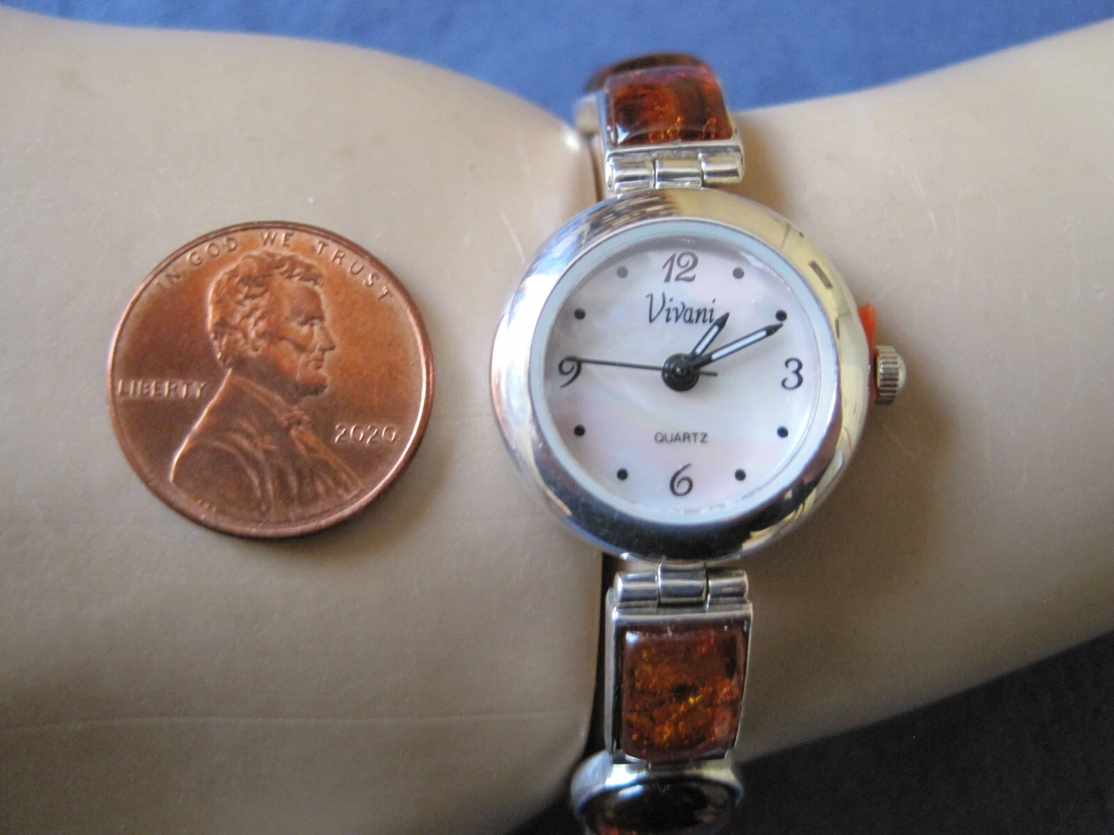 H553 ladys sterling silver amber VIVANI quartz watch bracelet