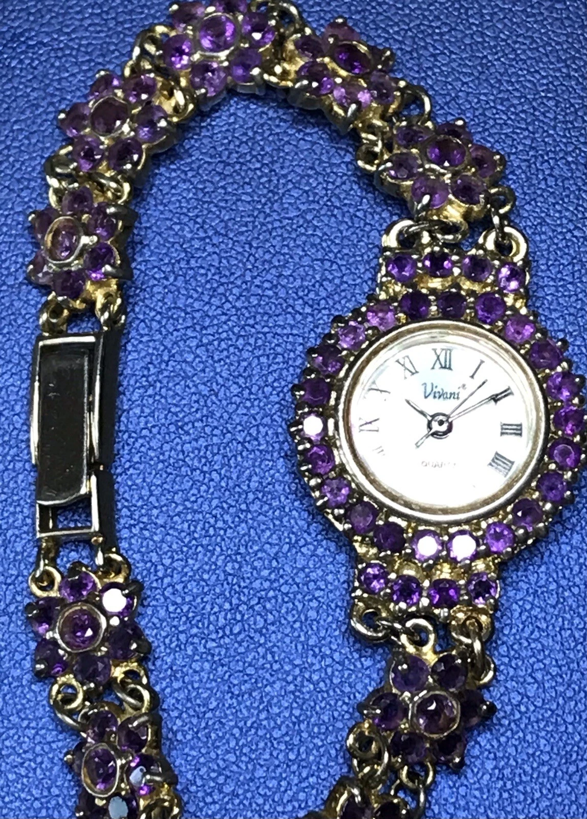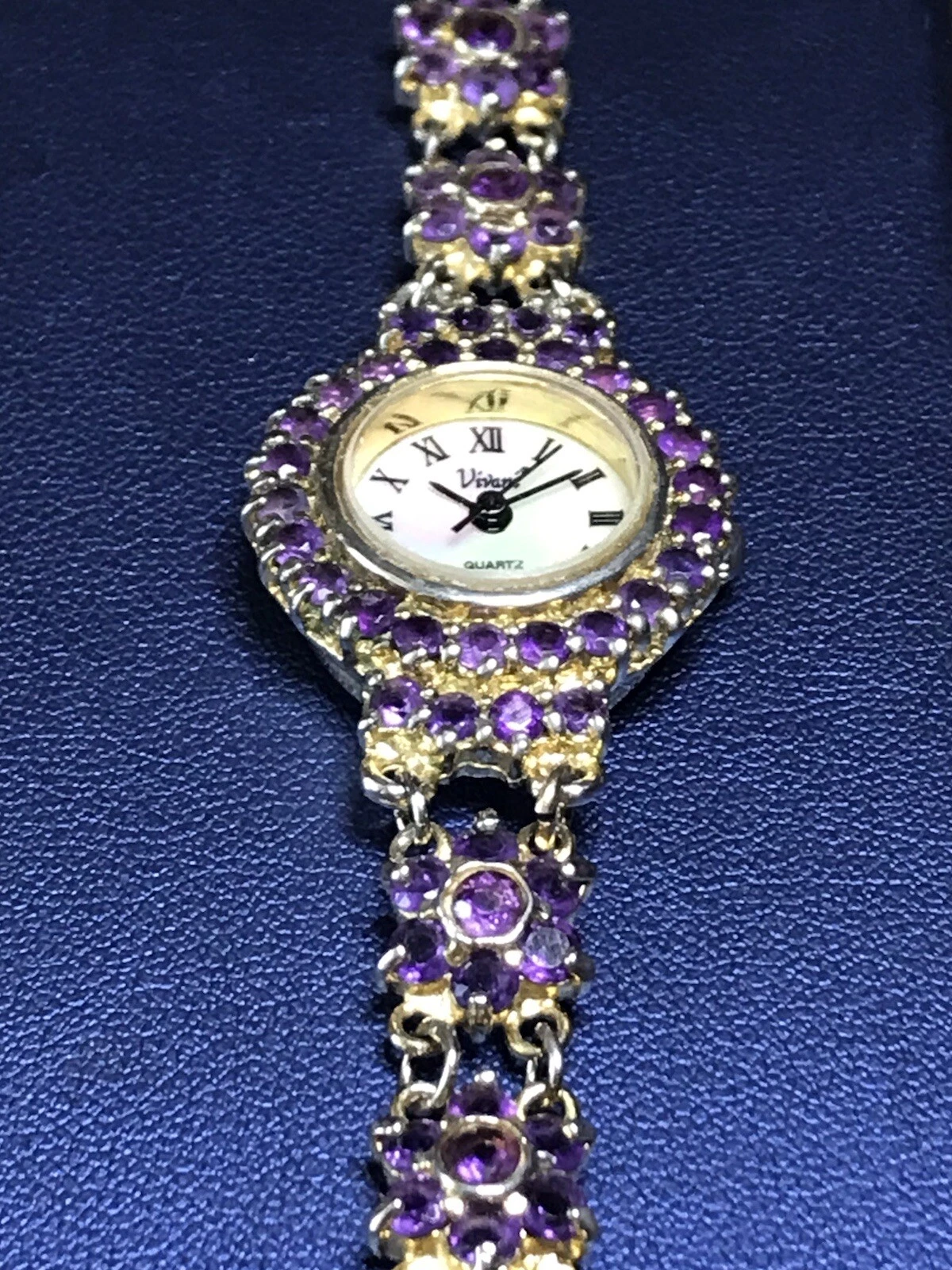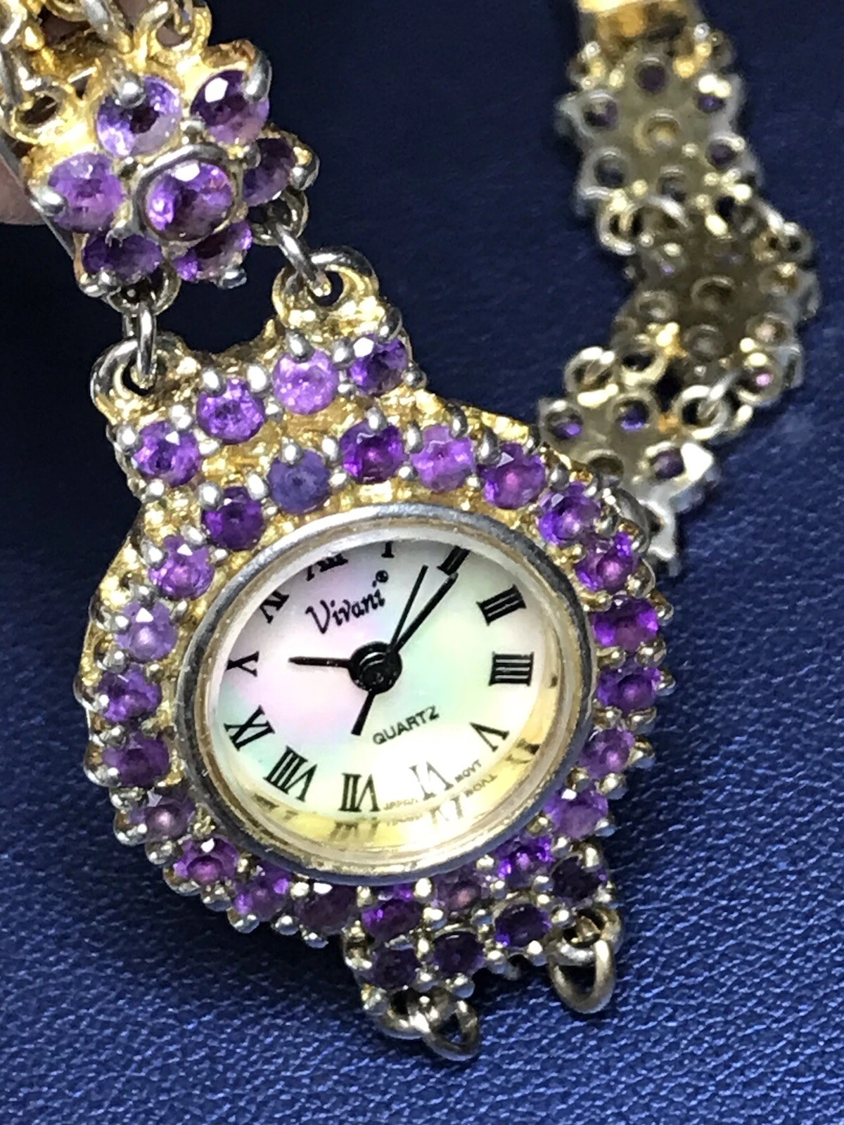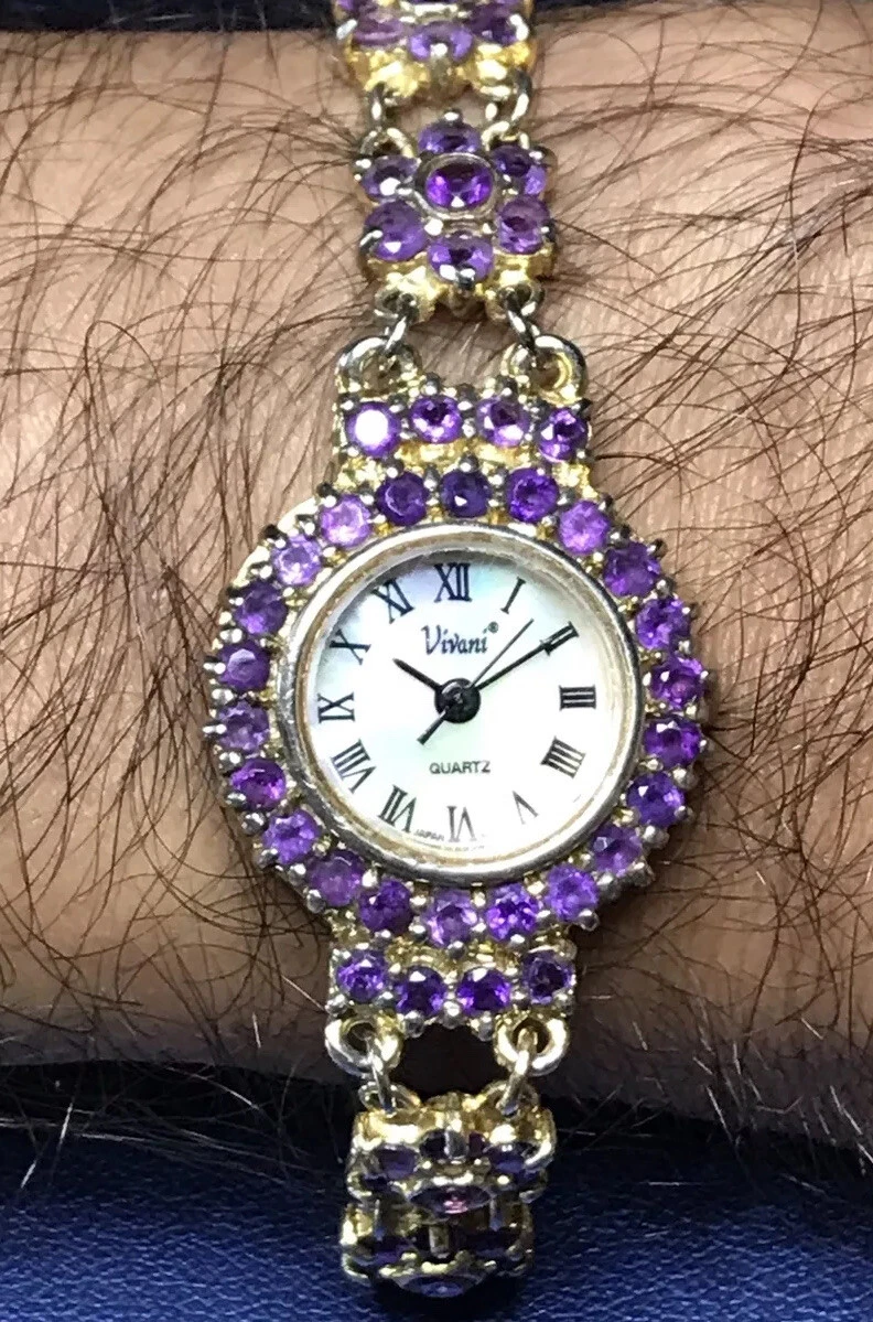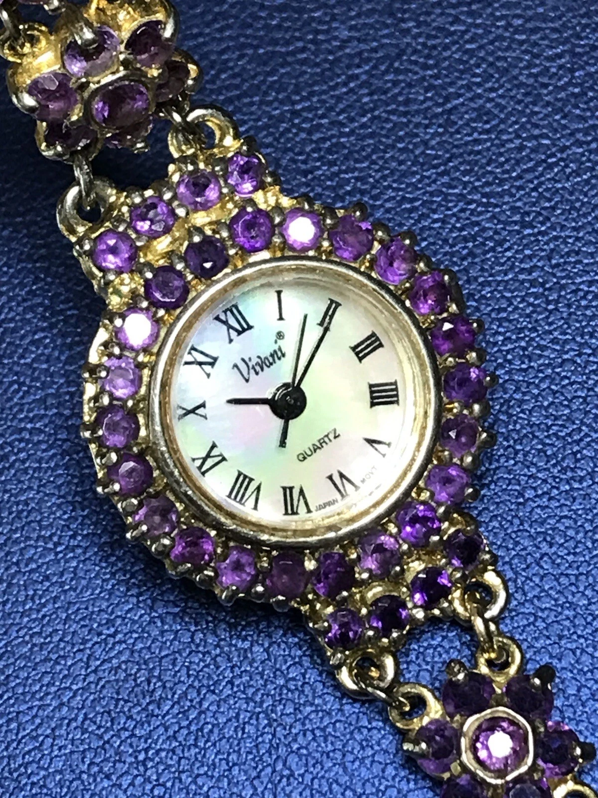 Estate Vivani Real Amethyst Woman Watch Japan Movement Mother Of Pearl Dial 7.5”