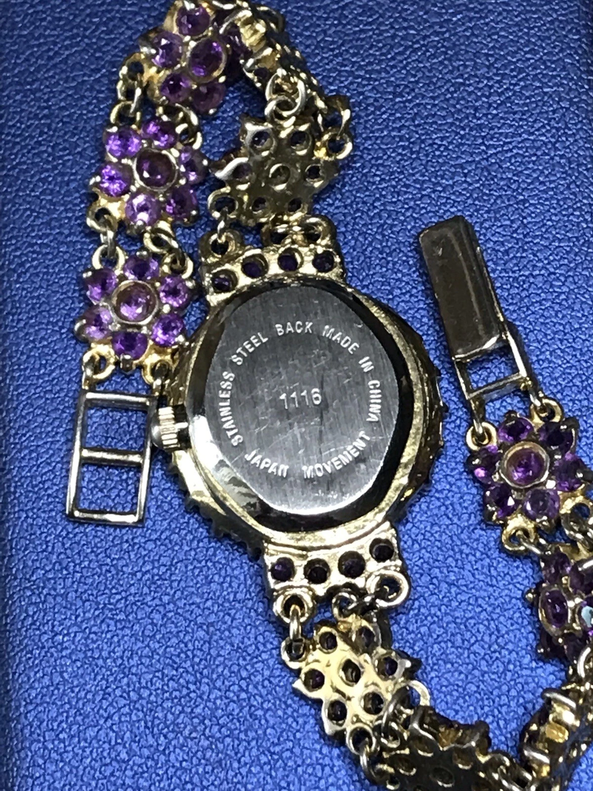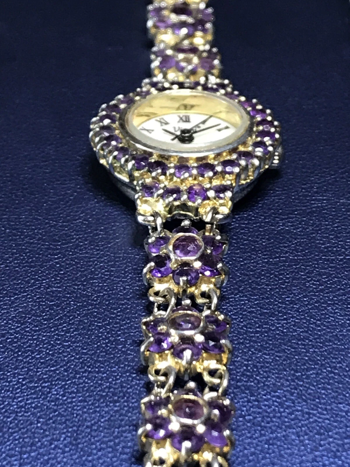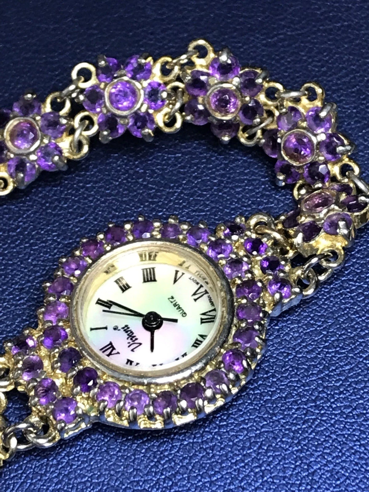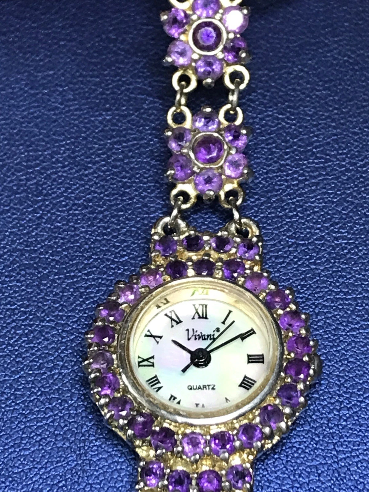 Estate Vivani Real Amethyst Woman Watch Japan Movement Mother Of Pearl Dial 7.5”