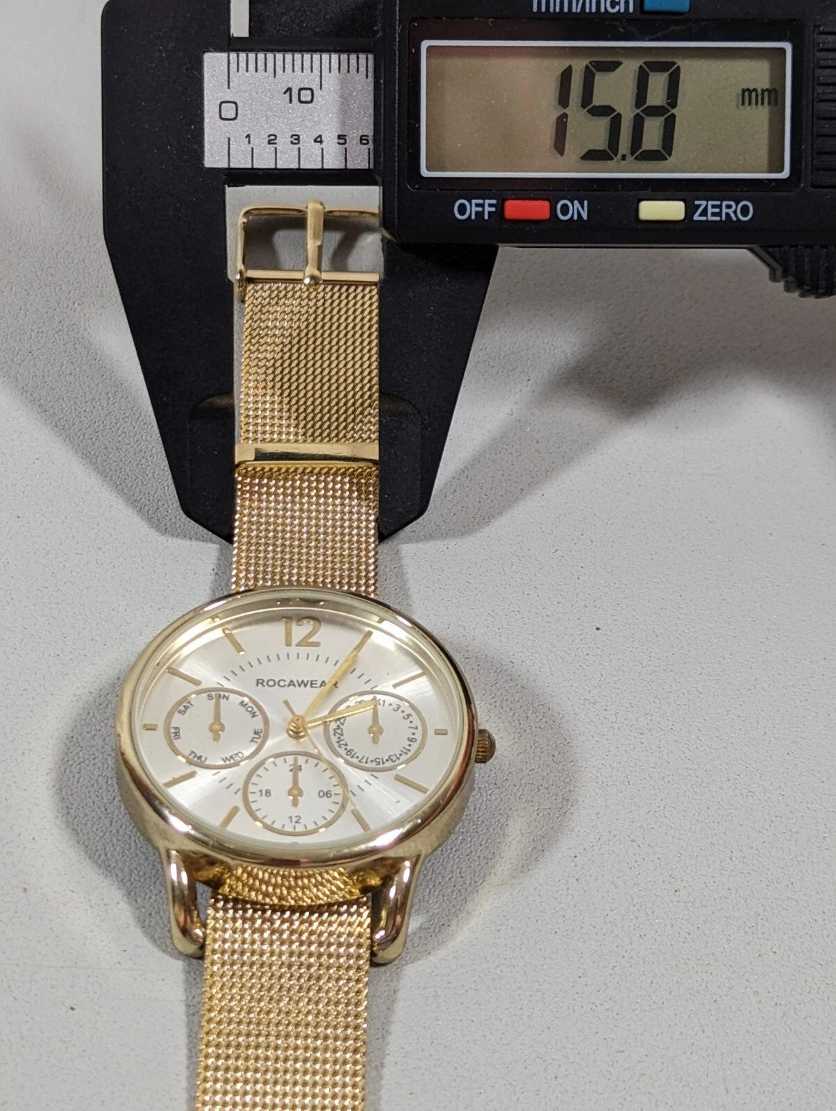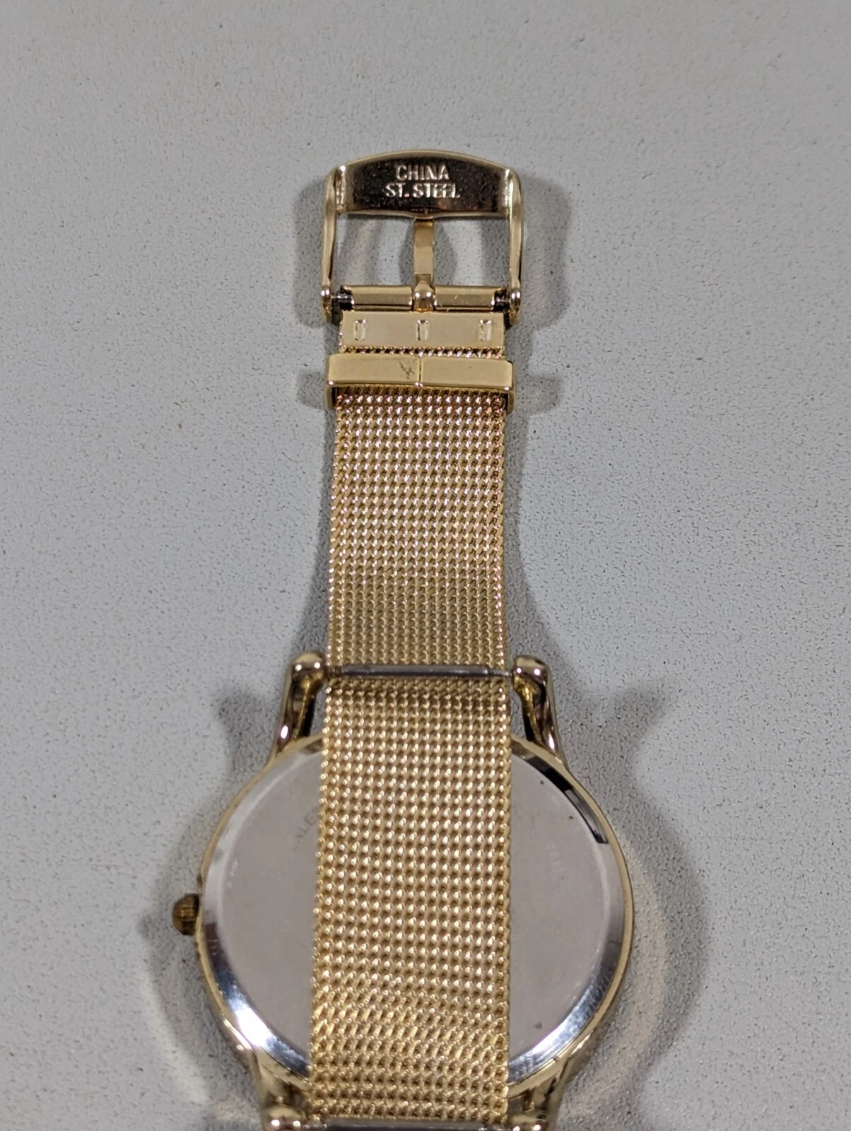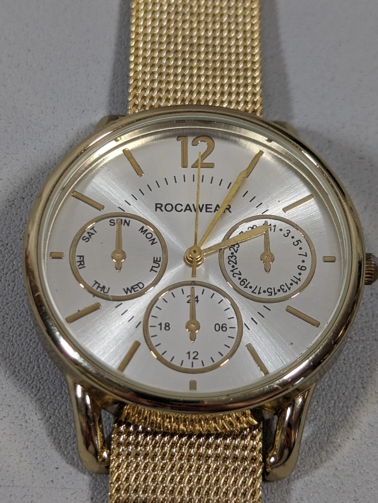 Rocawear Silver Tone Dial Round Gold Tone Case Mesh Stainless Steel Band Watch