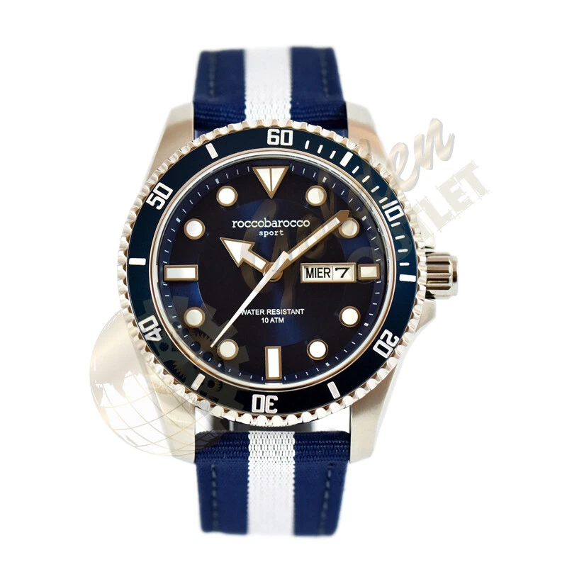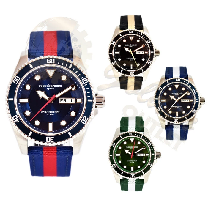 Mens Watch ROCCOBAROCCO SPORT Fabric Leather Bicolored Sub 100mt Coloured Summer