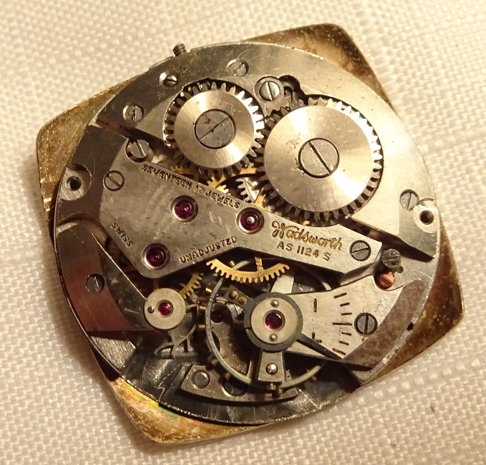 Vintage Wadsworth Wristwatch 17J Men's Parts or Repair AS1124S