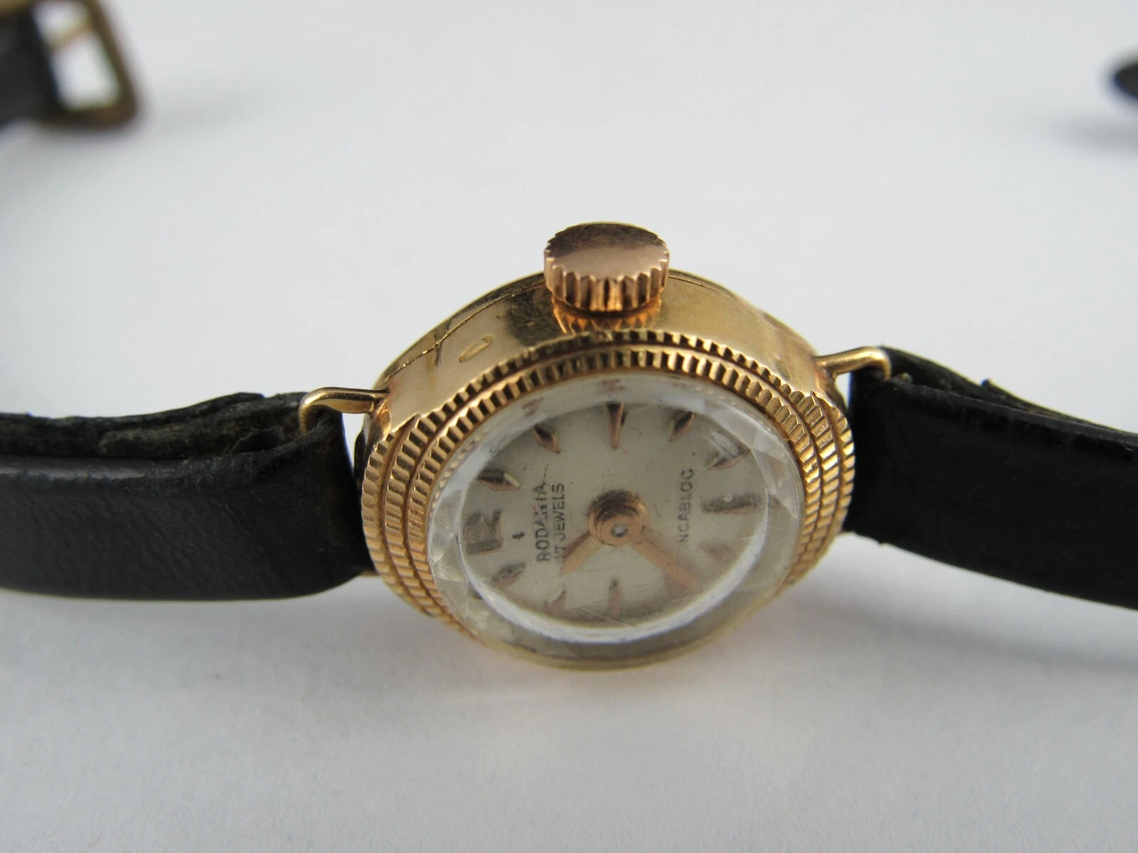 Vintage Rodania 18K GOLD Wind Up Ladies Watch SOLID YELLOW GOLD CASE 15mm