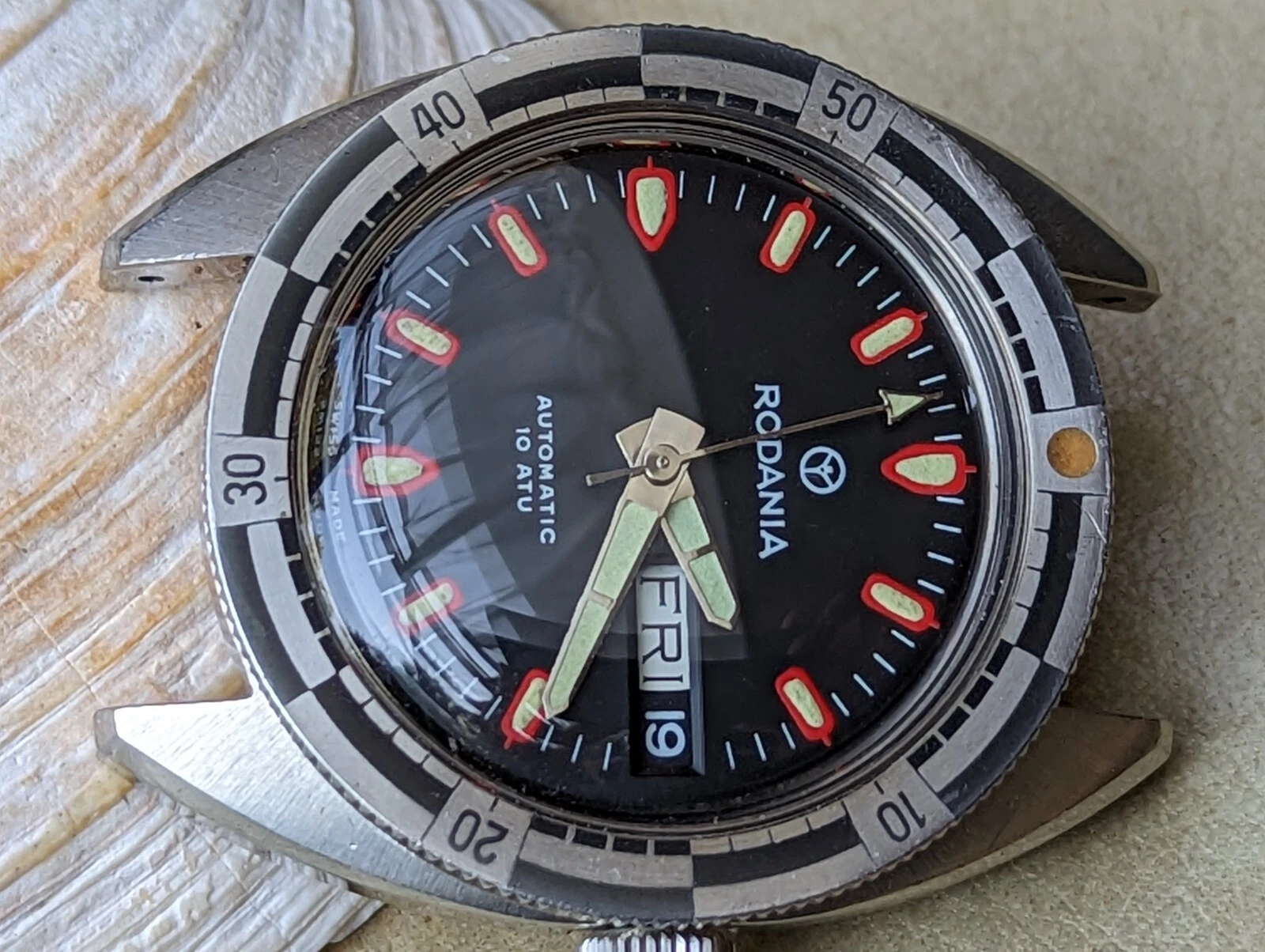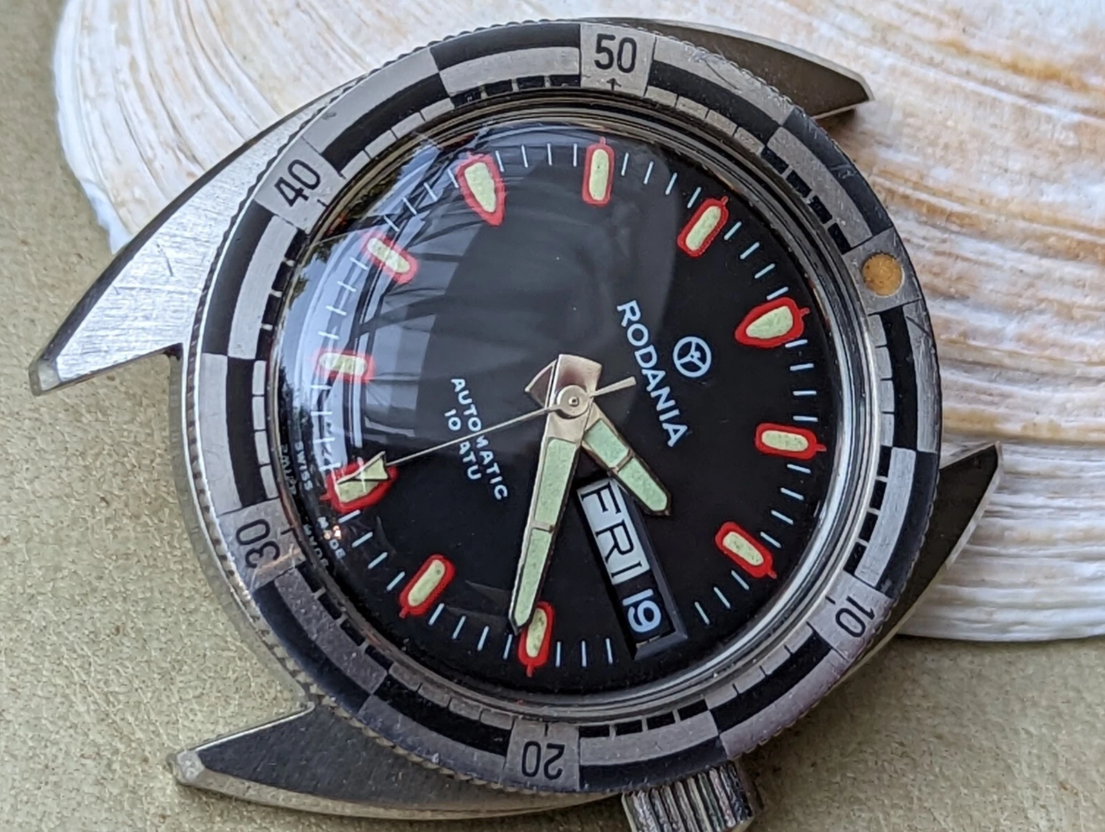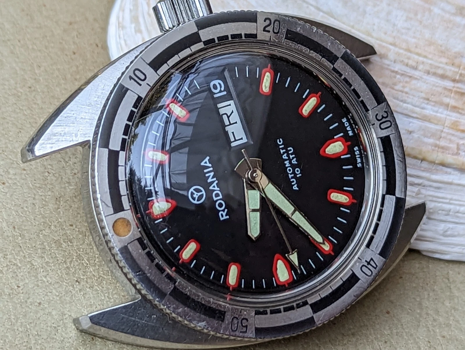 Vintage 1970's Rodania 10 ATM Day-Date Diver w/All SS Case,AS 2066 Mvmt,Serviced